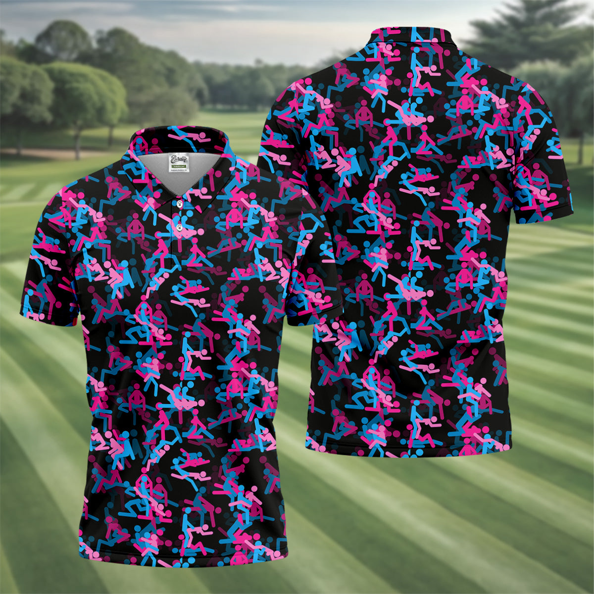 Funny Couple Black Neon Mens Golf Polo Shirts, Cool Golf Gift, Golfing Apparel, Polo For Men
