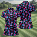 Funny Couple Black Neon Womens Golf Shirts, Ladies Golf Polos, Cool Golf Gift, Golfing Apparel