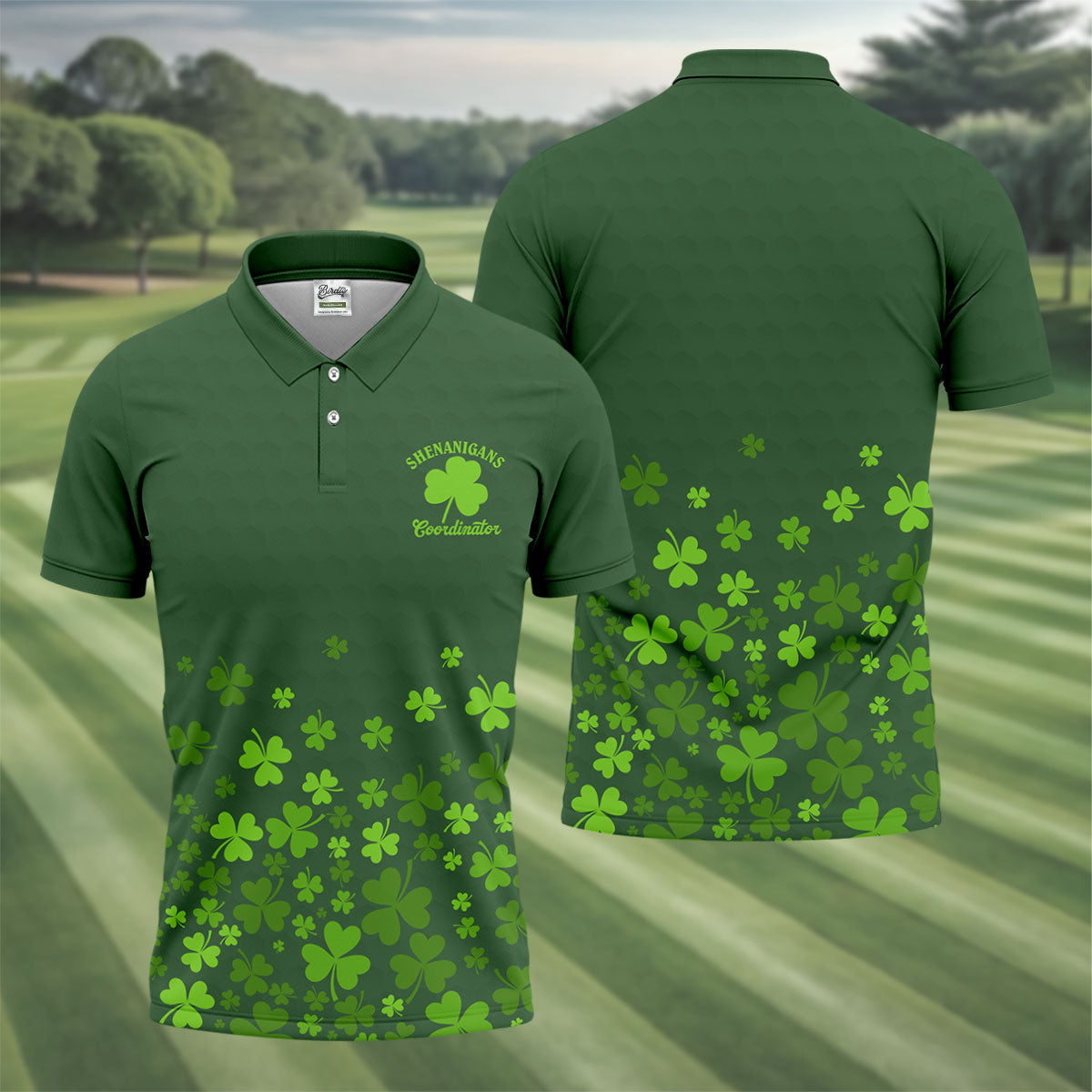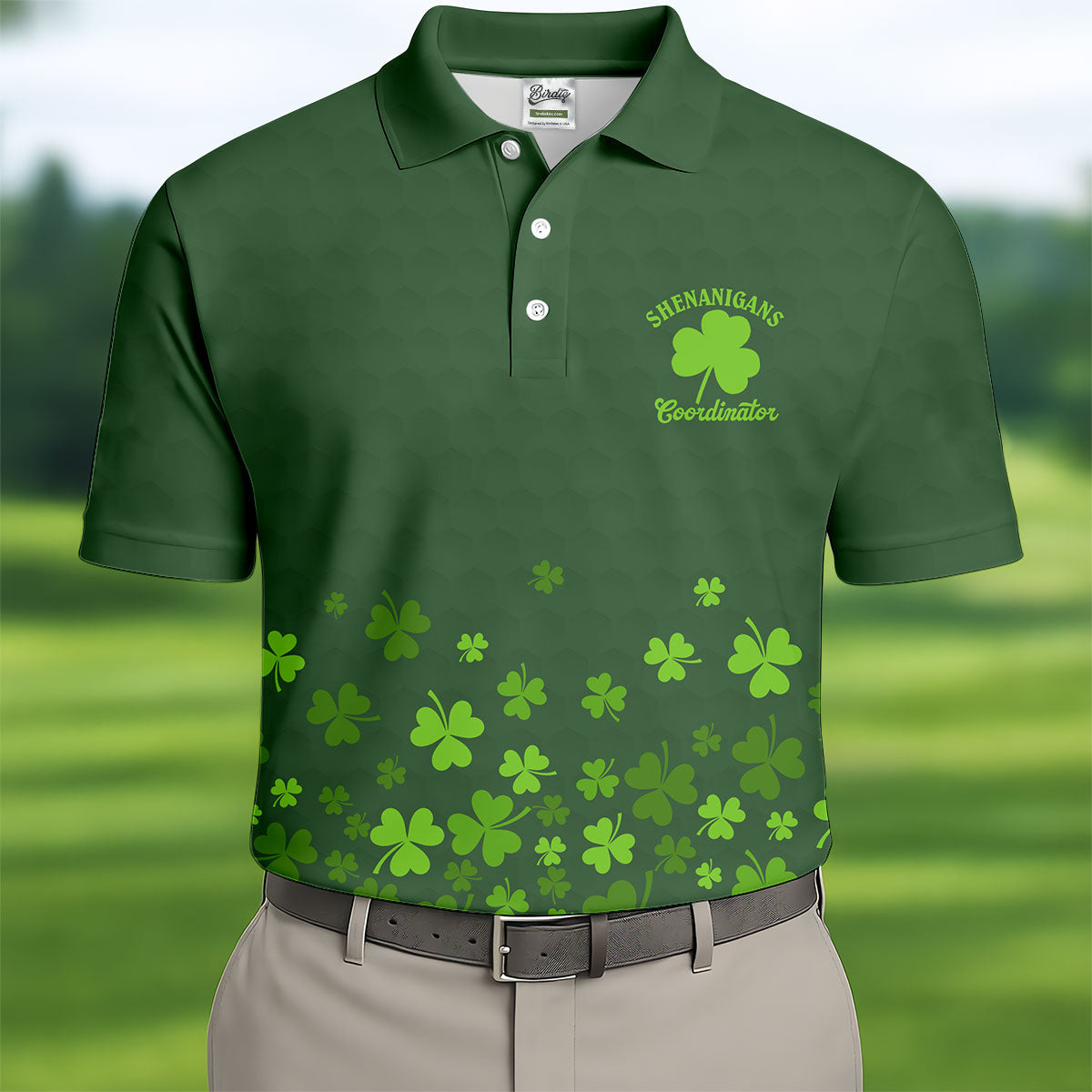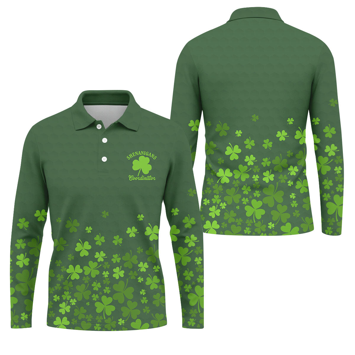 Shenanigans Coordinator Golf Ball Pattern St Patrick Day Green Golf Shirt, Golf Tops For Men, Golf Shirts For Men