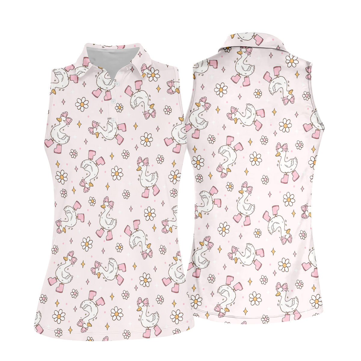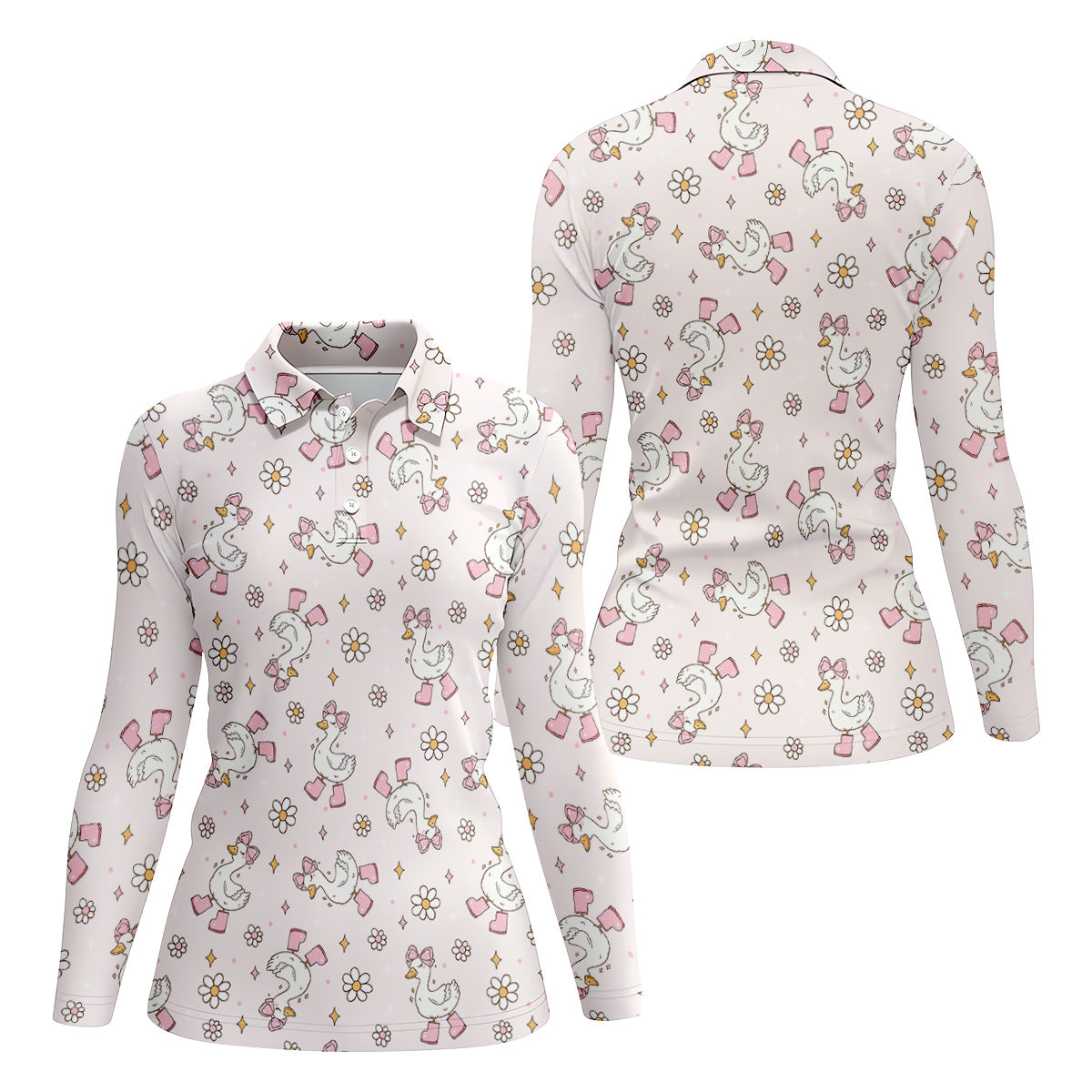 Silly Goose Seamless Pattern Pink Golf Shirt, Cute Golf Outfit, Golf Gifts For Women, Ladies Golf Shirts