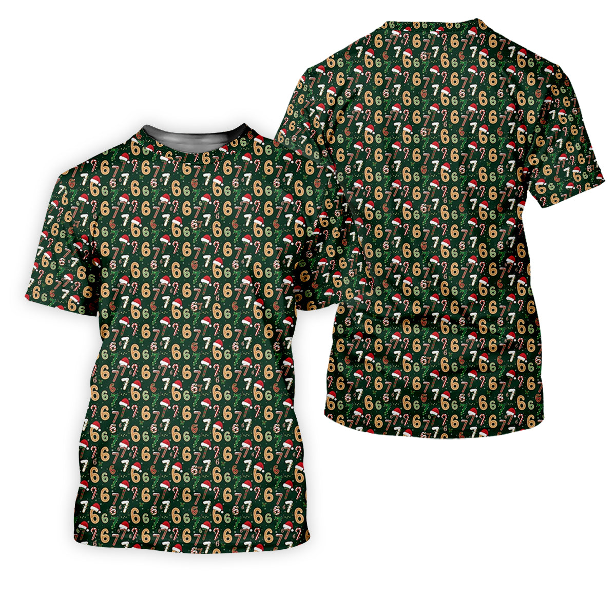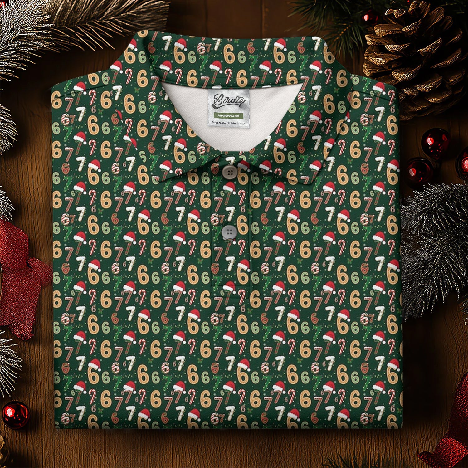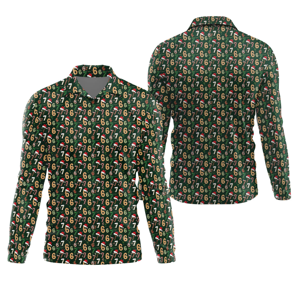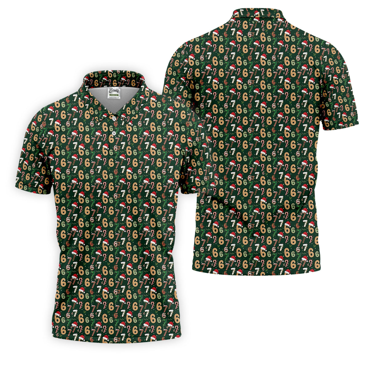 Six Seven Funny Christmas Green Golf Tops For Men, Christmas Golf Shirt, Men Golf Apparel