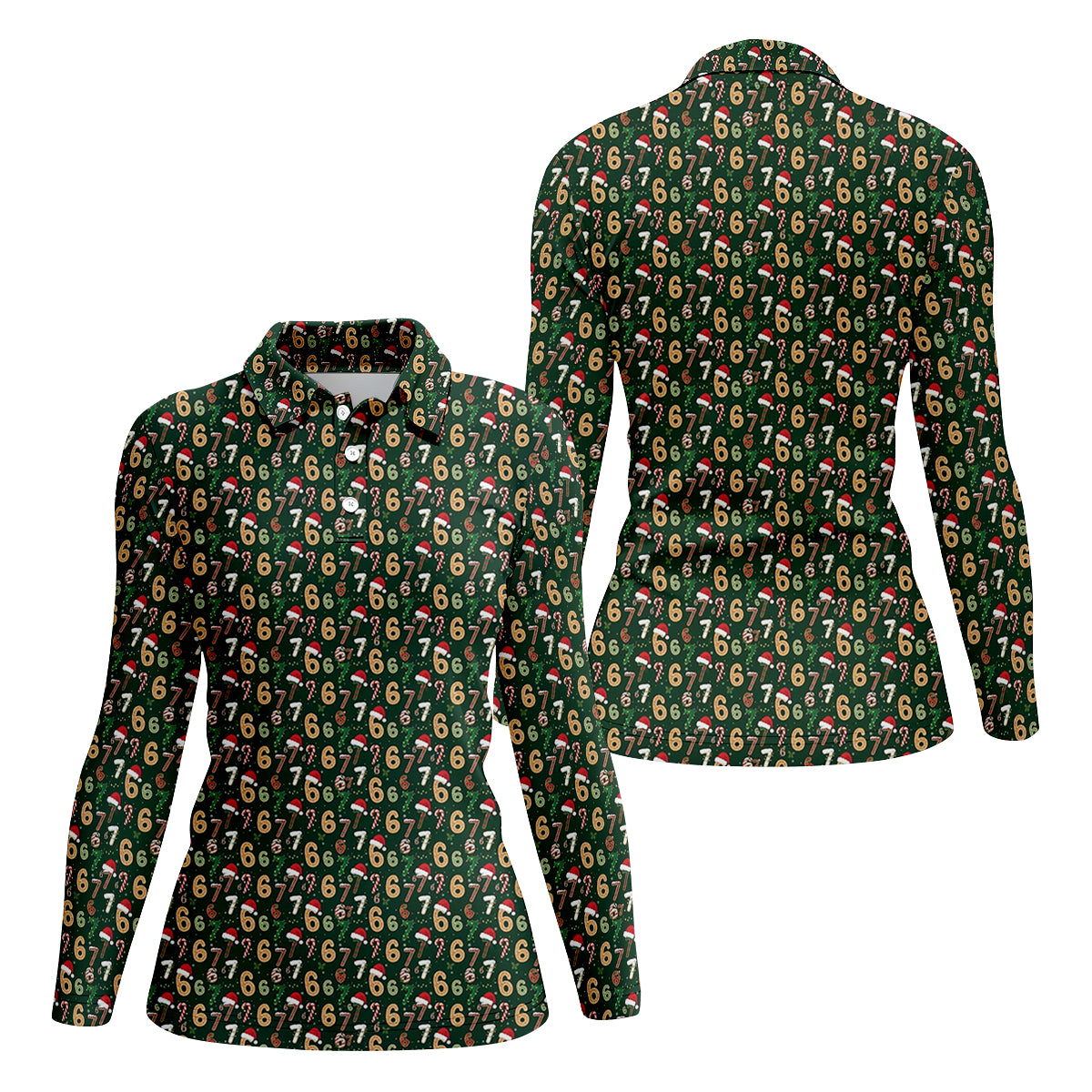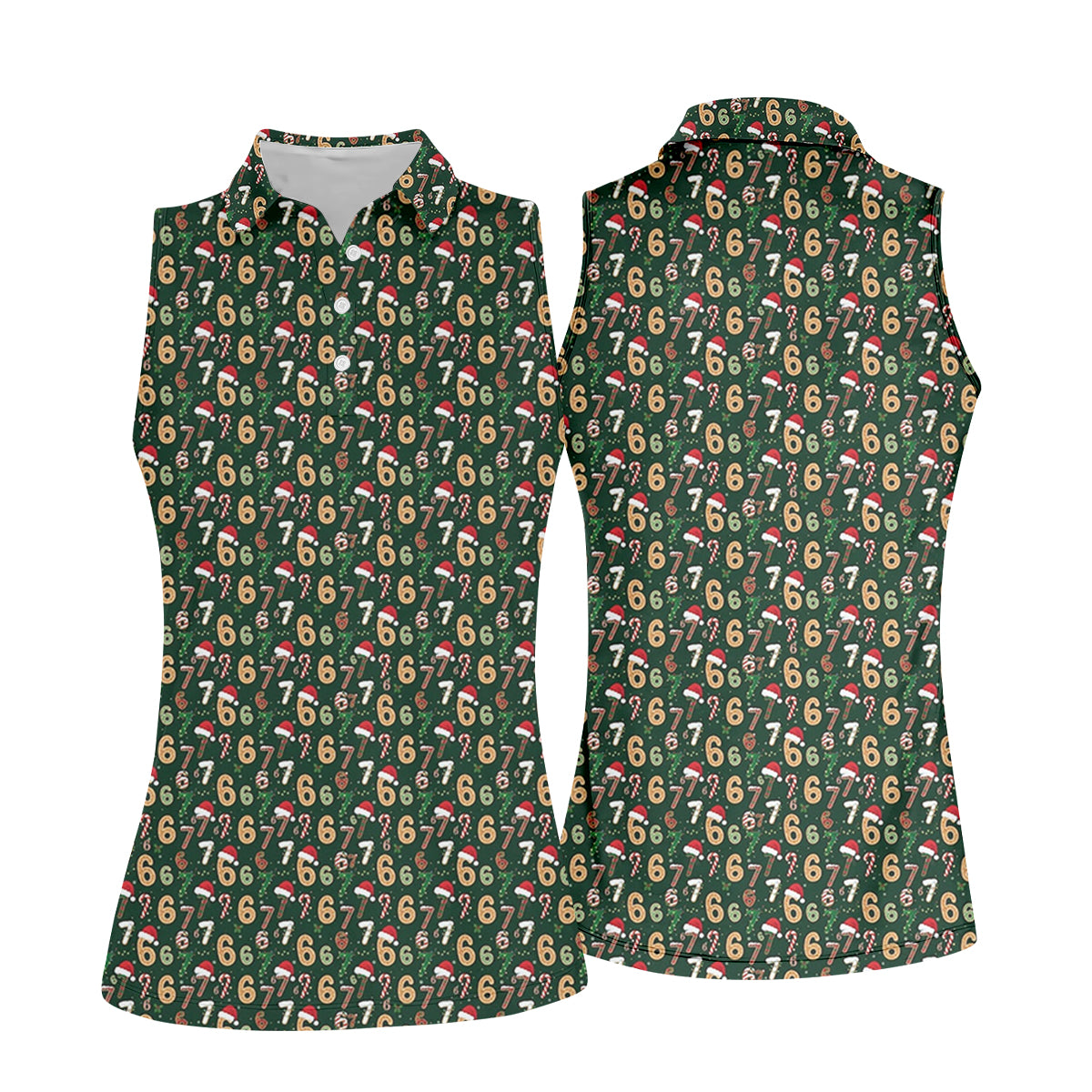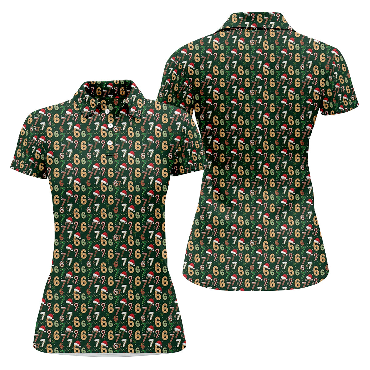 Six Seven Funny Christmas Green Golf Tops For Women, Christmas Golf Shirt, Women Golf Apparel