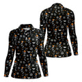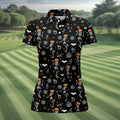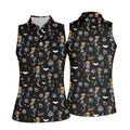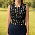 Skeleton Black Golf Shirt, Halloween Golf Shirt, Fun Golf Polos, Sleeveless Womens Golf Shirts, Ladies Golf Shirts