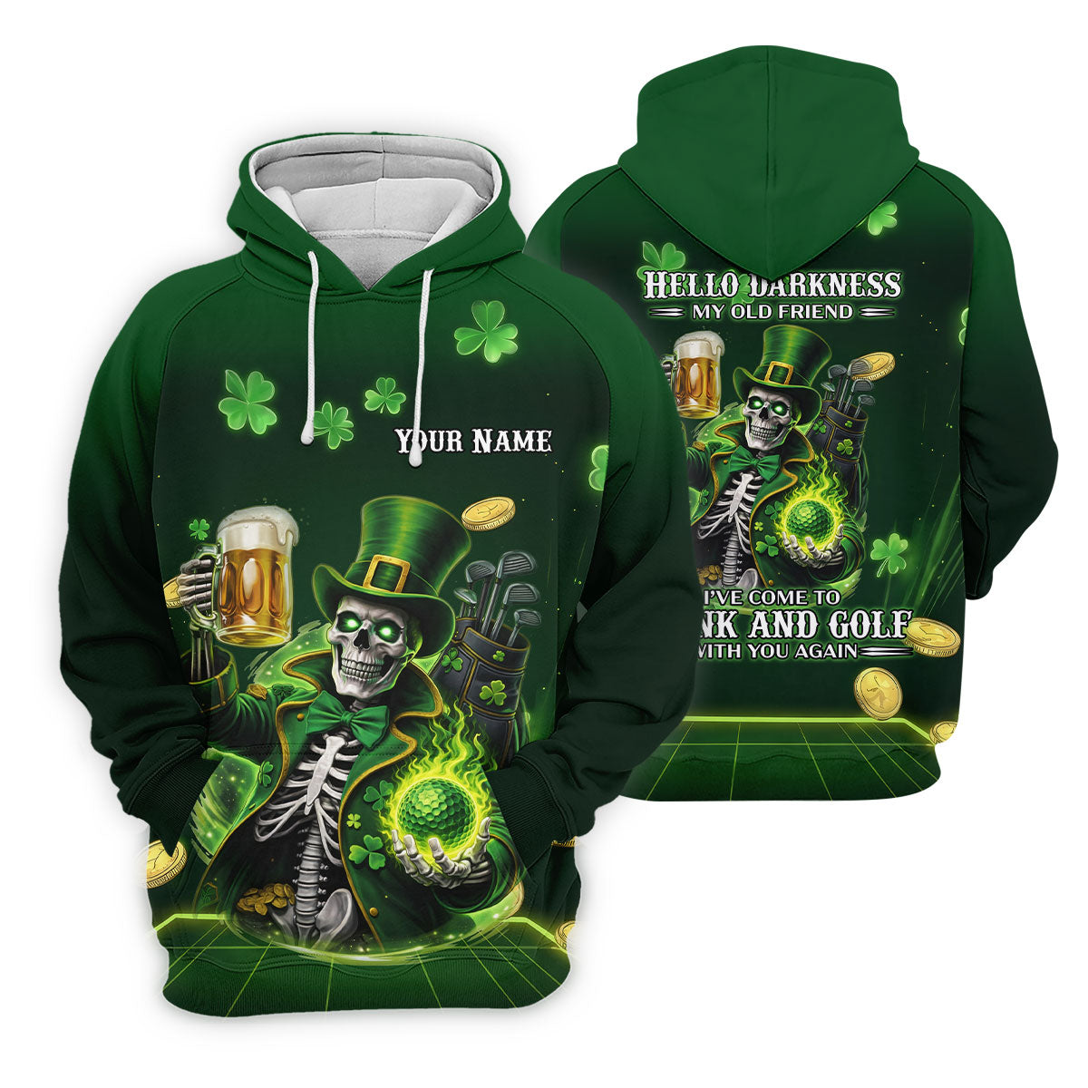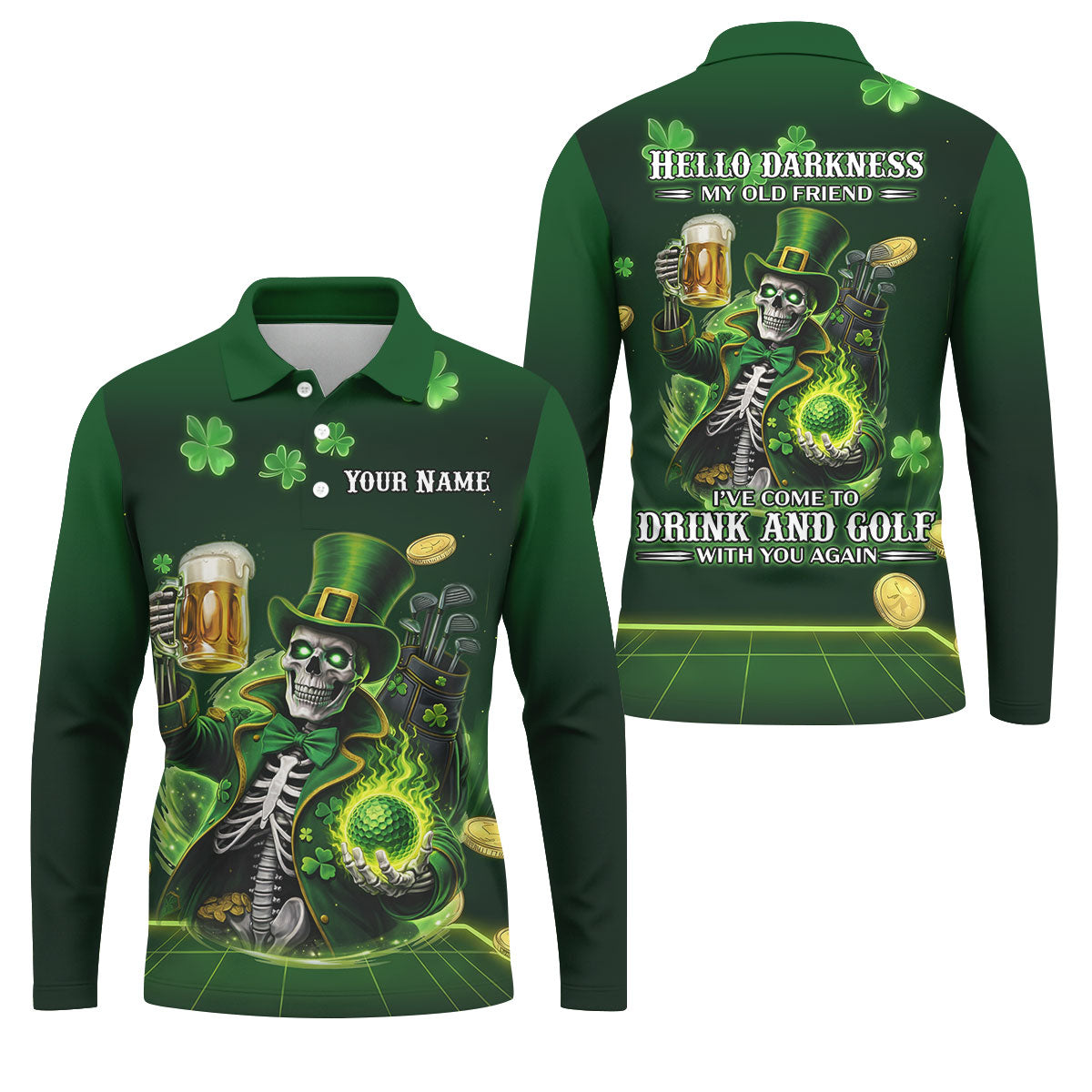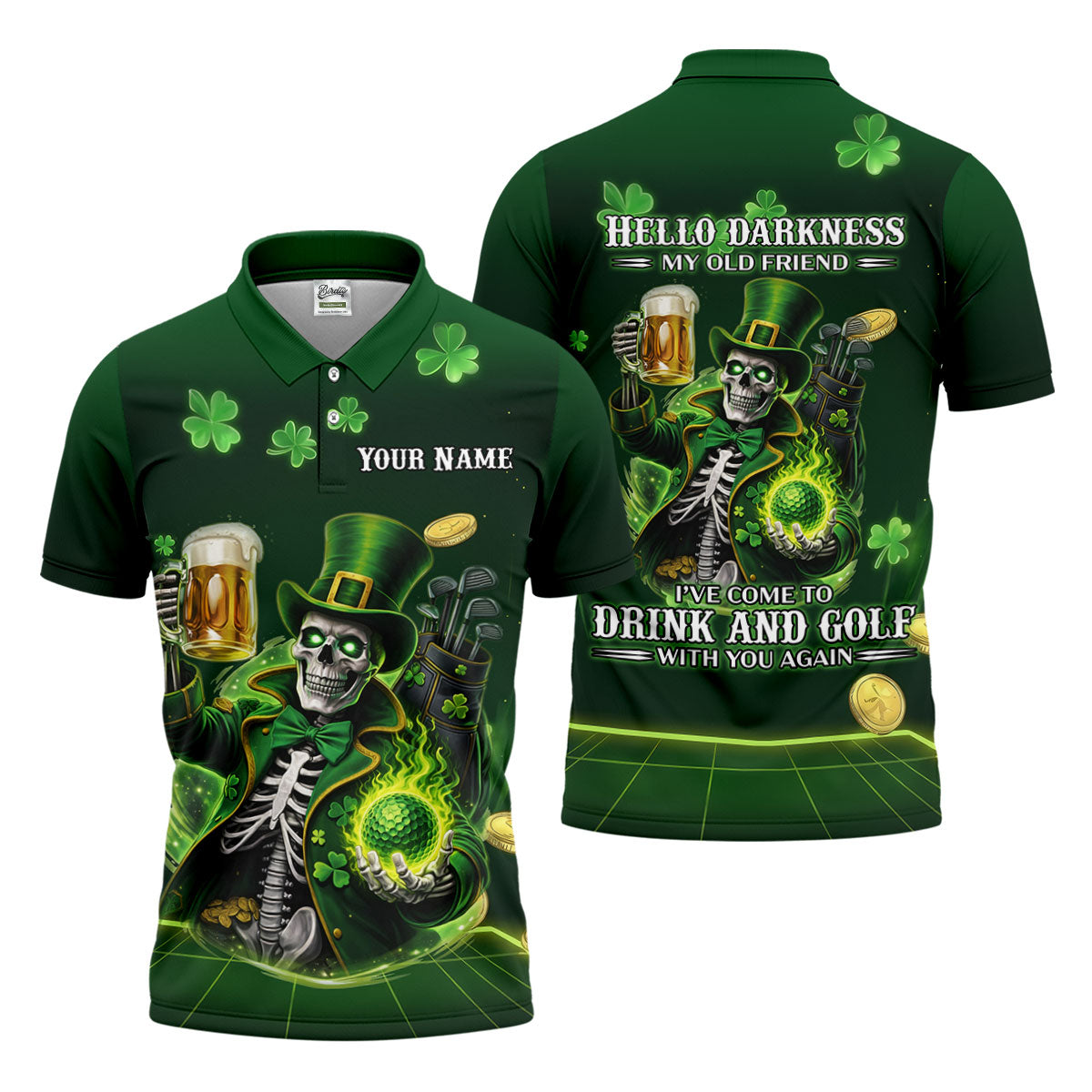 Hello Darkness Four Leaf Clover St Patricks Day Fun Golf Shirts For Men, St Patrick's Green Polo Shirts For Men