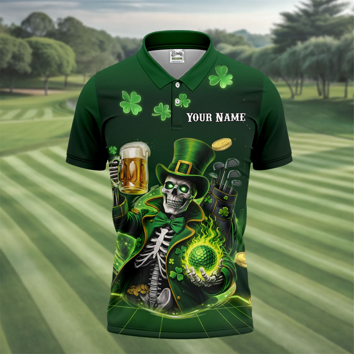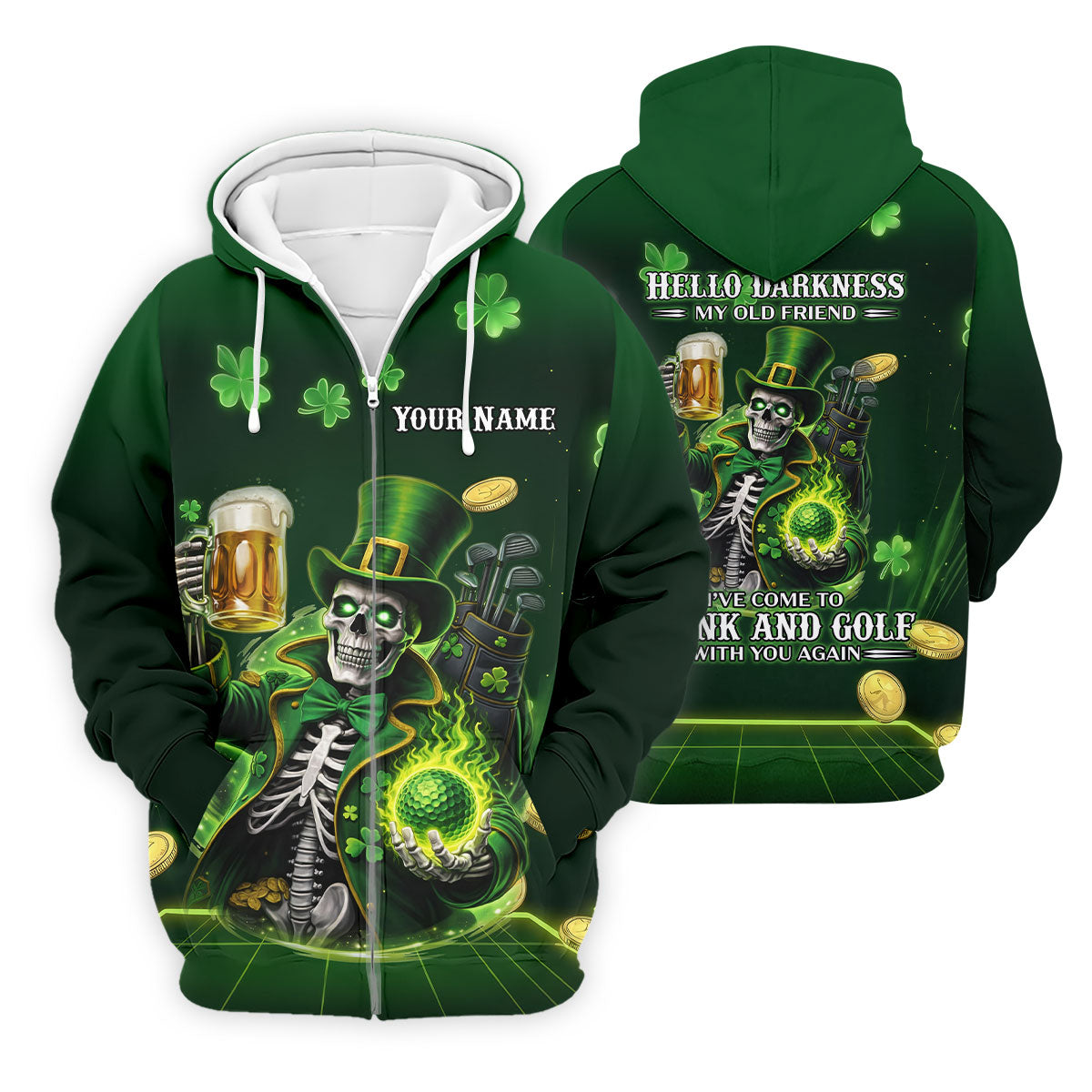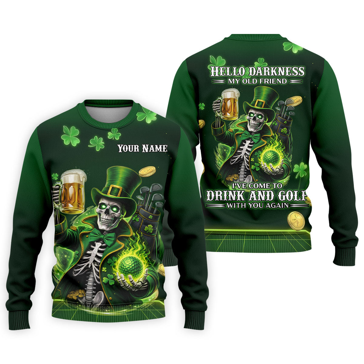 Hello Darkness Four Leaf Clover St Patricks Day Fun Golf Shirts For Men, St Patrick's Green Polo Shirts For Men