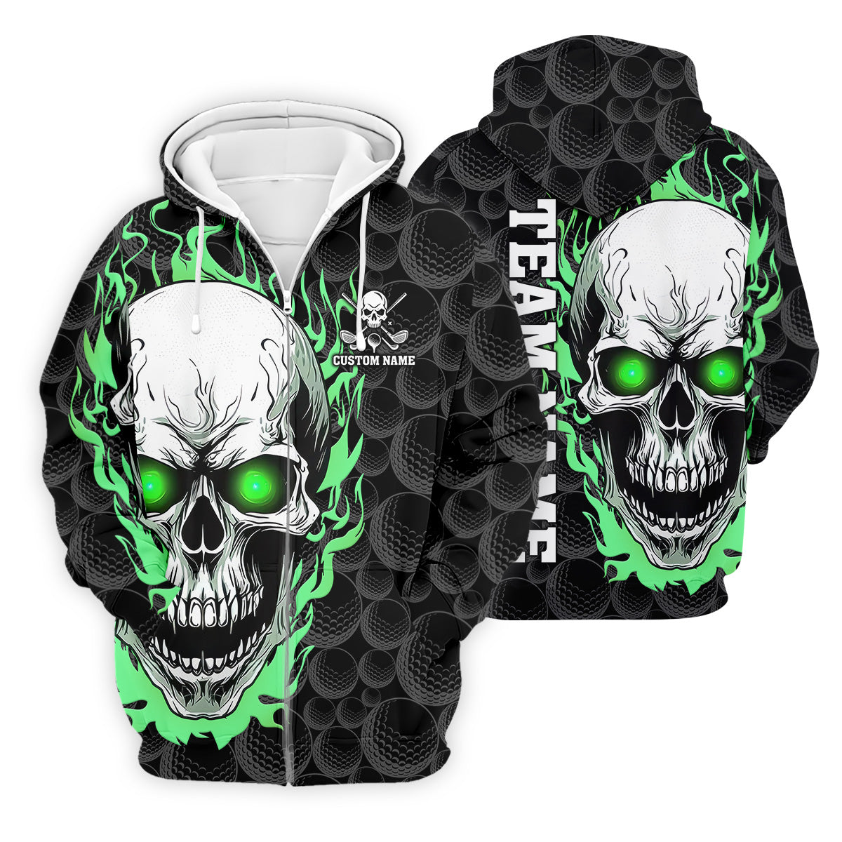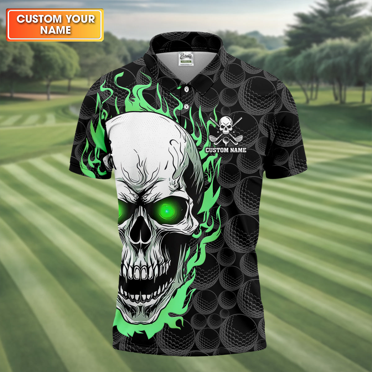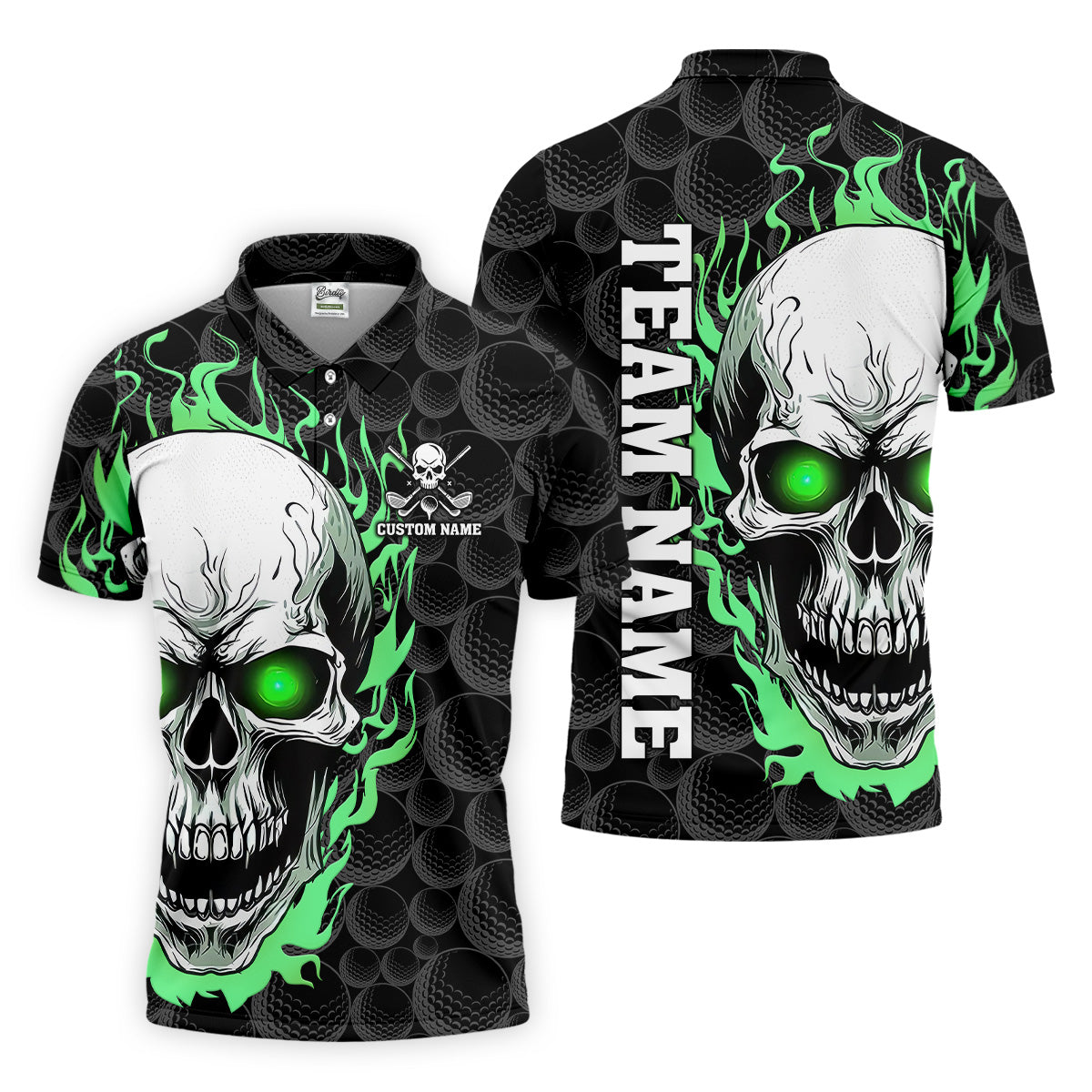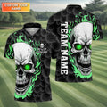 Skull Neon Golf Team Shirt, Custom Golf Polos, Mens Golf Polo Shirts, Cool Golf Gift