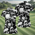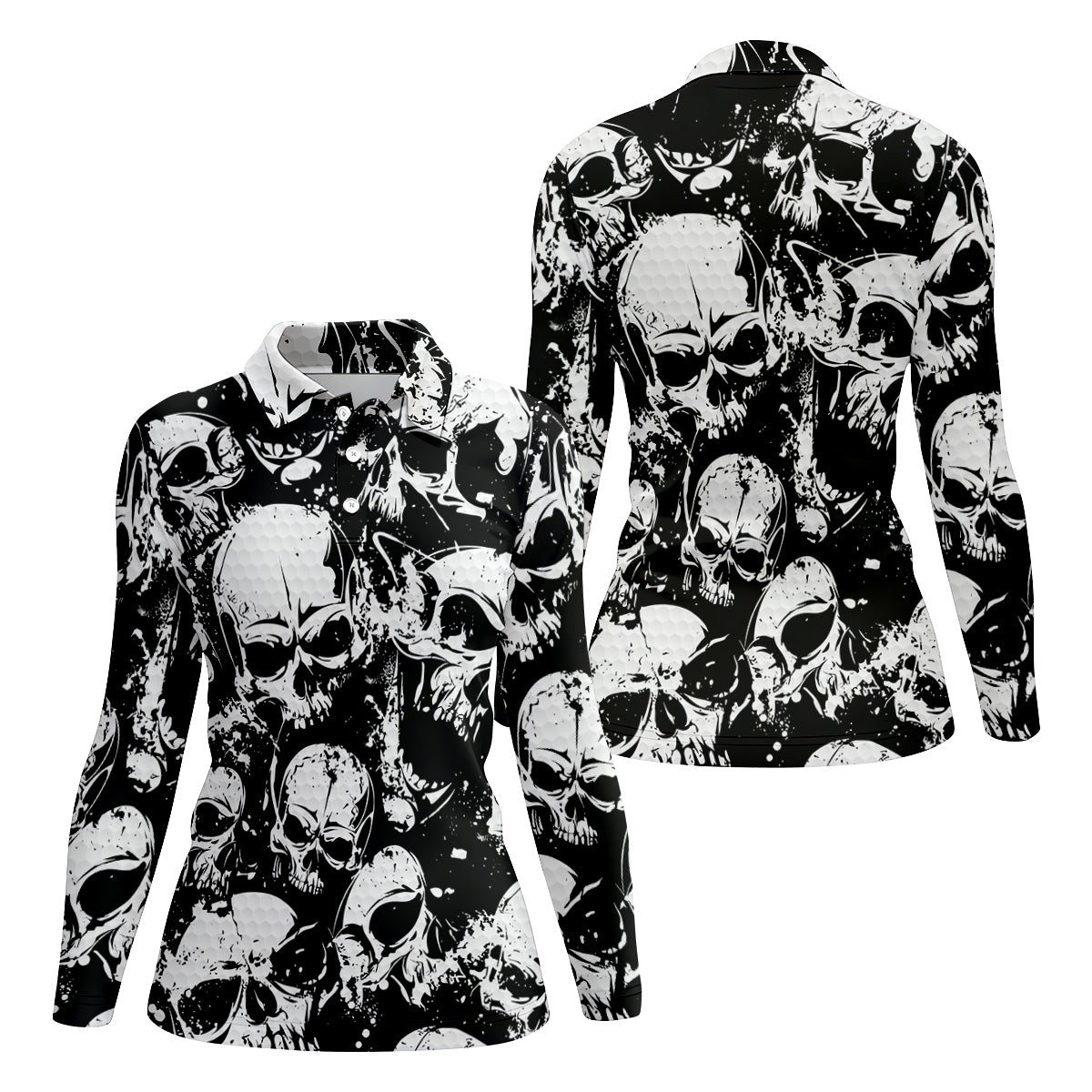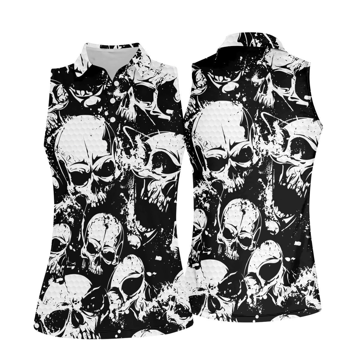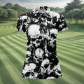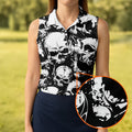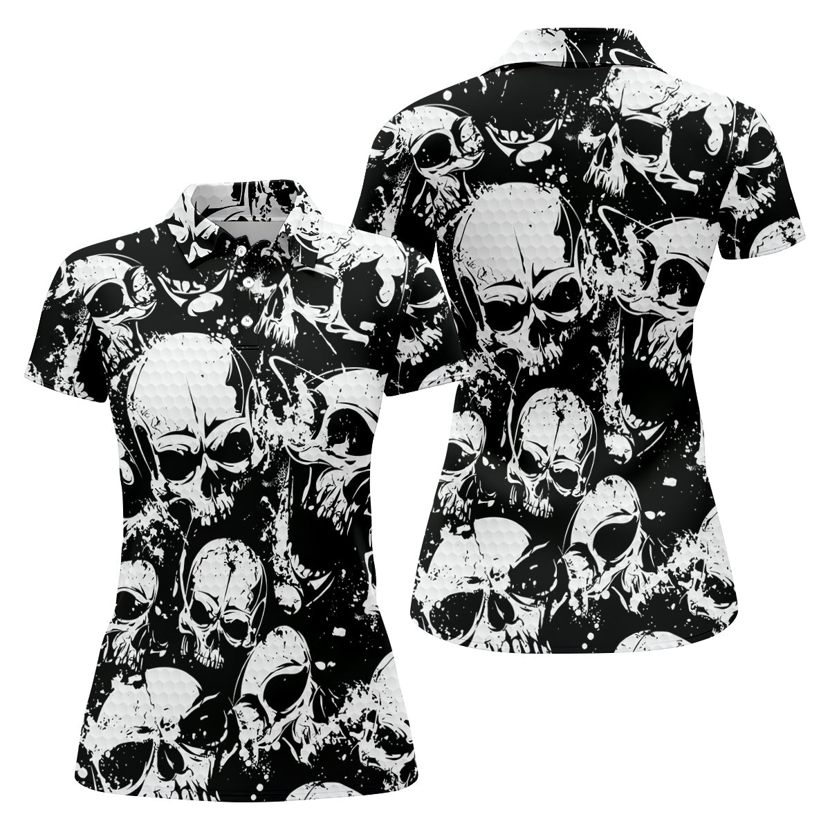 Skulls Splatter Black Grunge Womens Golf Shirts, Ladies Golf Polos, Cool Golf Gift, Golfing Apparel