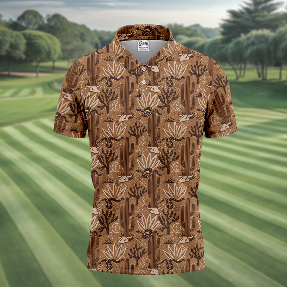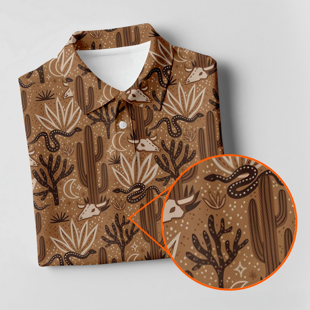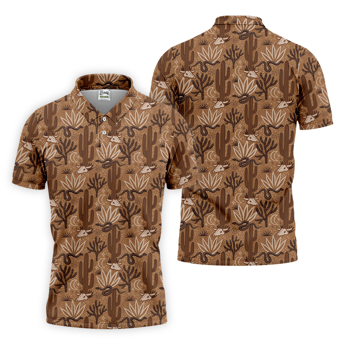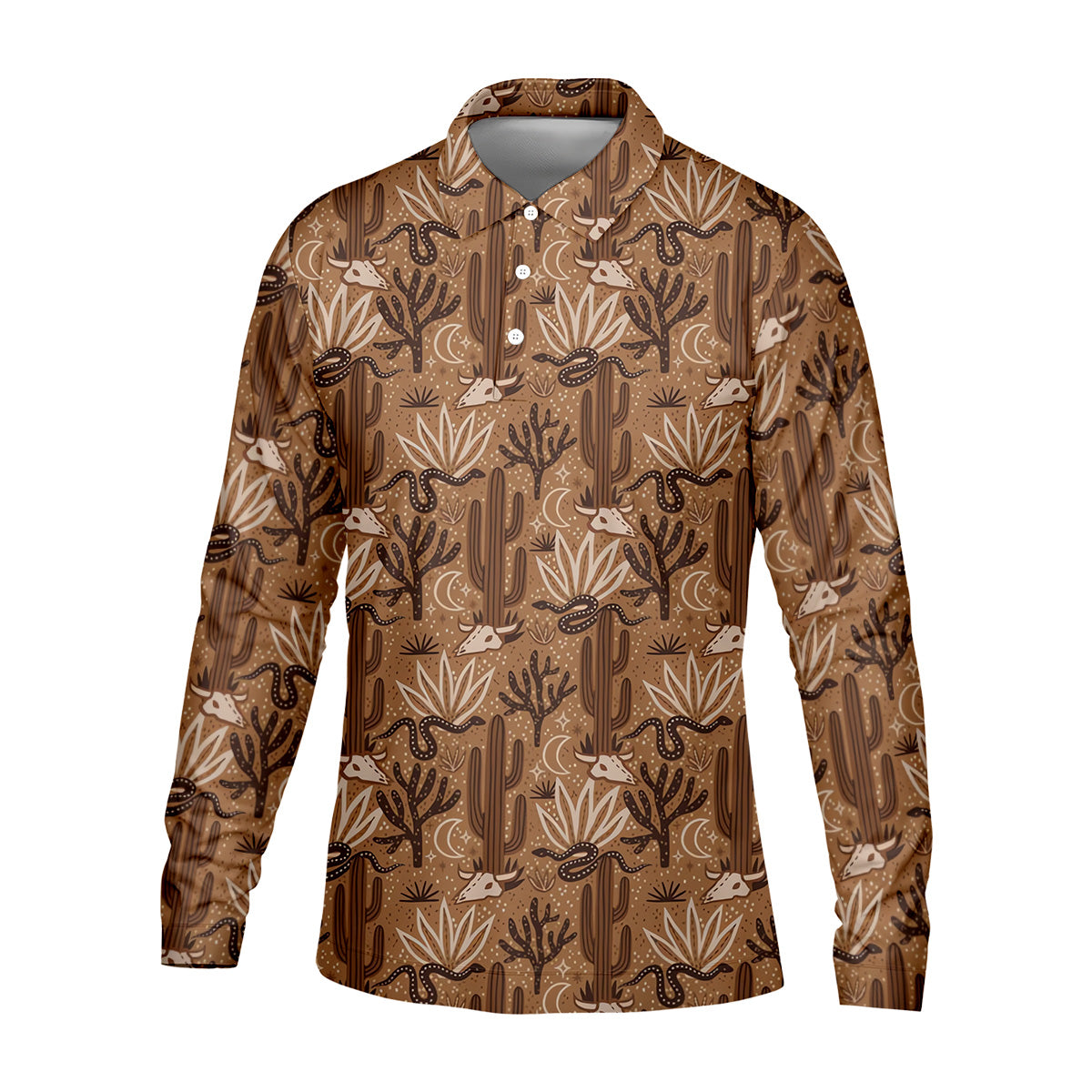 Snake Cactus Seamless Pattern Golf Tops For Men, Hawaiian Golf Shirts, Long Sleeve Polo