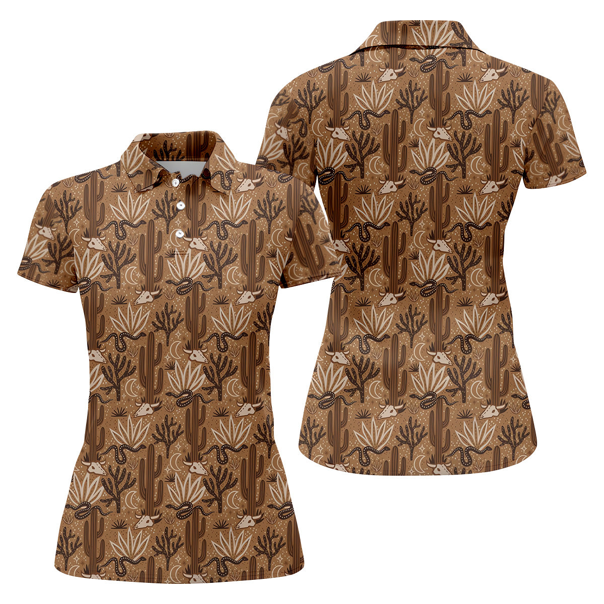 Snake Cactus Seamless Pattern Women Golf Top, Golf Shirt For Women, Patterned Golf Shirts