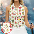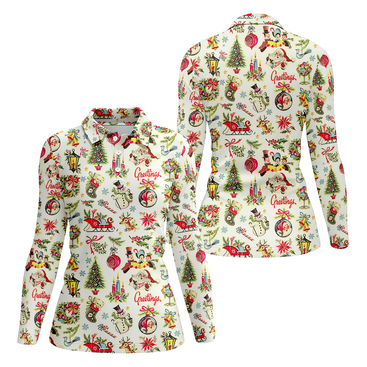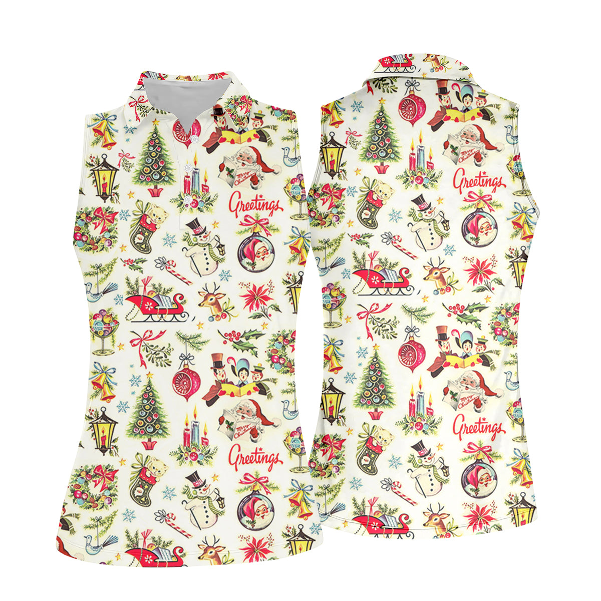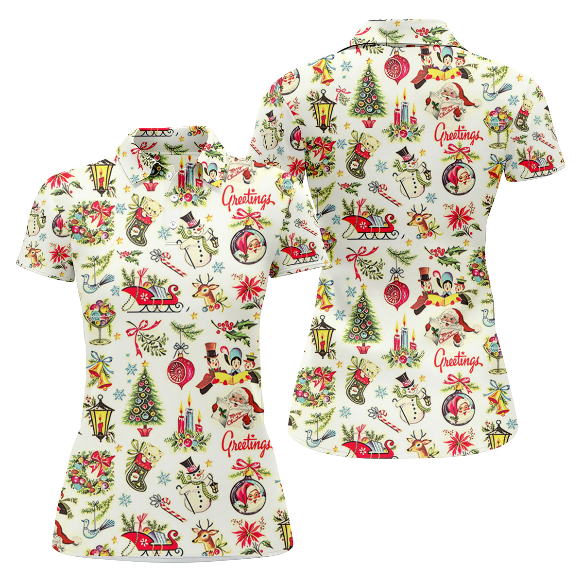 Snowman Santa Greetings Christmas Golf Tops, Women's Christmas Golf Polos Shirt, Ladies Golf Apparel