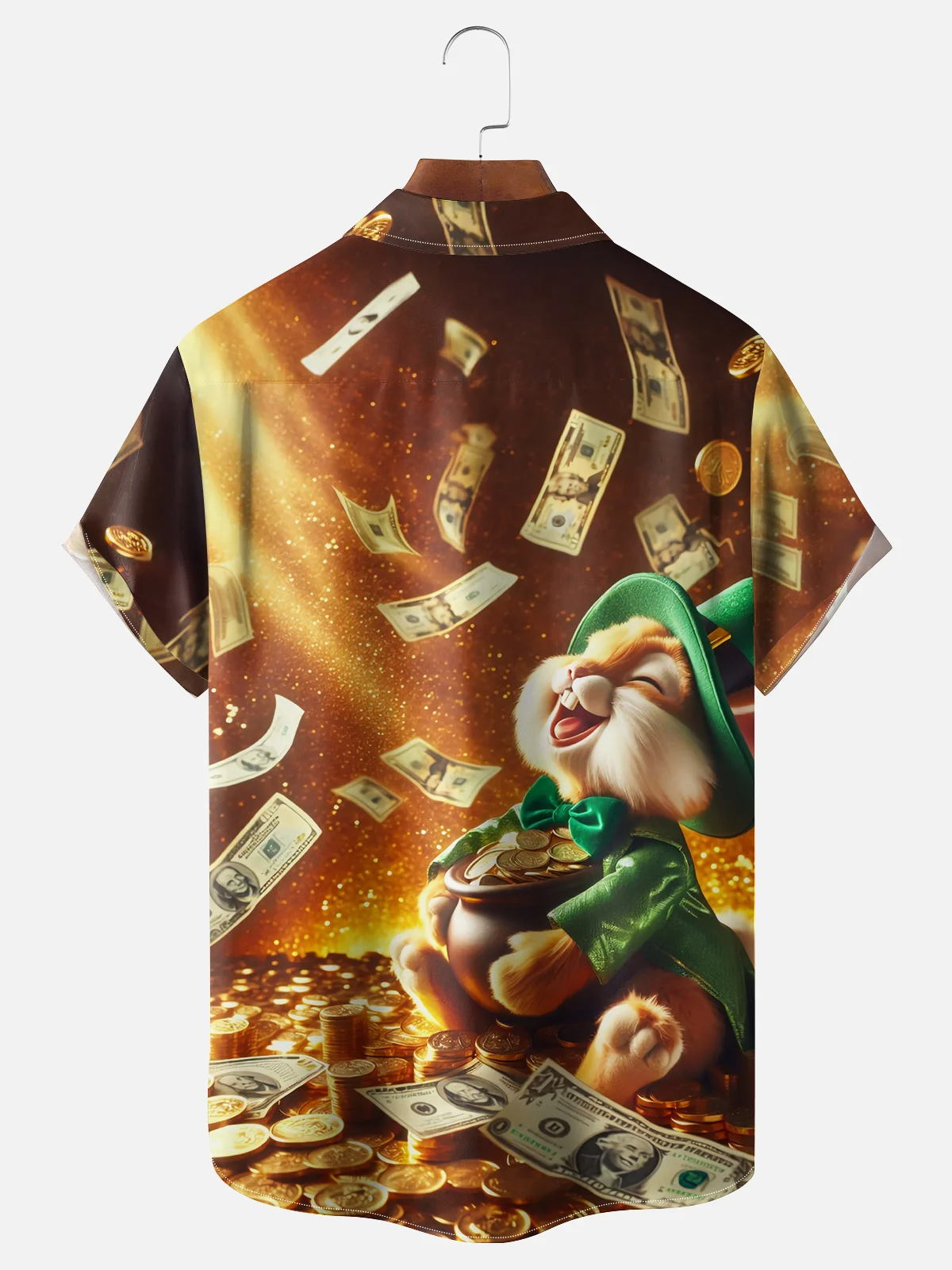 St Patrick‘s Day Shamrock Gold Coins US Dollars Easter Bunny Hawaiian Golf Shirt, Men's Golf Shirt