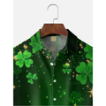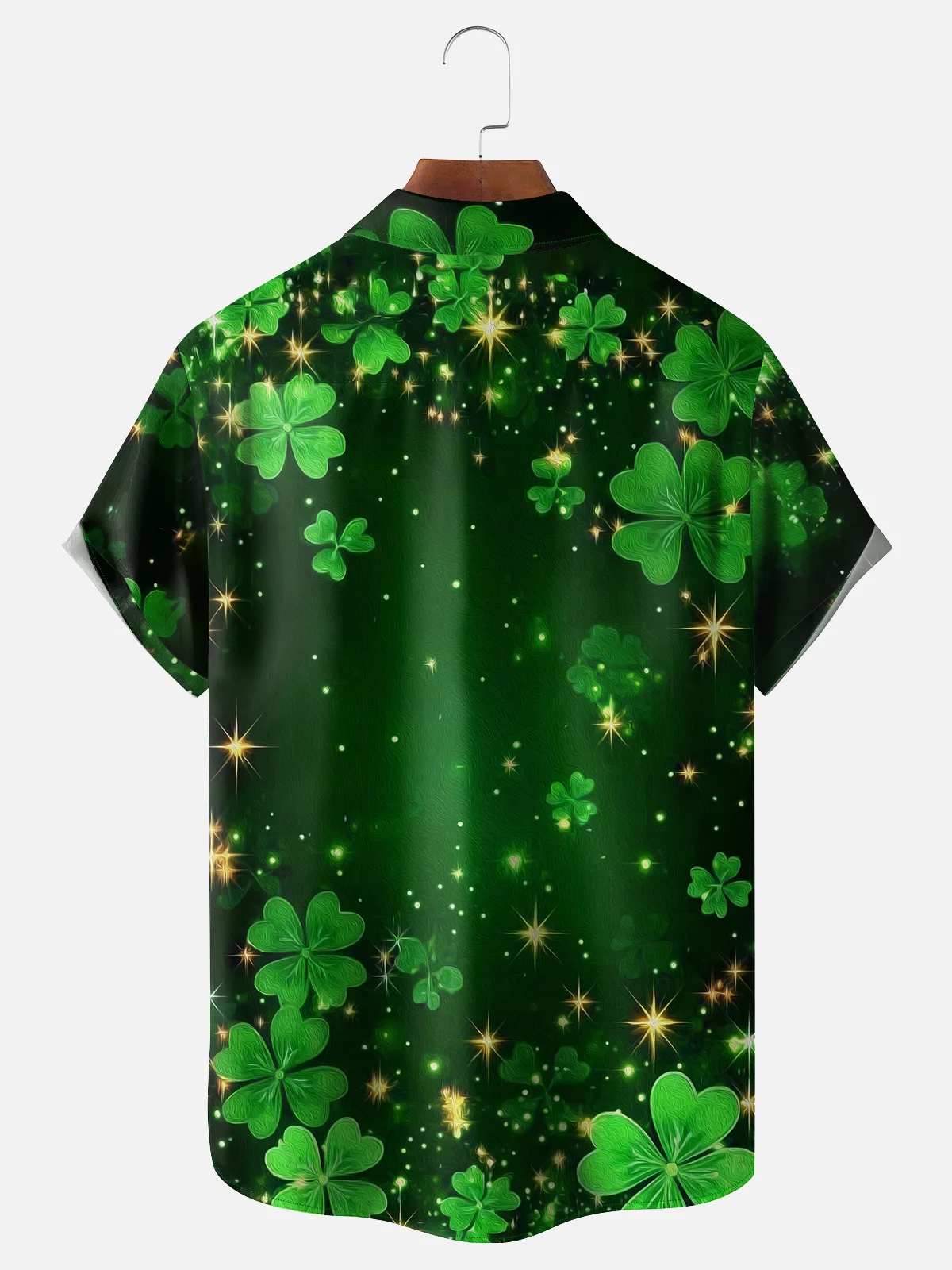 St. Patrick's Day Four Leaf Clover Green Art Hawaiian Golf Shirt, Tropical Vibe Men's Golf Shirt