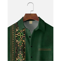 St. Patrick's Day Four Leaf Clover Stripe Green And Gold Hawaiian Golf Shirt, Men's Golf Shirt