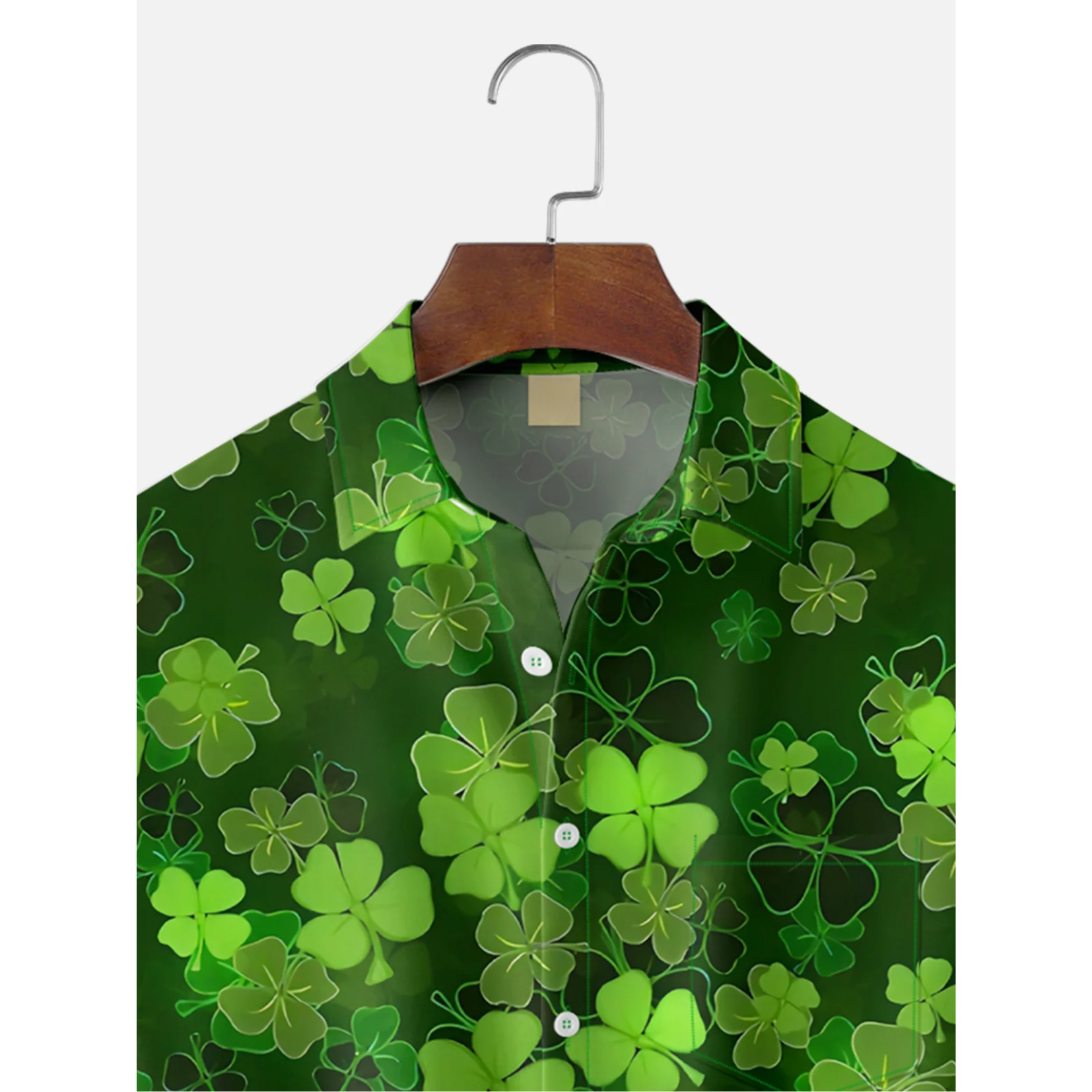 St. Patrick's Day Four Leaf Clover Tropical Vibe Hawaiian Golf Shirt, Men's Golf Shirt