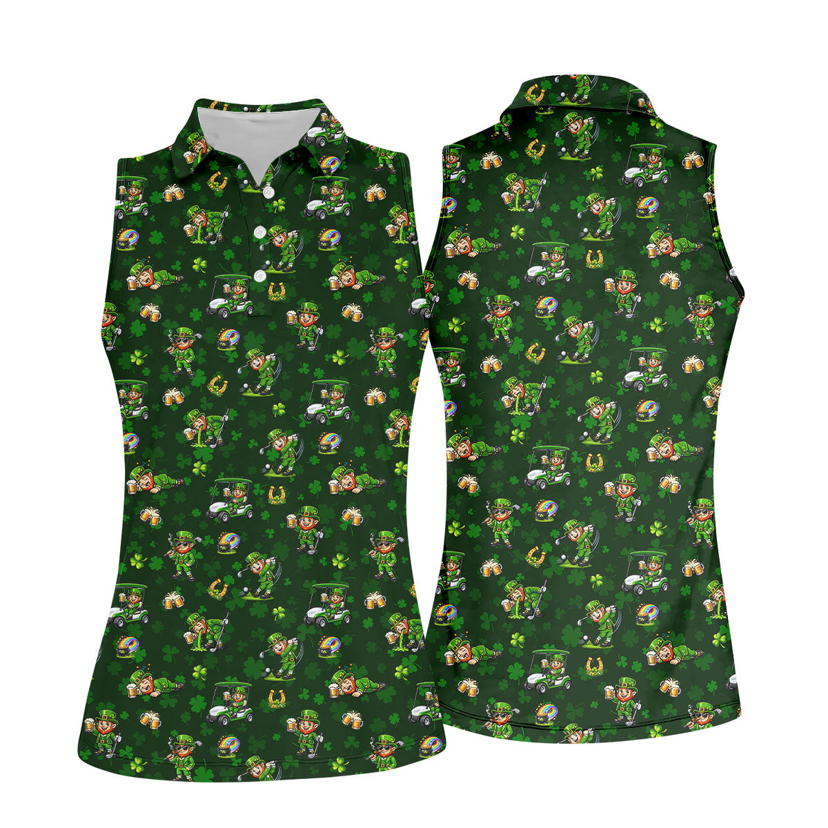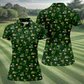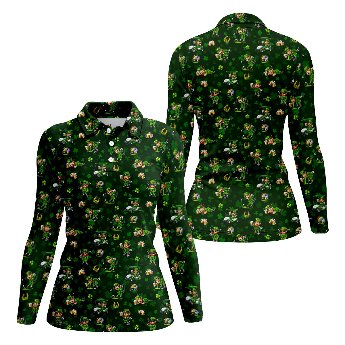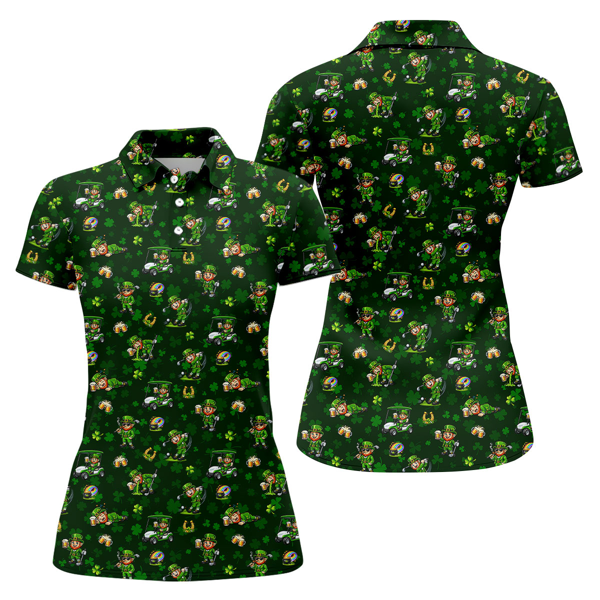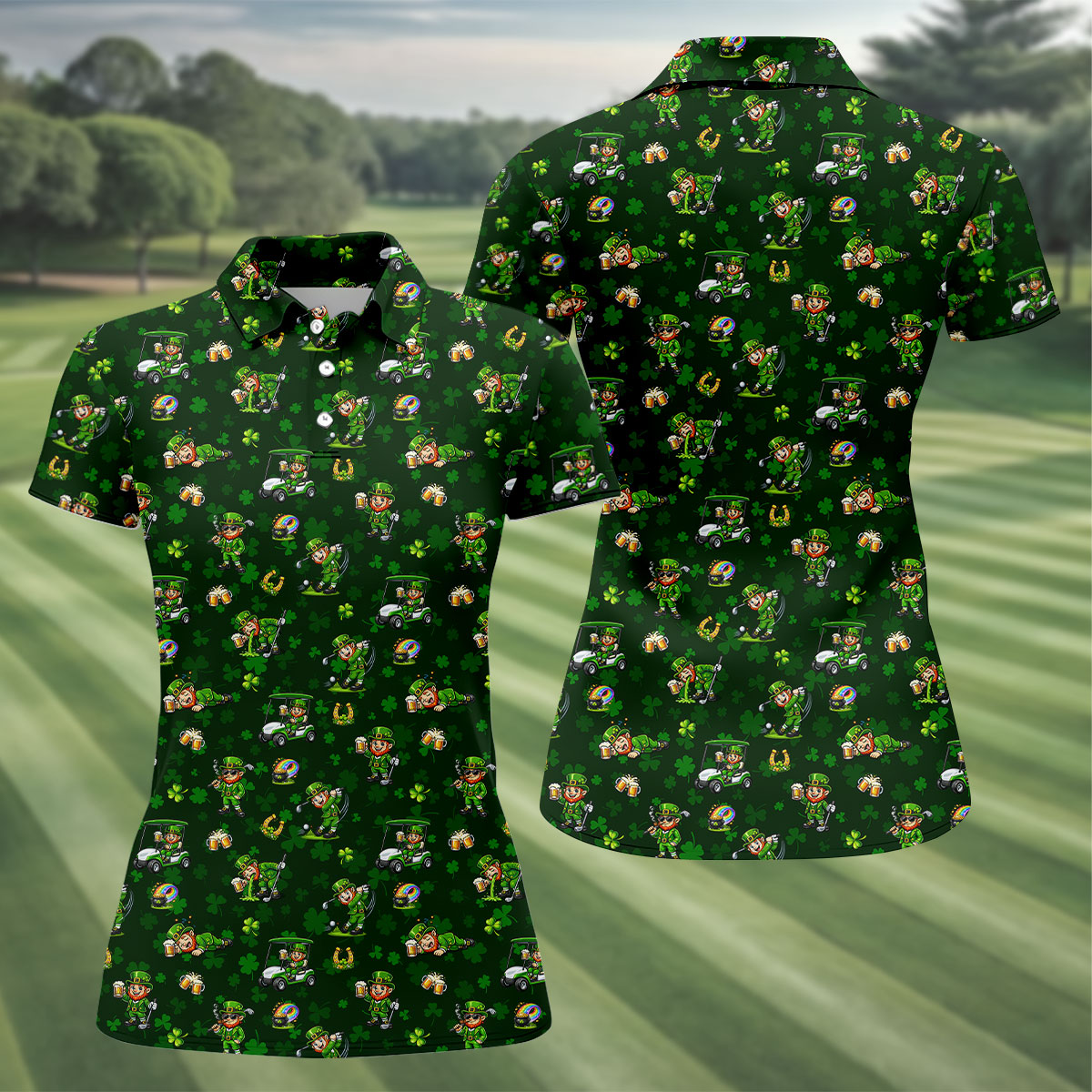 St Patrick's Day Leprechaun Golf Pose Shamrock Golf Shirt, Fun Women's Golf Shirts, Ladies Golf Polos