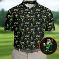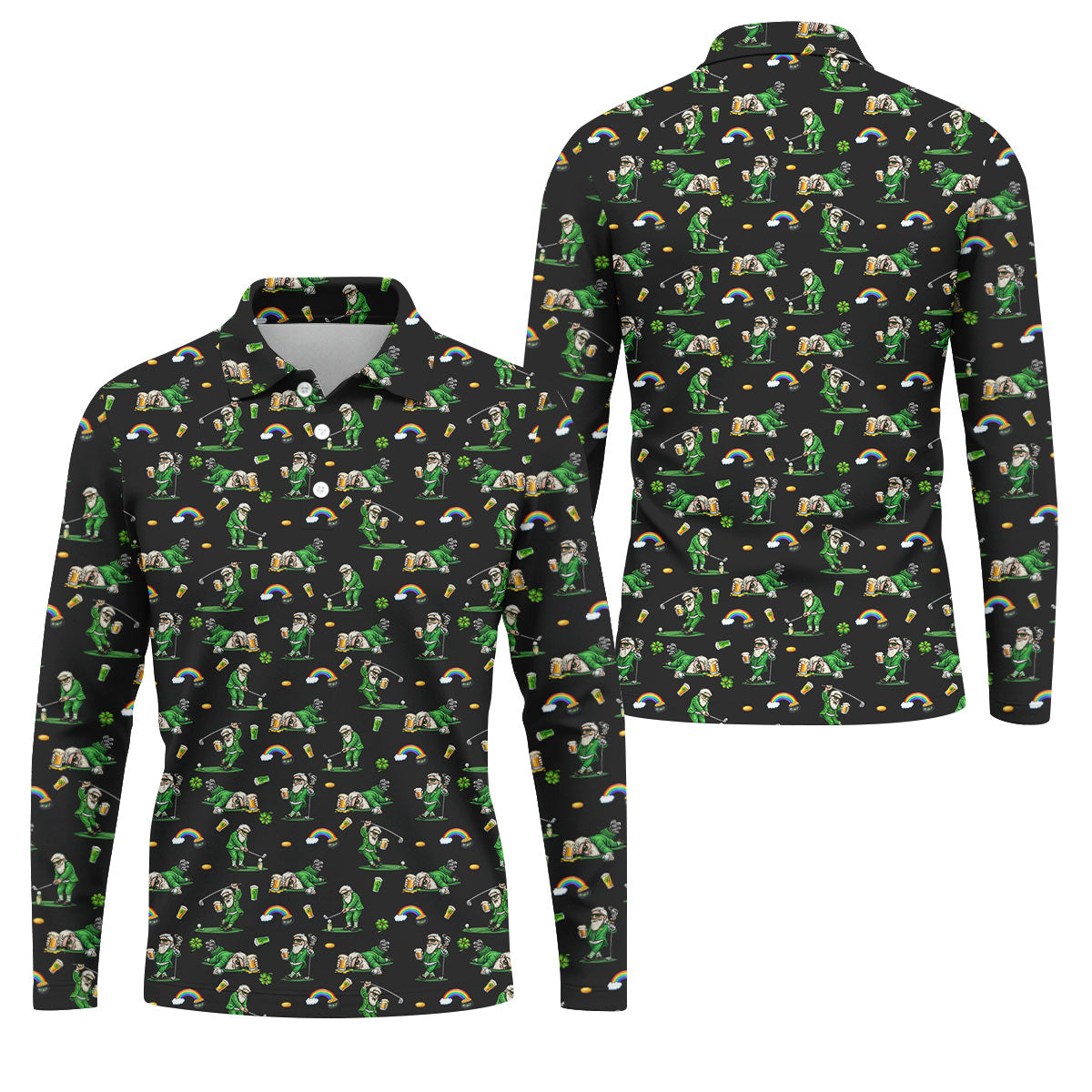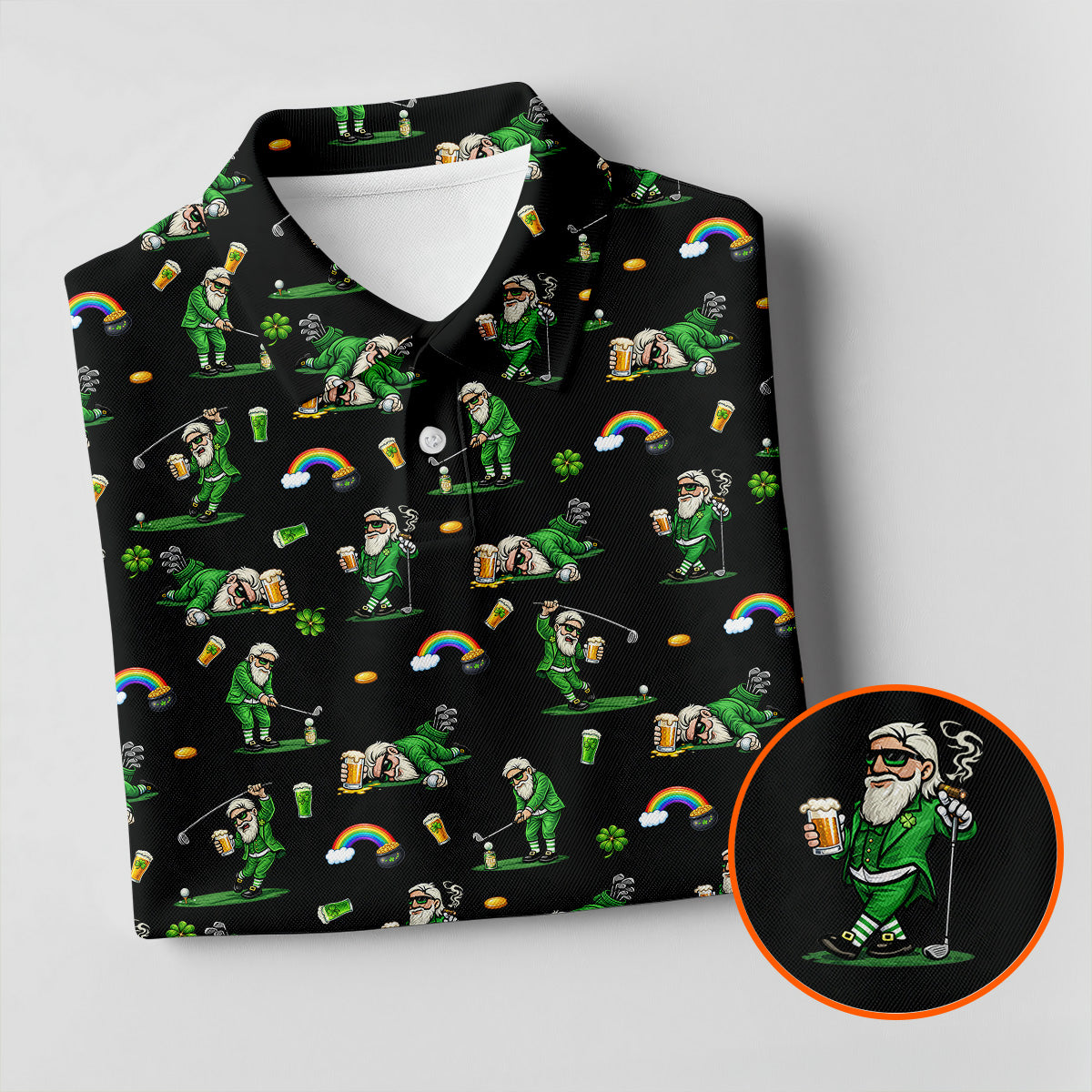 St Patrick's Day Leprechaun Character Golf And Beer Black Golf Shirt, Fun Golf Shirts For Men, Polo For Men