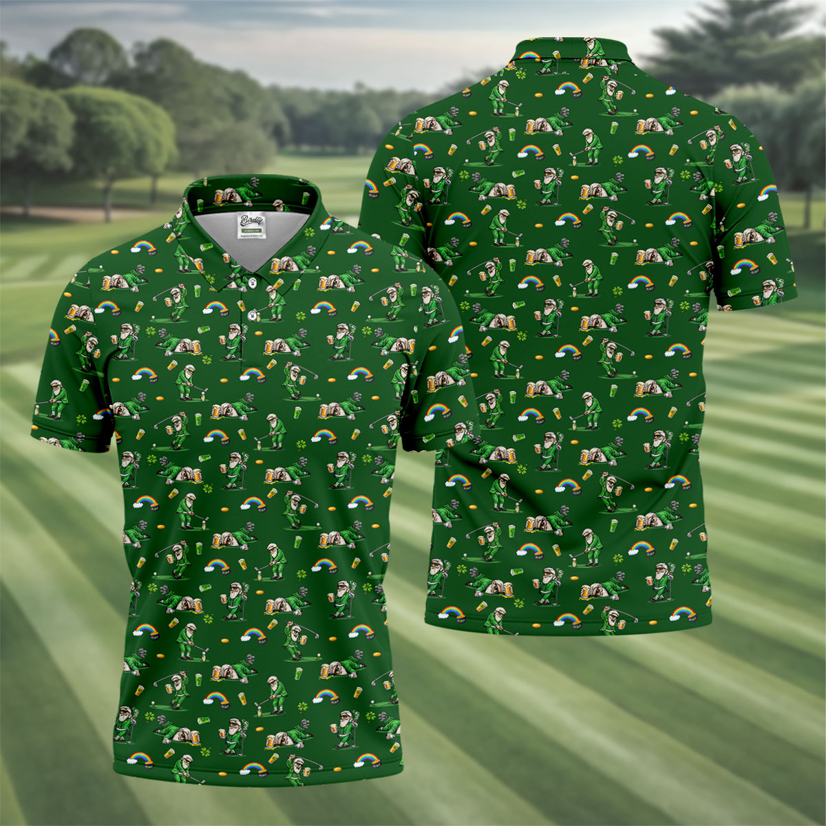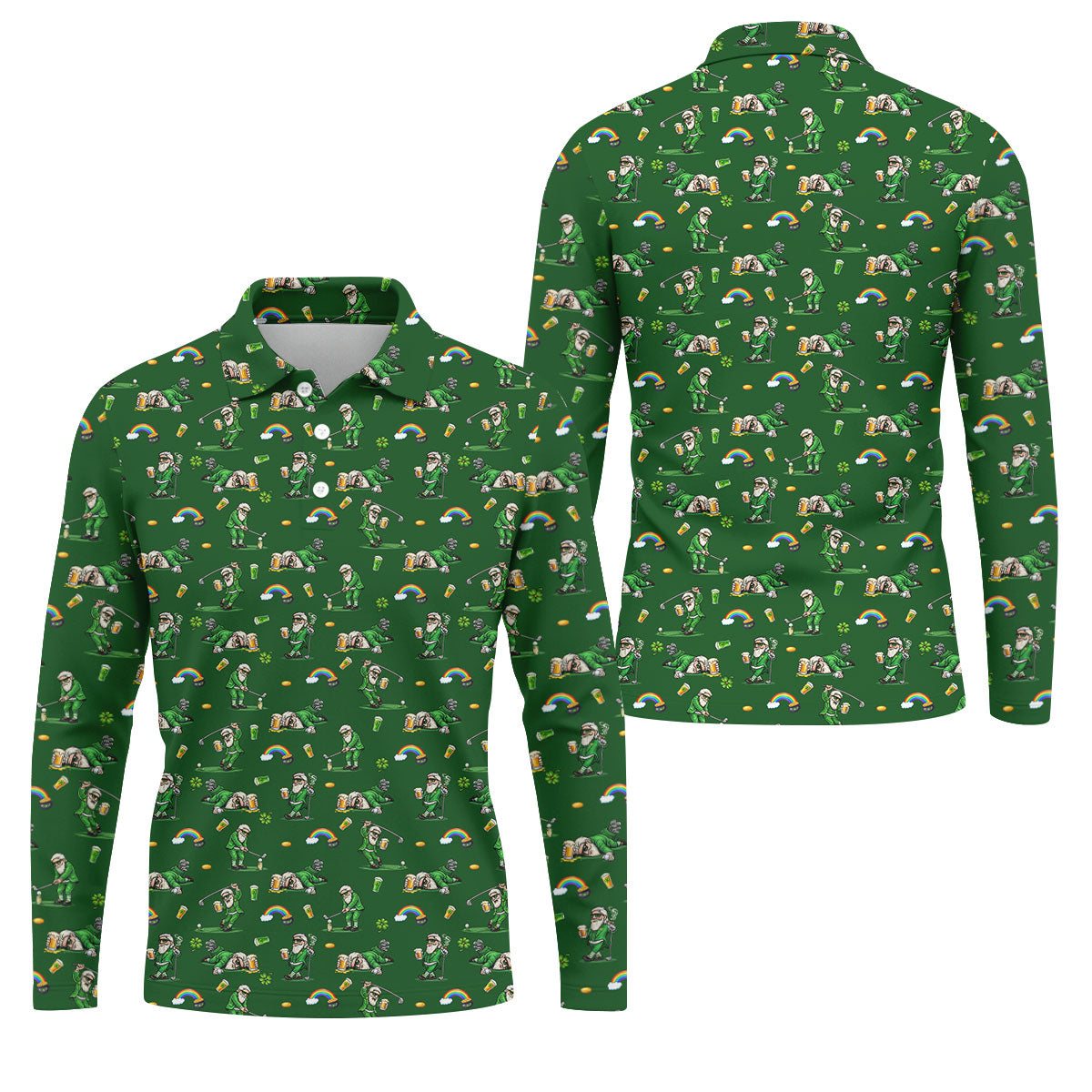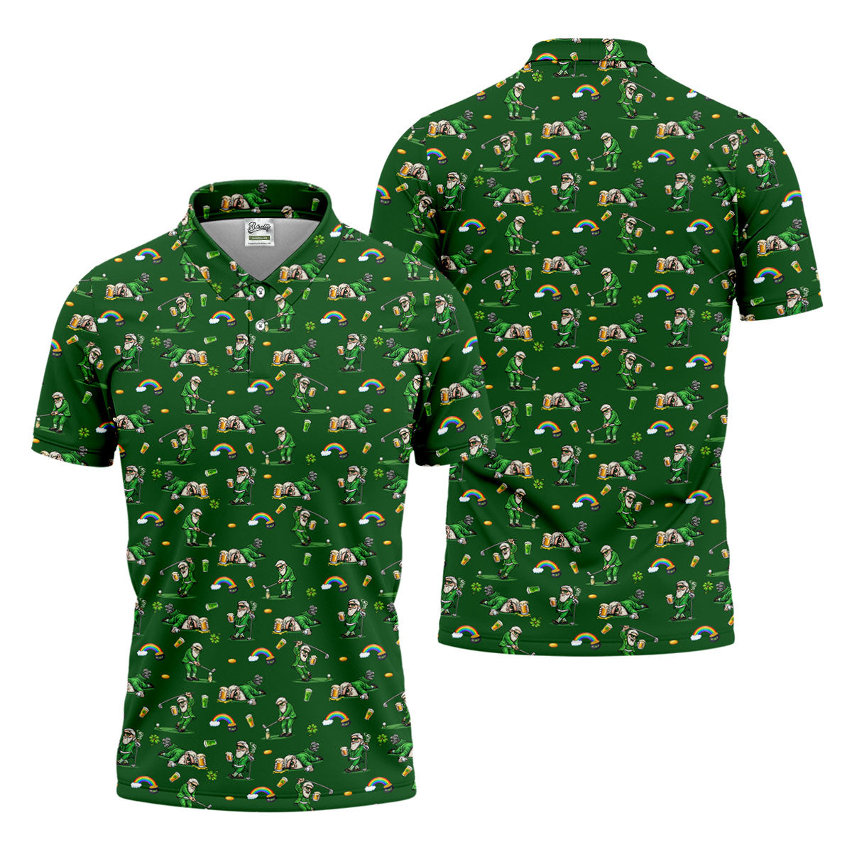 St Patrick's Day Leprechaun Character Golf And Beer Green Golf Shirt, Fun Golf Shirts For Men, Polo For Men