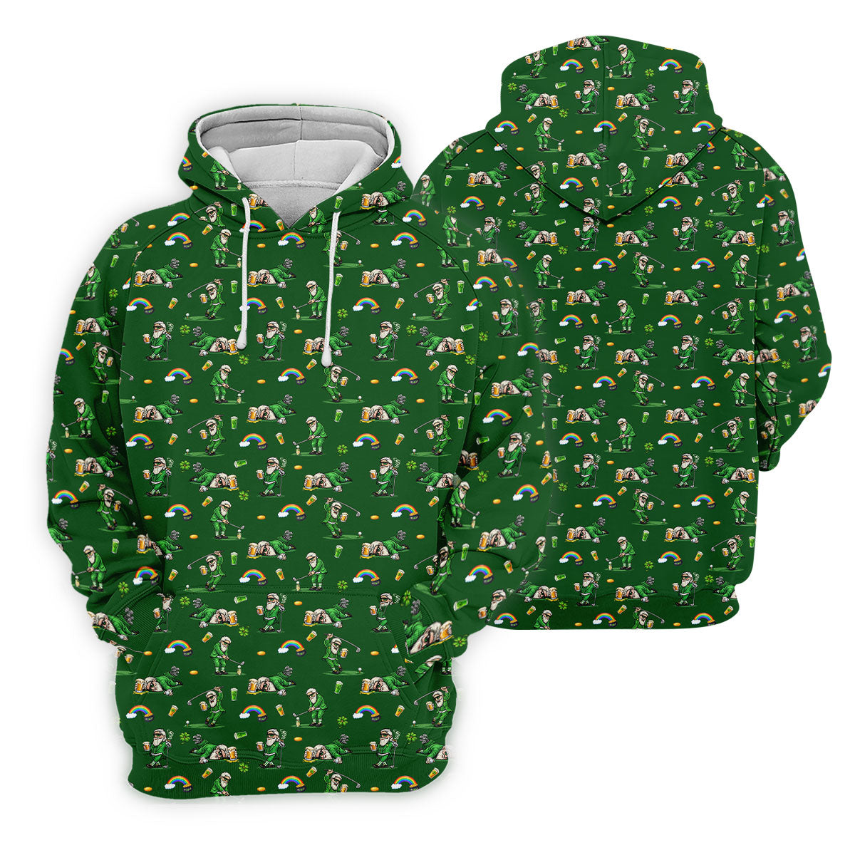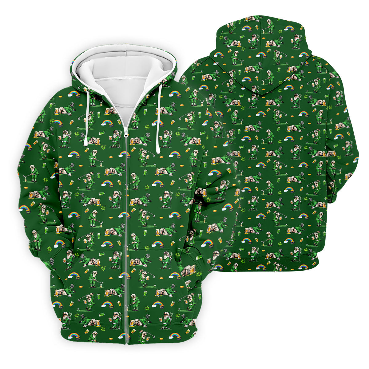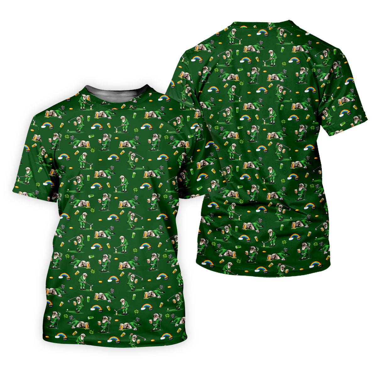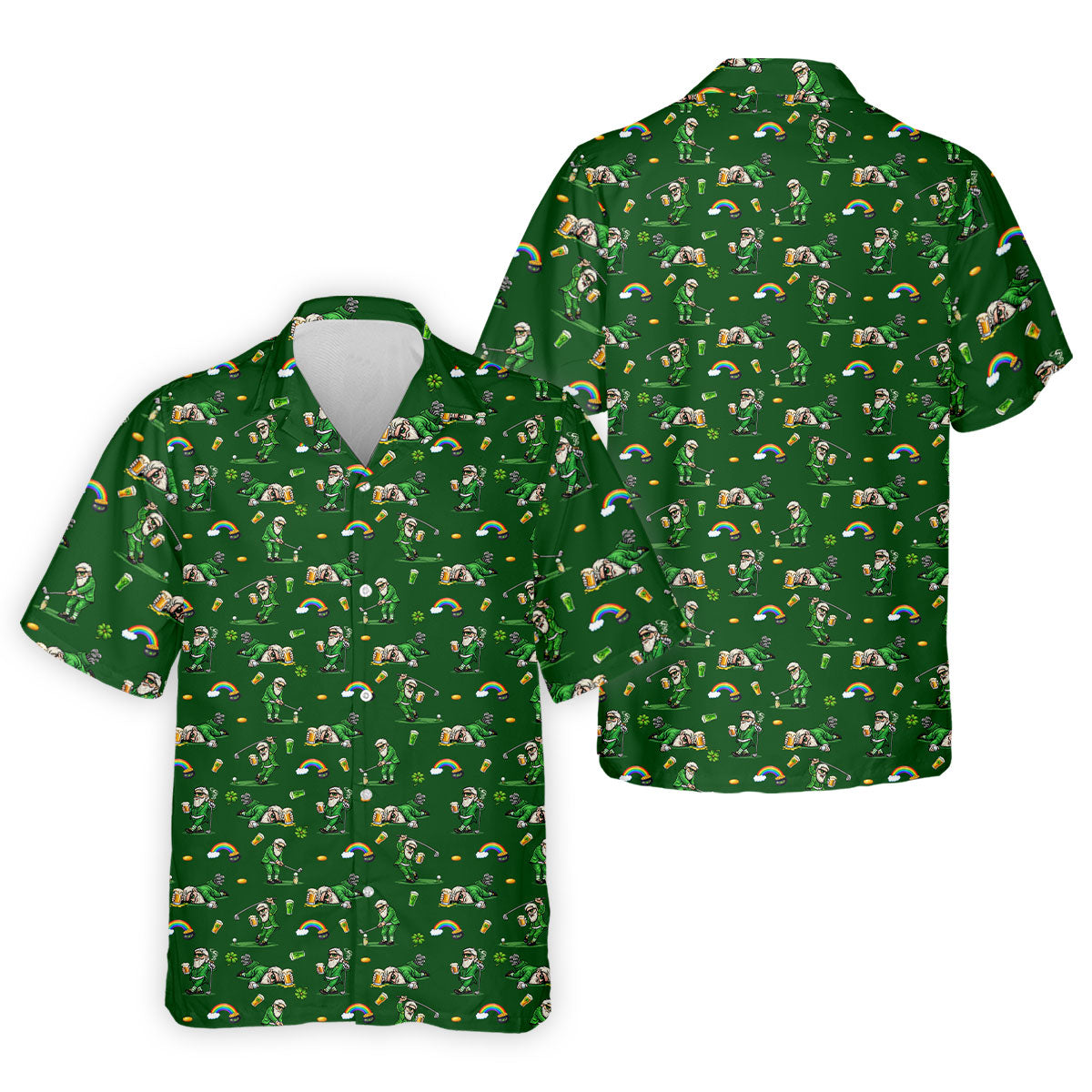 St Patrick's Day Leprechaun Character Golf And Beer Green Golf Shirt, Fun Golf Shirts For Men, Polo For Men