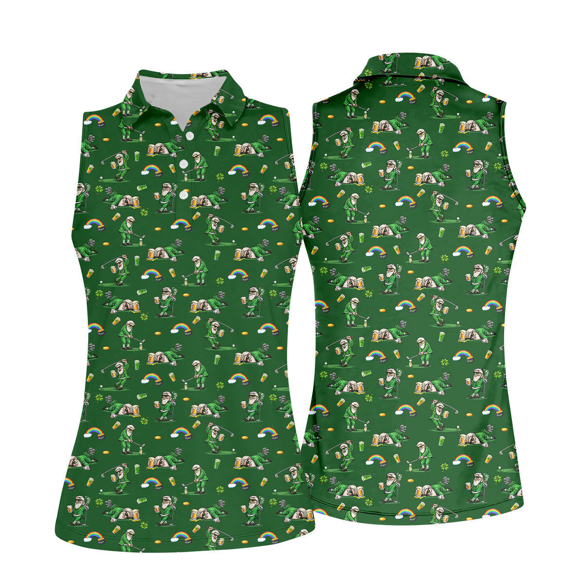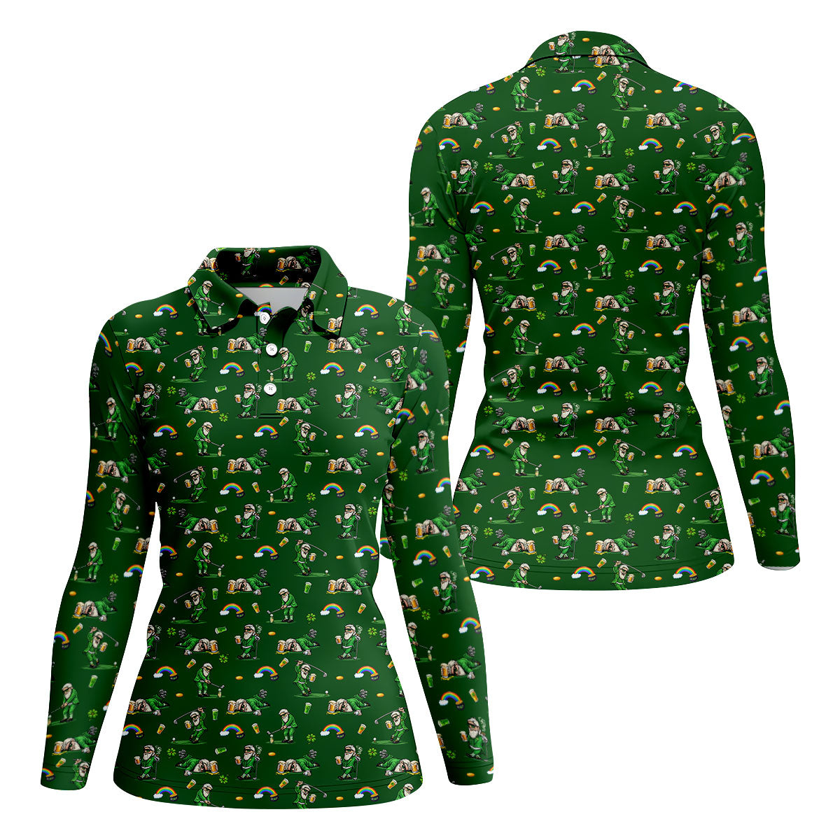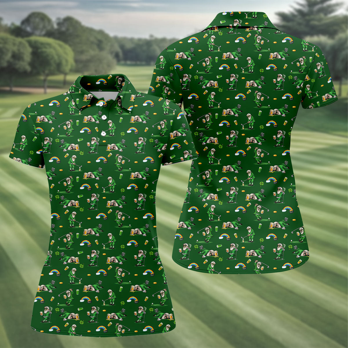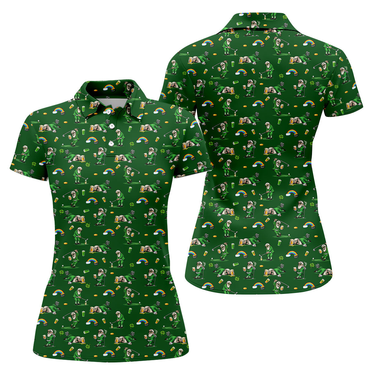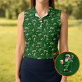 St Patrick's Day Leprechaun Character Golf And Beer Green Golf Shirt, Fun Women's Golf Shirts, Ladies Golf Polos