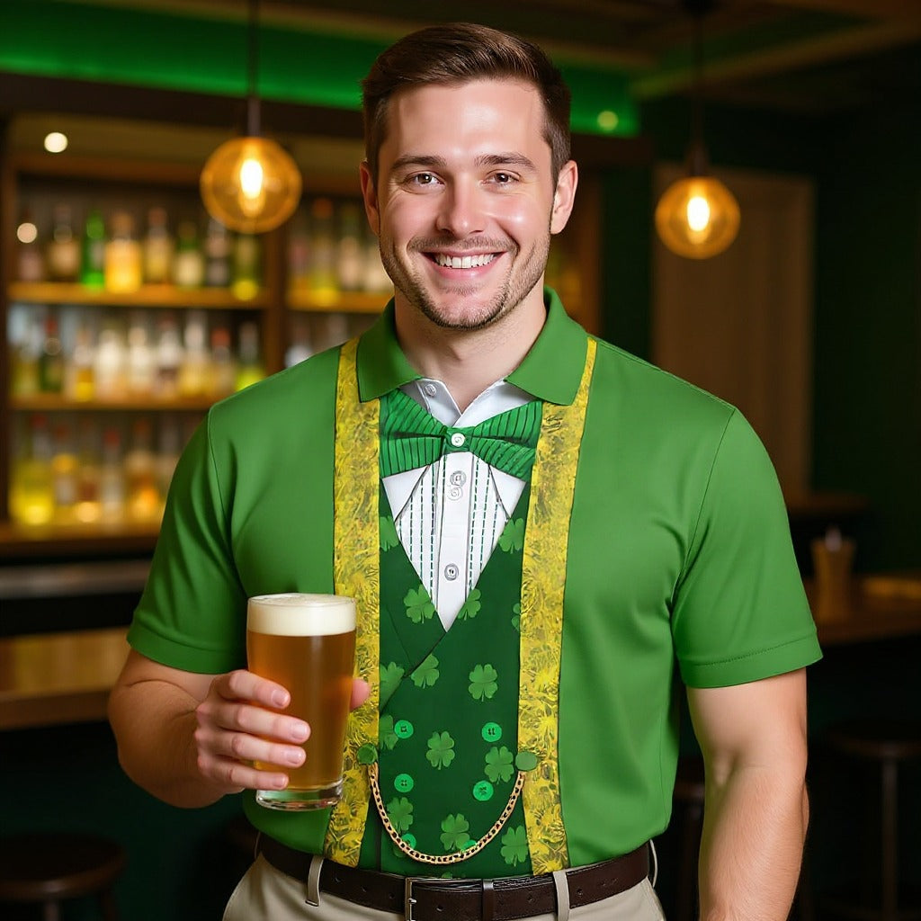 St Patrick's Day Leprechaun Costume Print Golf Tops For Men, Polo Shirts For Men, Golf Shirts For Men