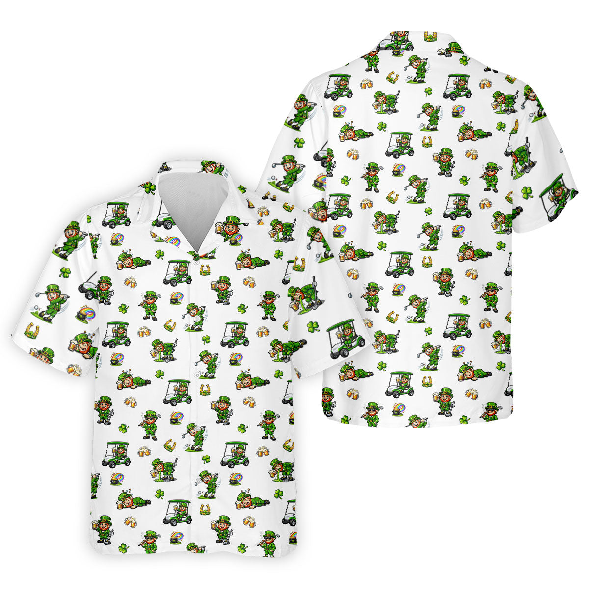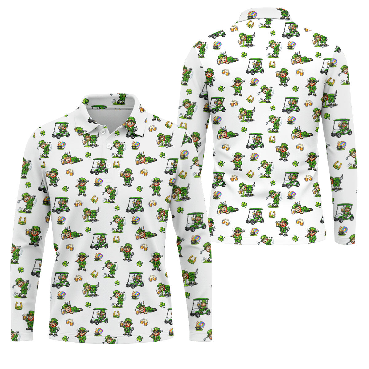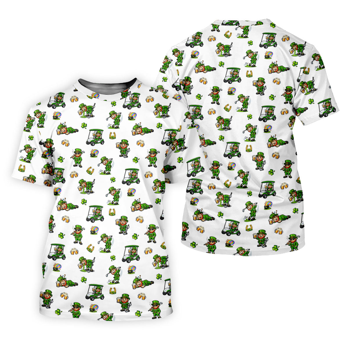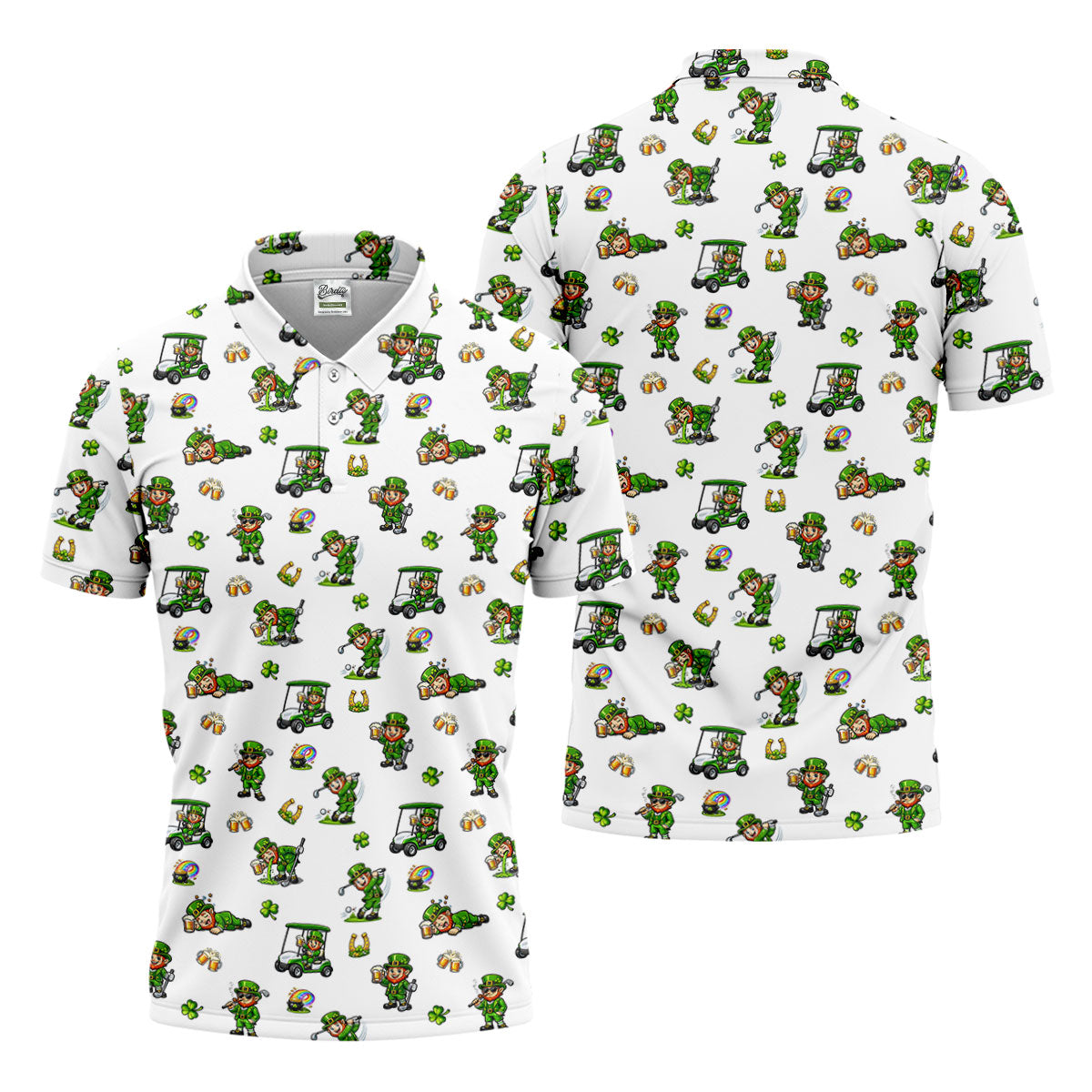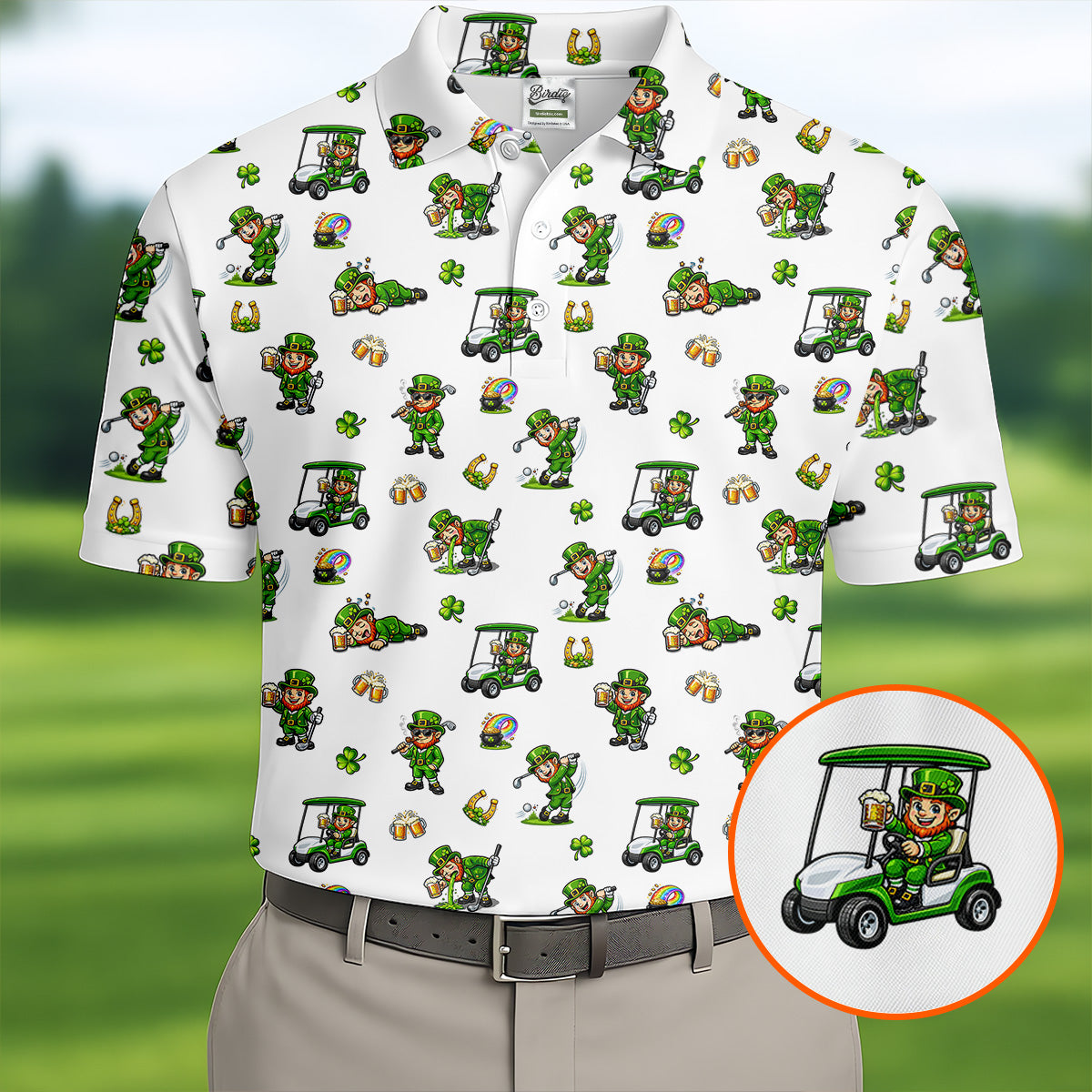 St Patrick's Day Leprechaun Golf And Beer Golf Pose Shamrock Golf Shirt, Golf Shirts For Men