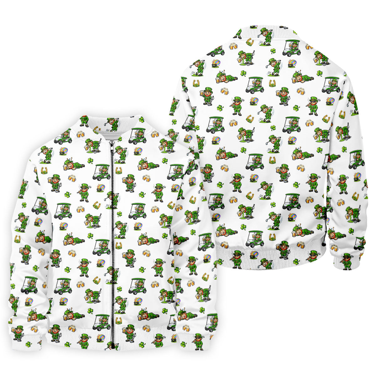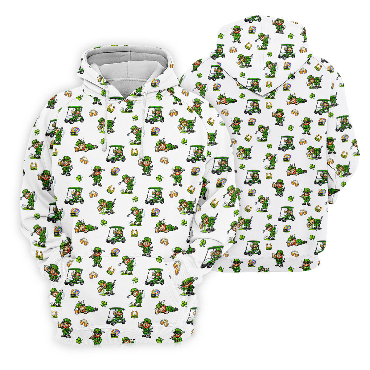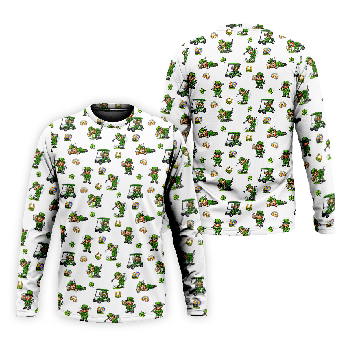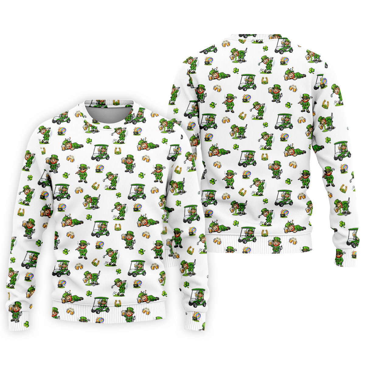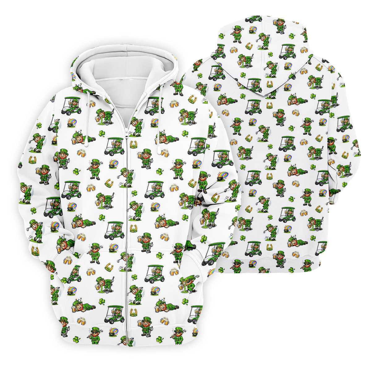 St Patrick's Day Leprechaun Golf And Beer Golf Pose Shamrock Golf Shirt, Golf Shirts For Men