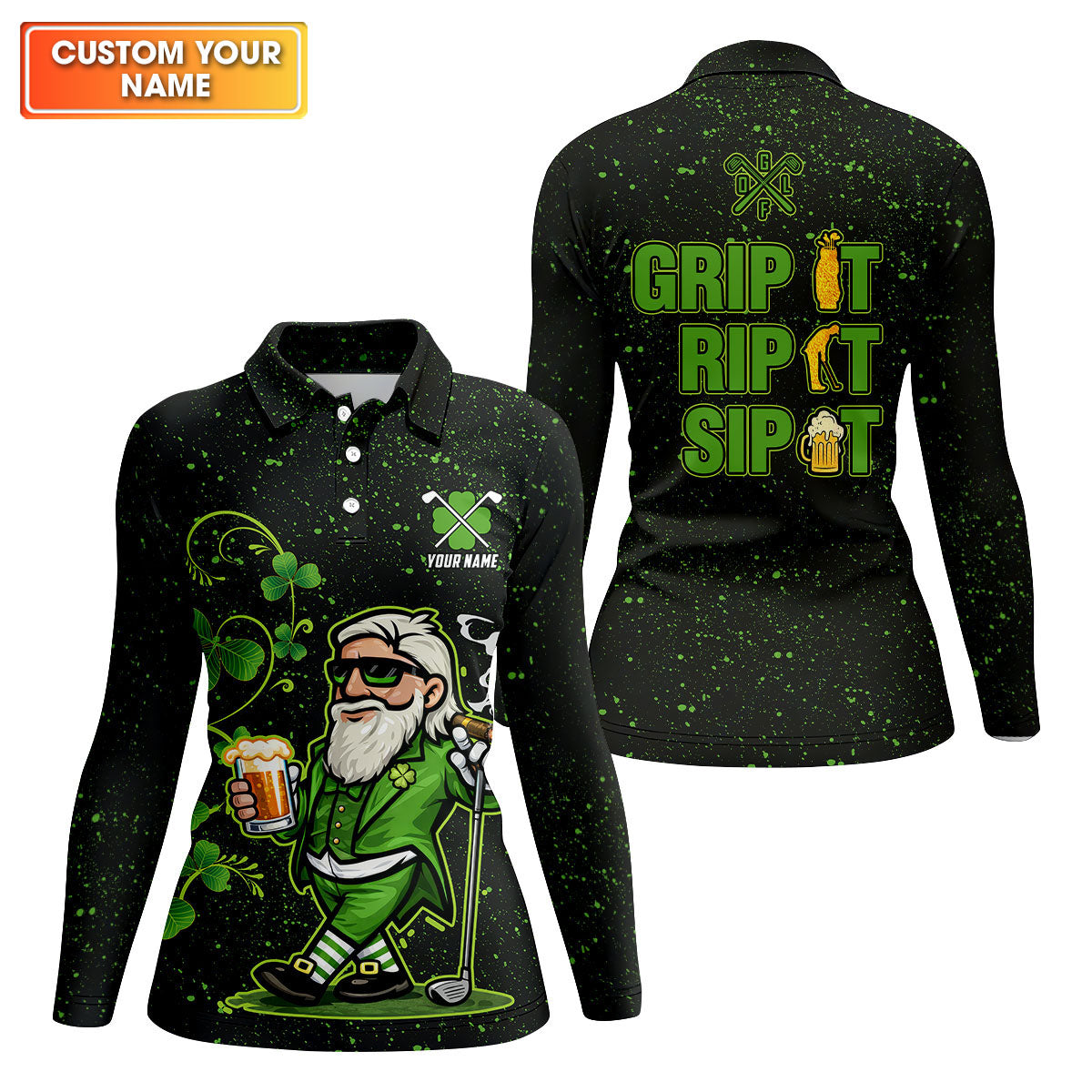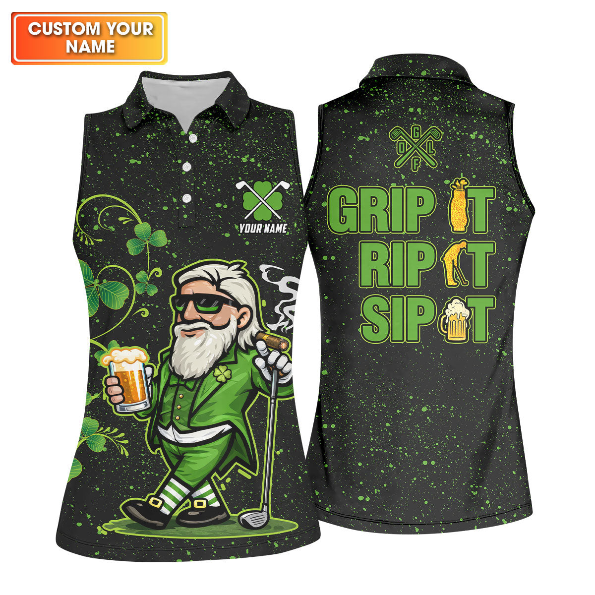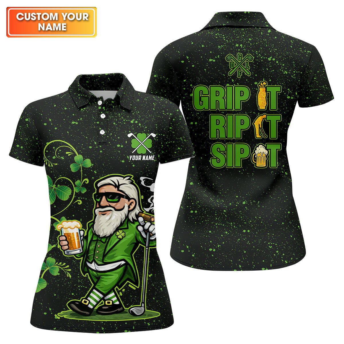 Grip It Rip It Sip It St Patrick's Day Leprechaun Golf And Beer Shamrock Golf Shirt, Golf Shirt For Women