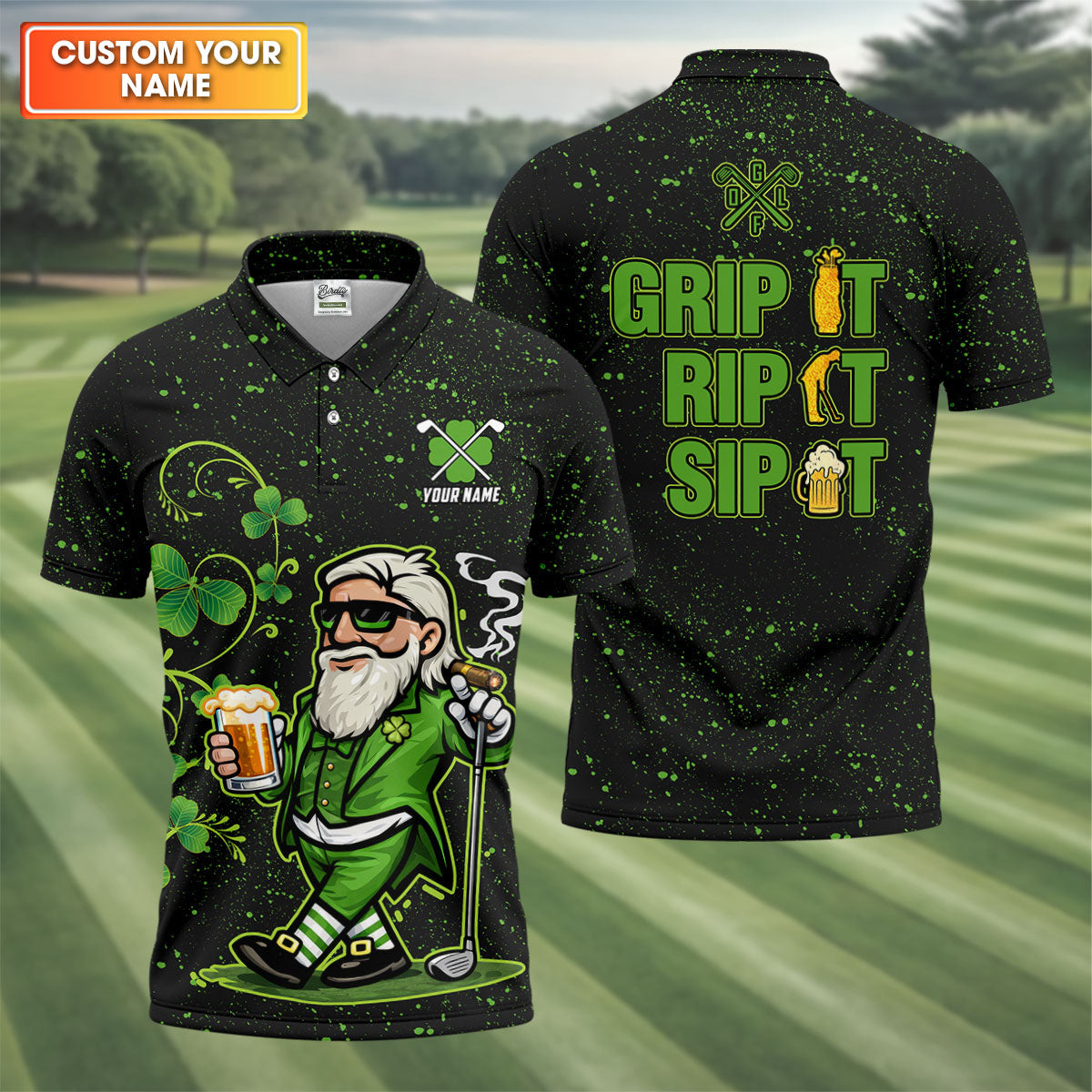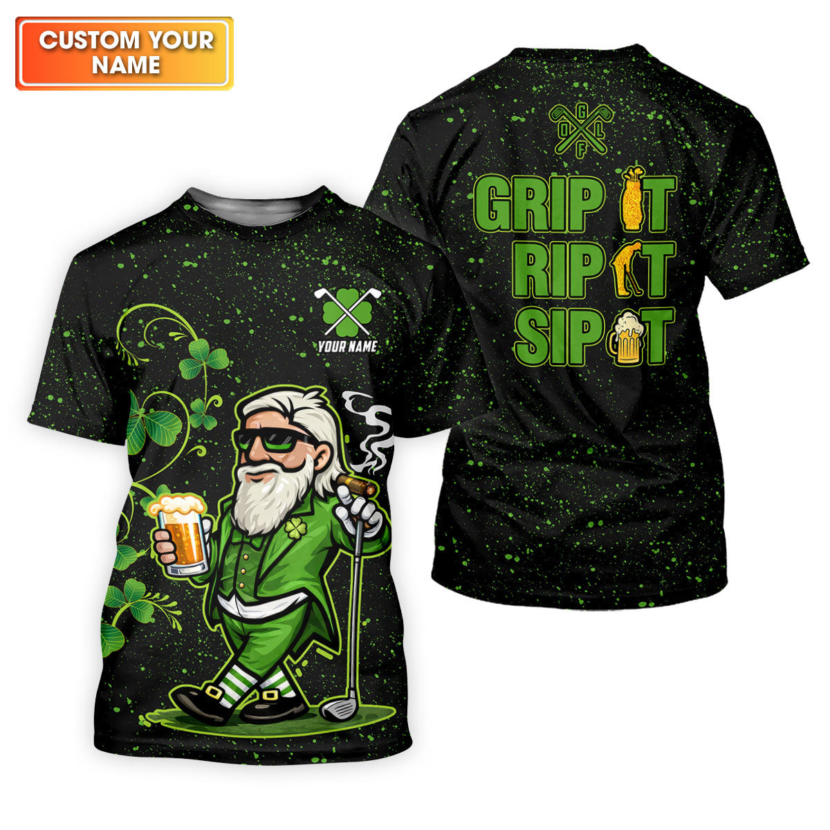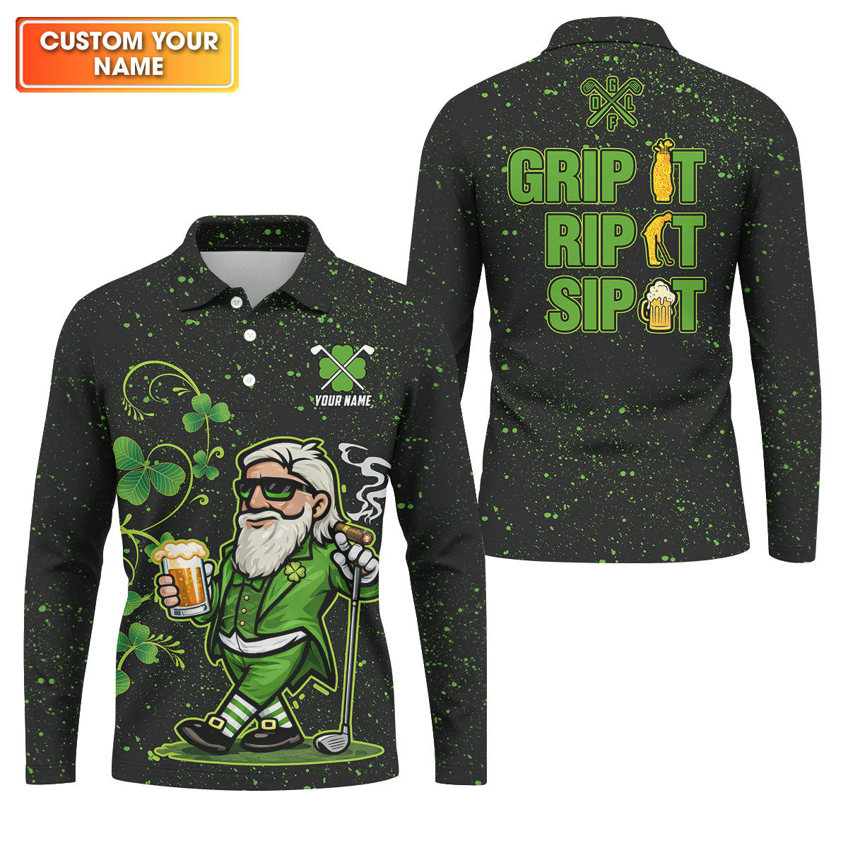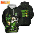 Grip It Rip It Sip It St Patrick's Day Leprechaun Golf And Beer Shamrock Golf Shirt, Golf Shirts For Men