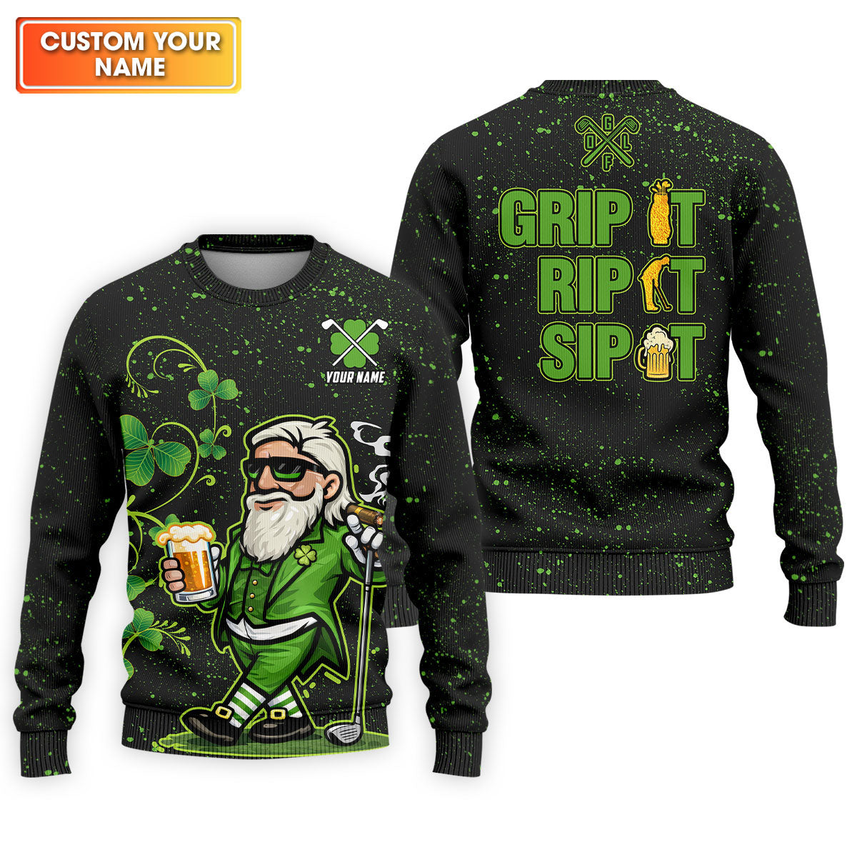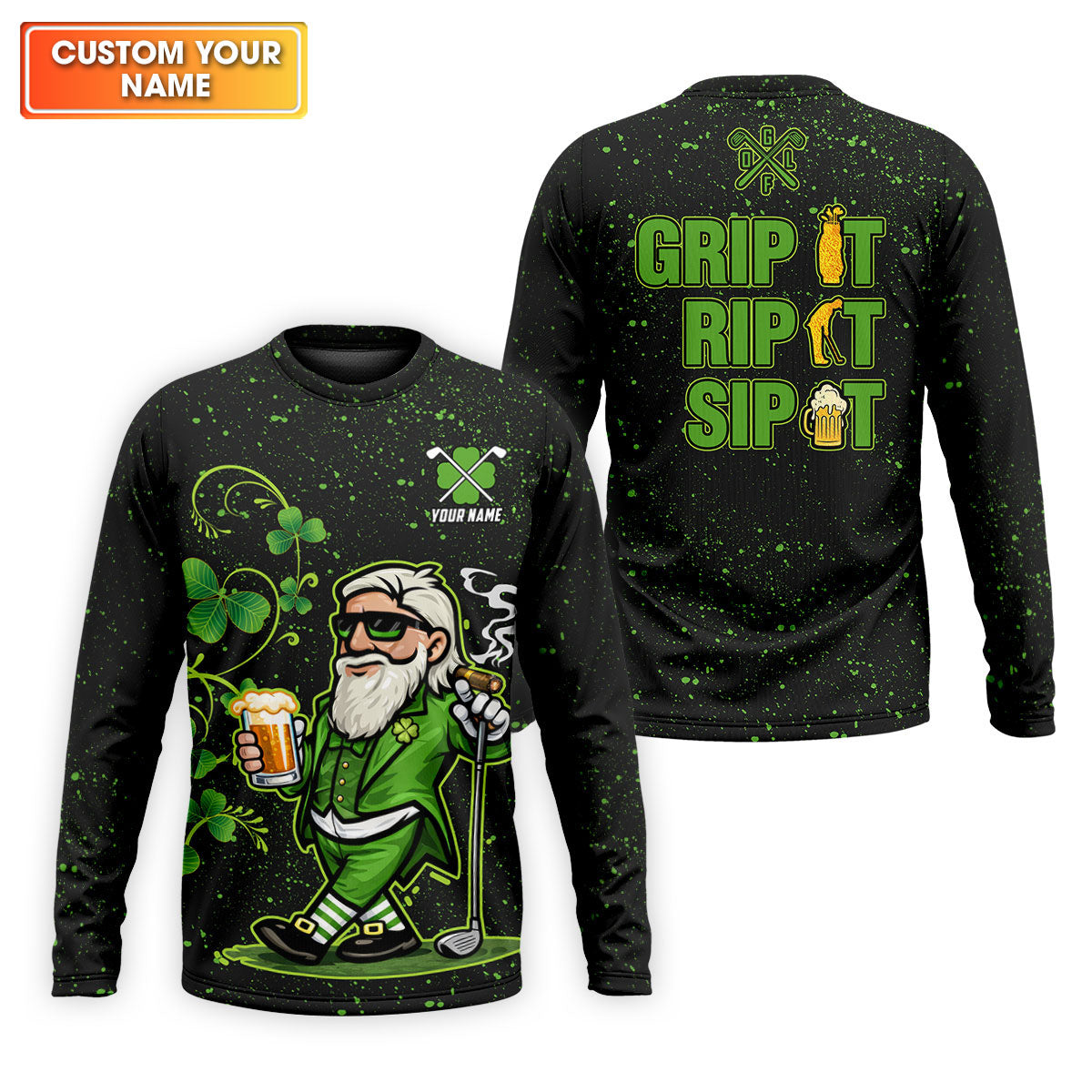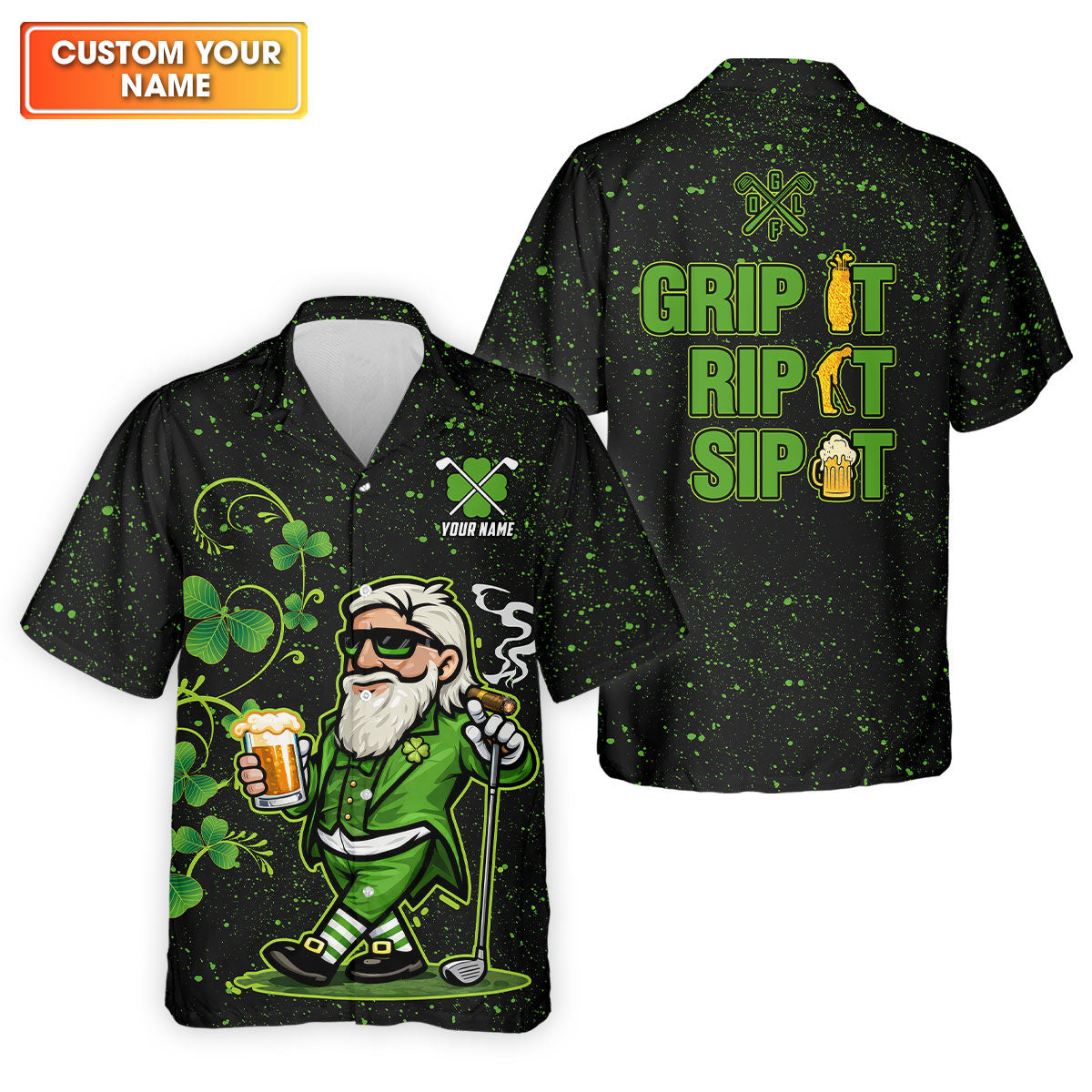 Grip It Rip It Sip It St Patrick's Day Leprechaun Golf And Beer Shamrock Golf Shirt, Golf Shirts For Men