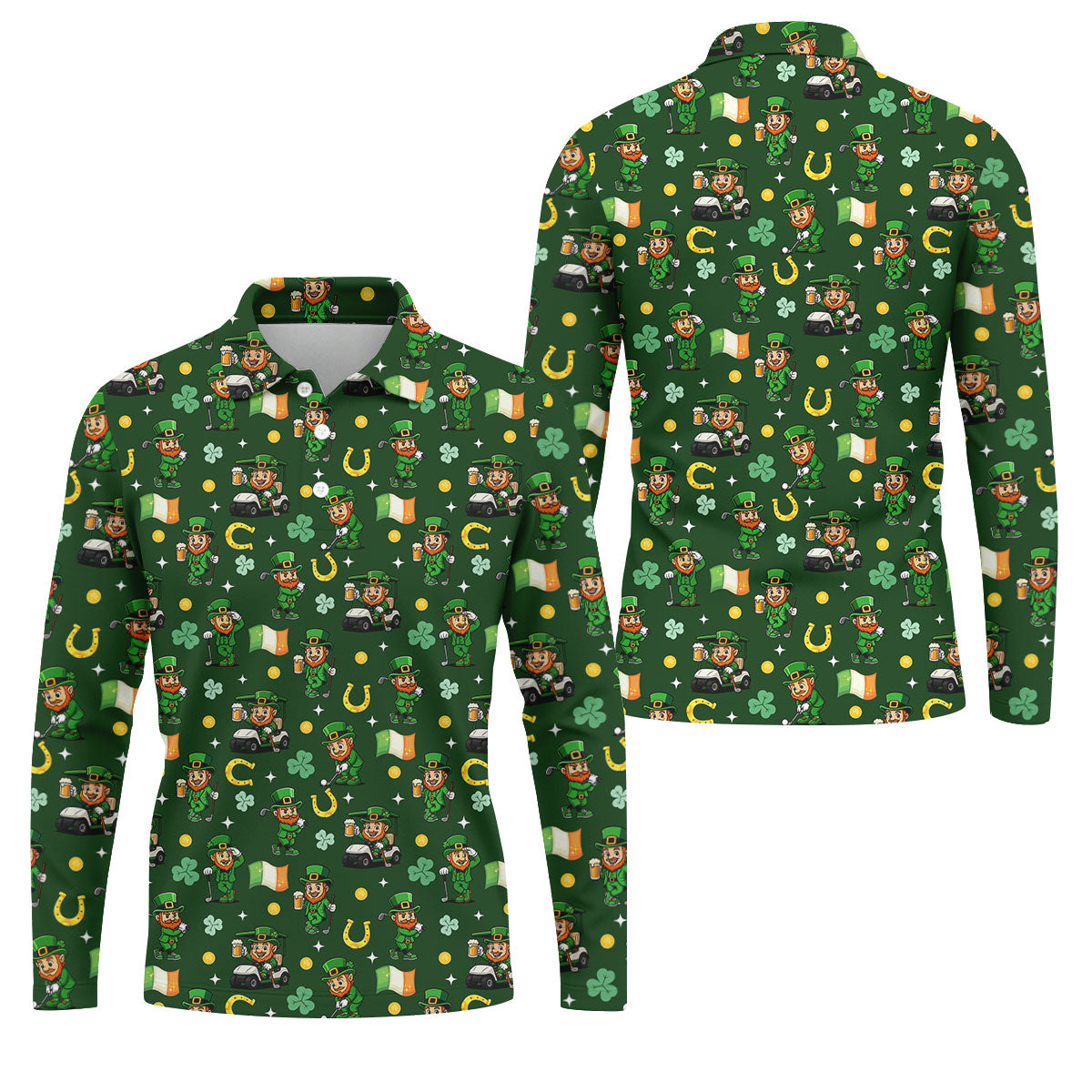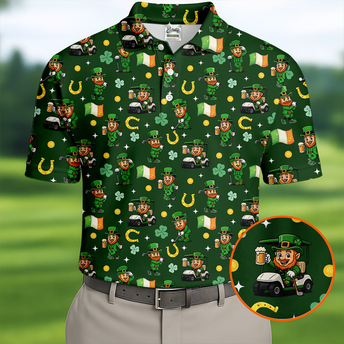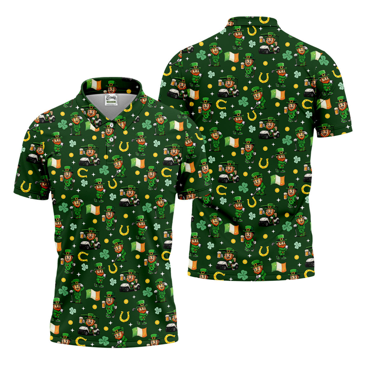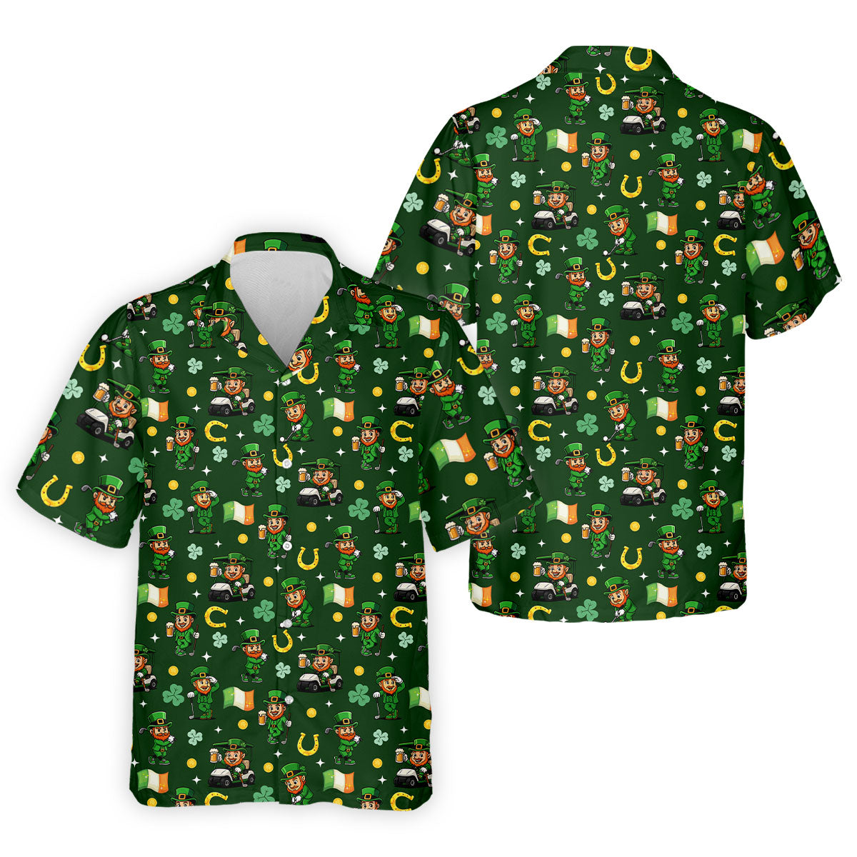 St Patrick's Day Leprechaun Golf Pose Irish Flags Shamrock Golf Shirt, Golf Tops For Men, Golf Shirts For Men