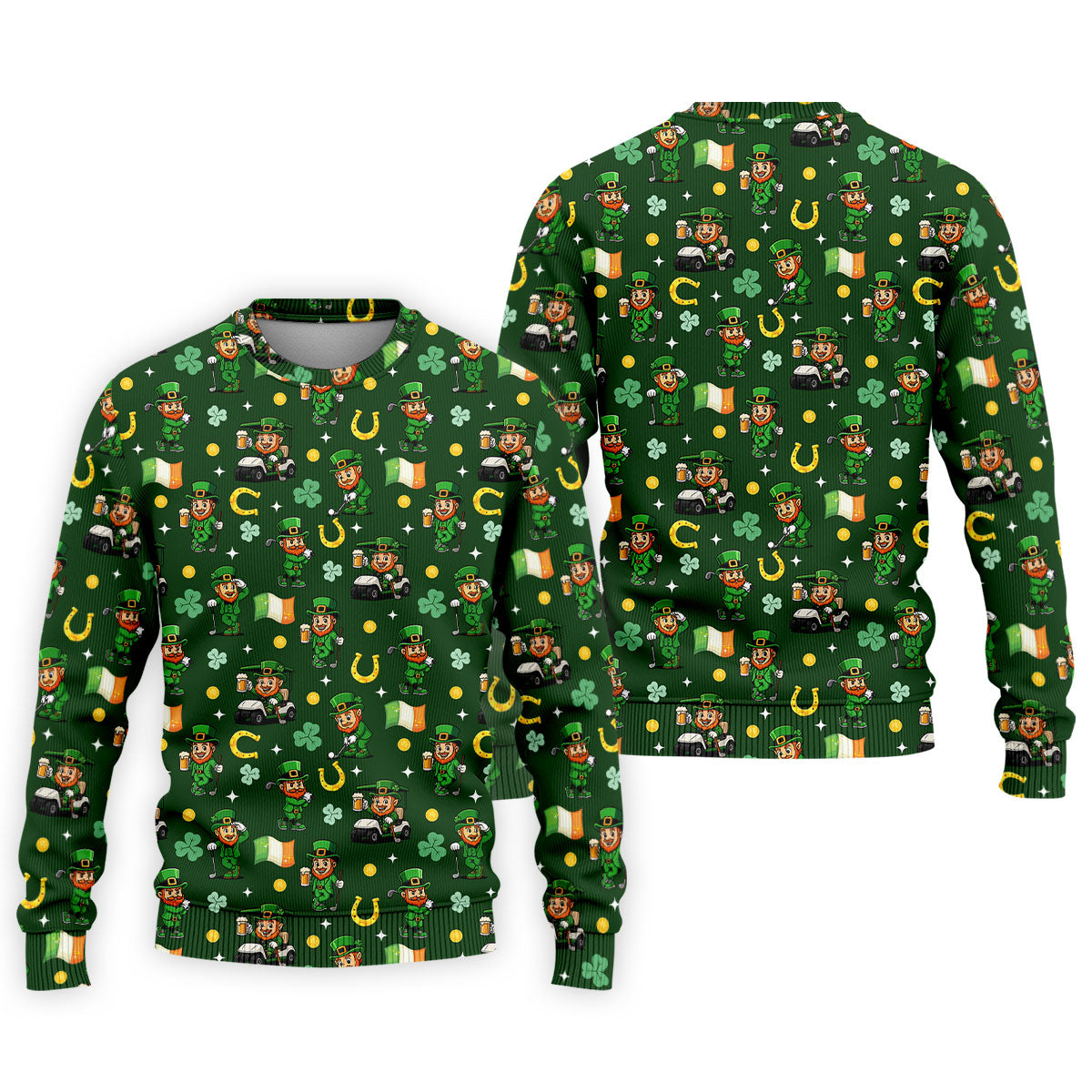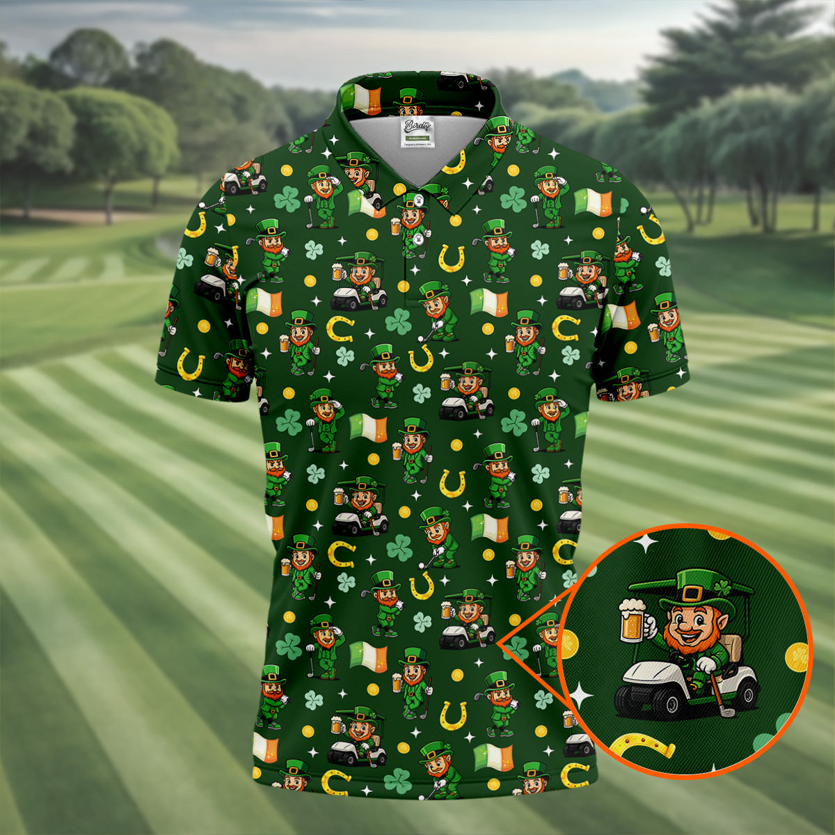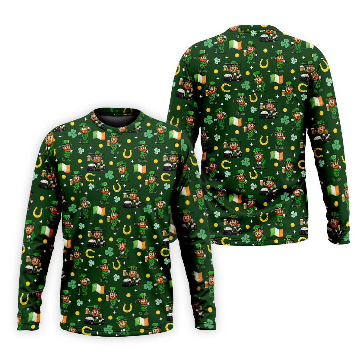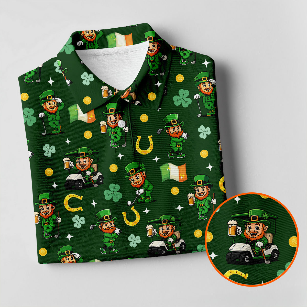 St Patrick's Day Leprechaun Golf Pose Irish Flags Shamrock Golf Shirt, Golf Tops For Men, Golf Shirts For Men