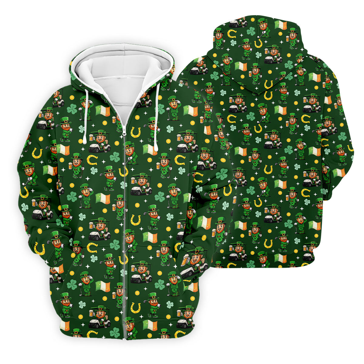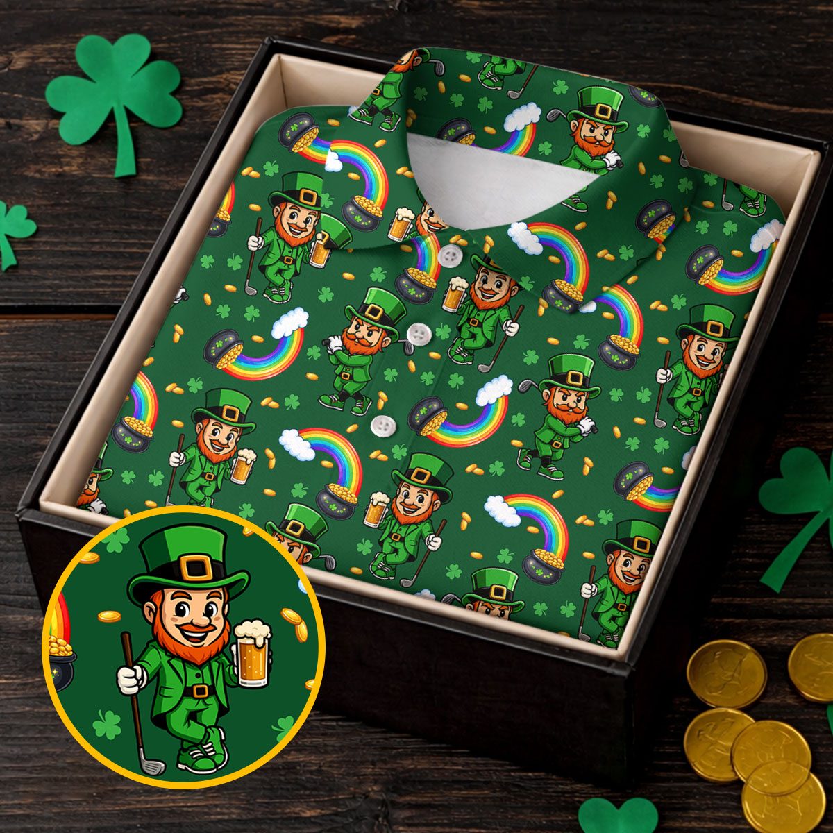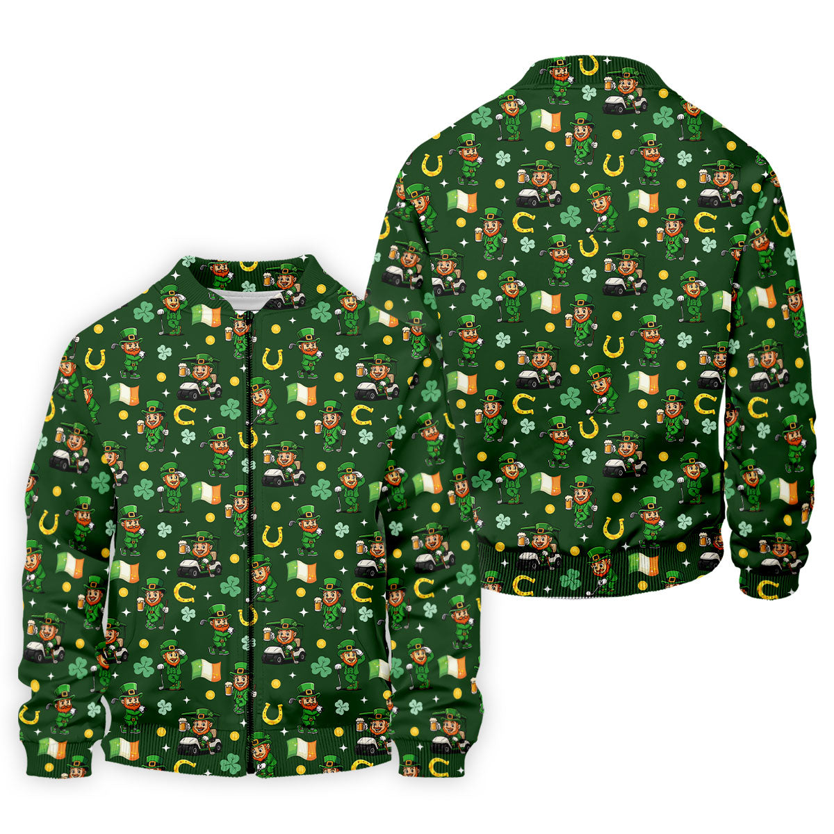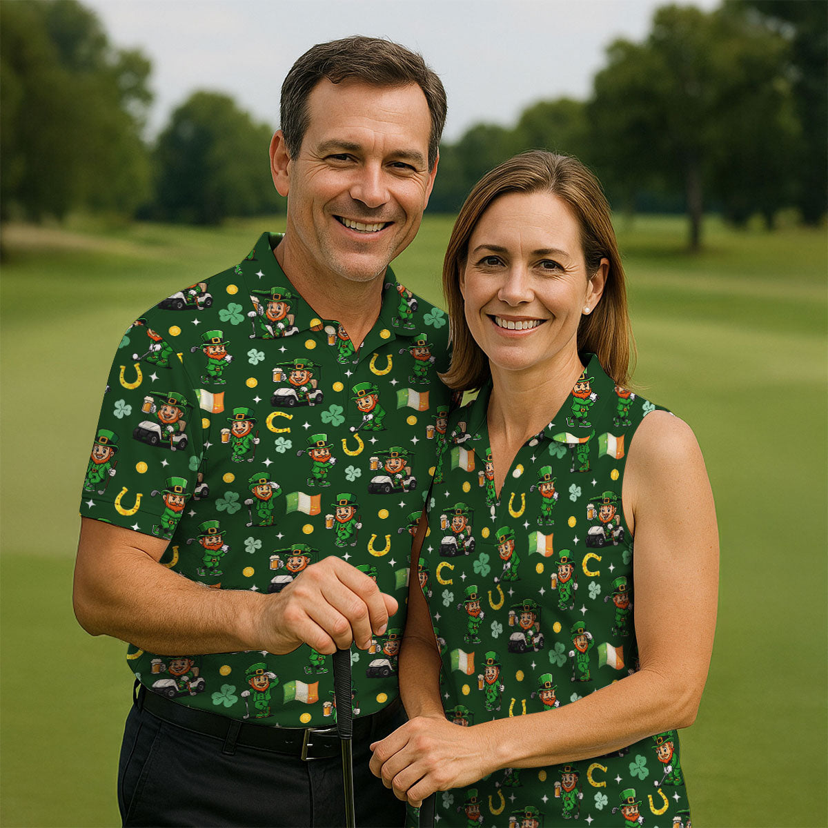 St Patrick's Day Leprechaun Golf Pose Irish Flags Shamrock Golf Shirt, Golf Tops For Men, Golf Shirts For Men