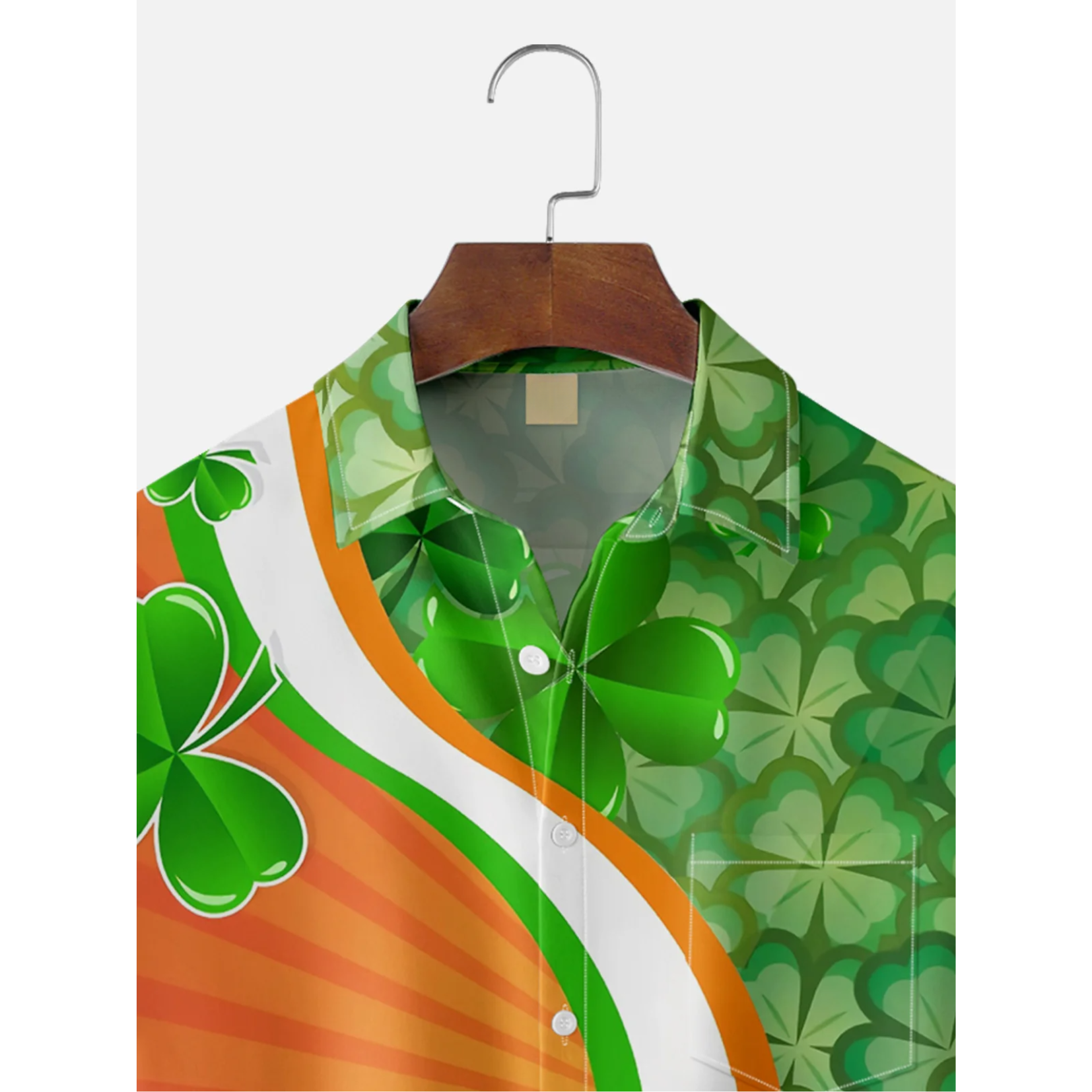 St. Patrick's Day Lucky Four Leaf Clover Orange And Green Hawaiian Golf Shirt, Tropical Vibe Men's Golf Shirt