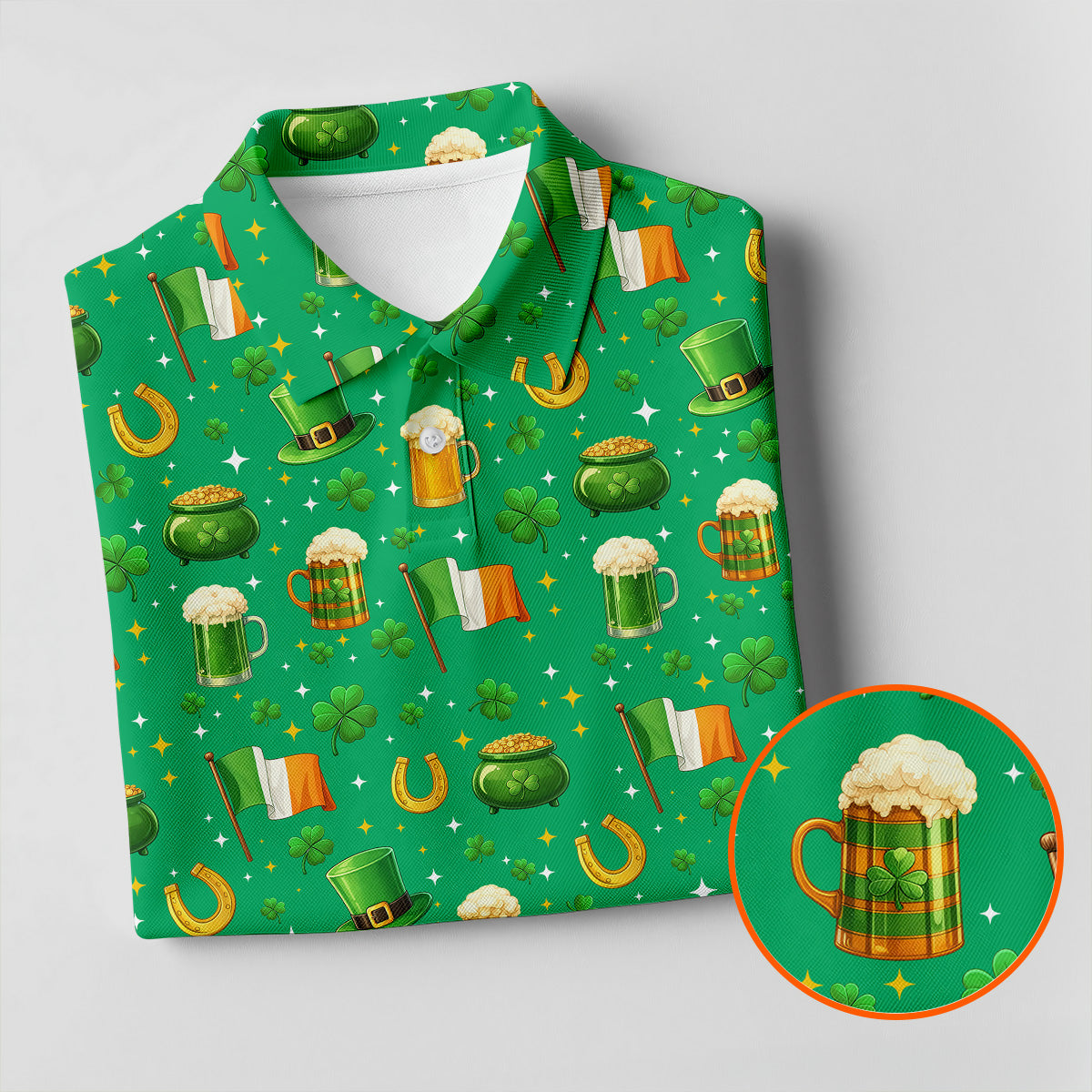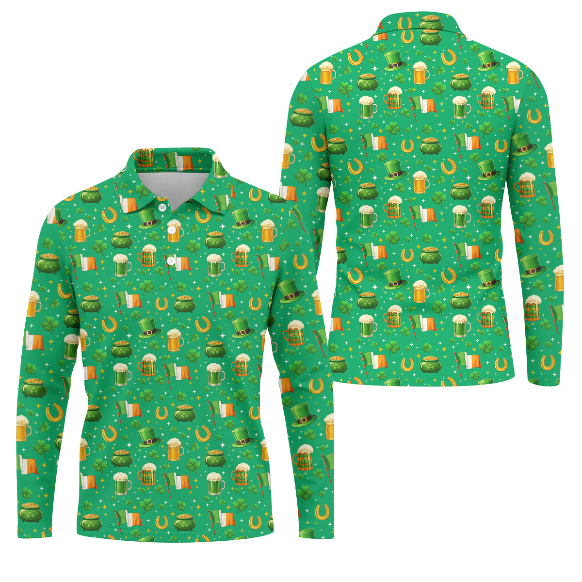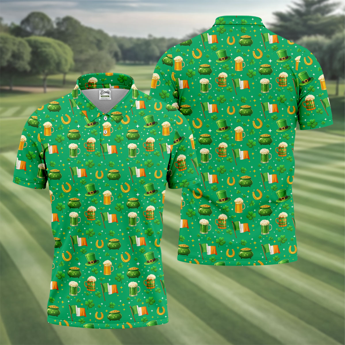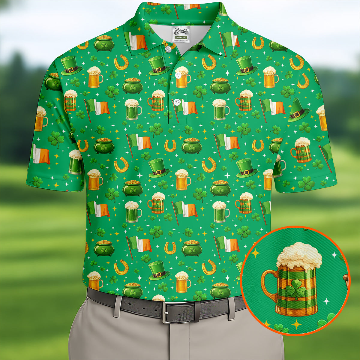 St Patrick's Day Pot Of Gold Leprechaun Hats Irish Flag Golf Tops For Men, Golf Gift For Men, Golf Shirts For Men