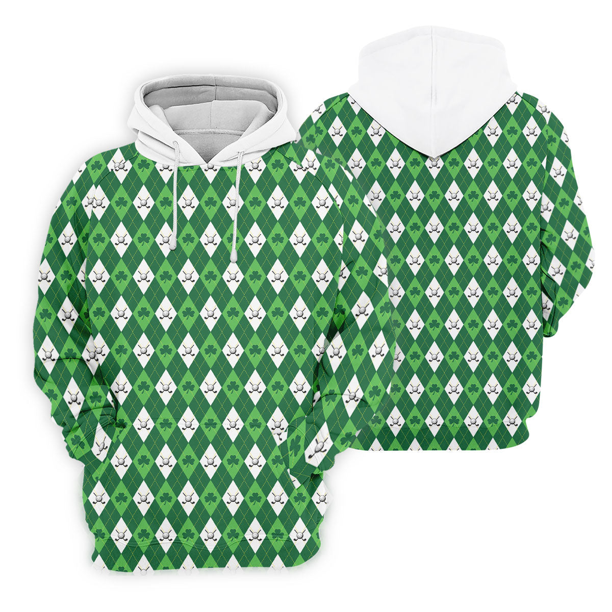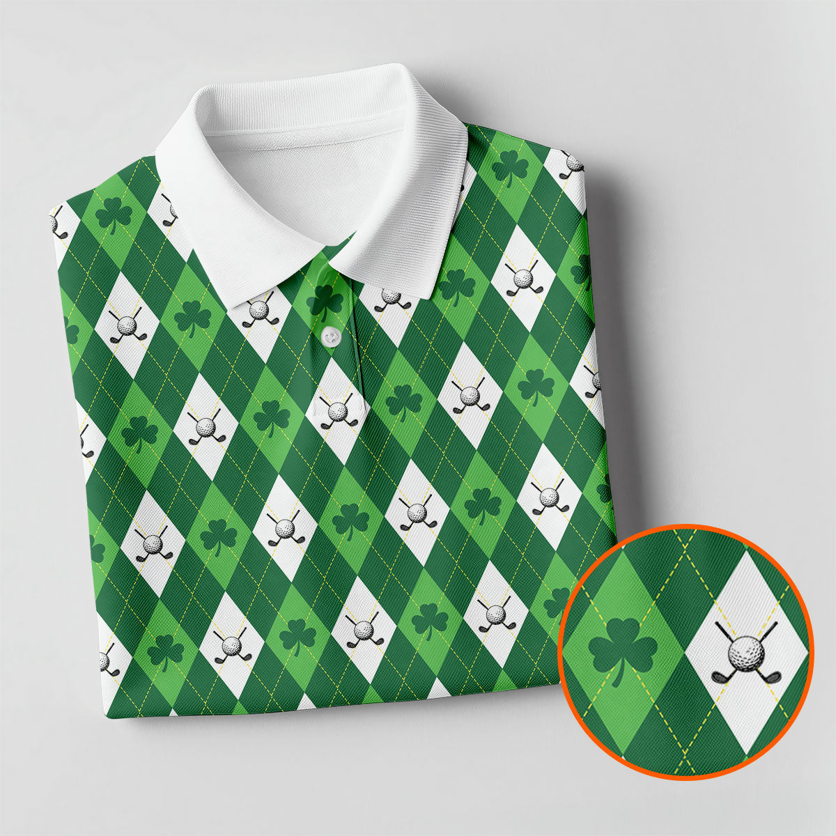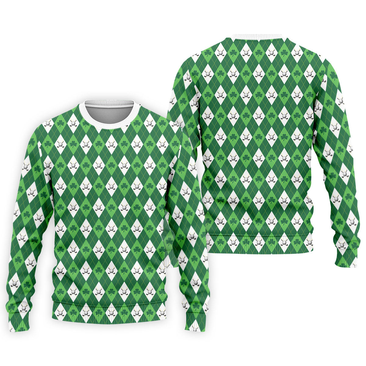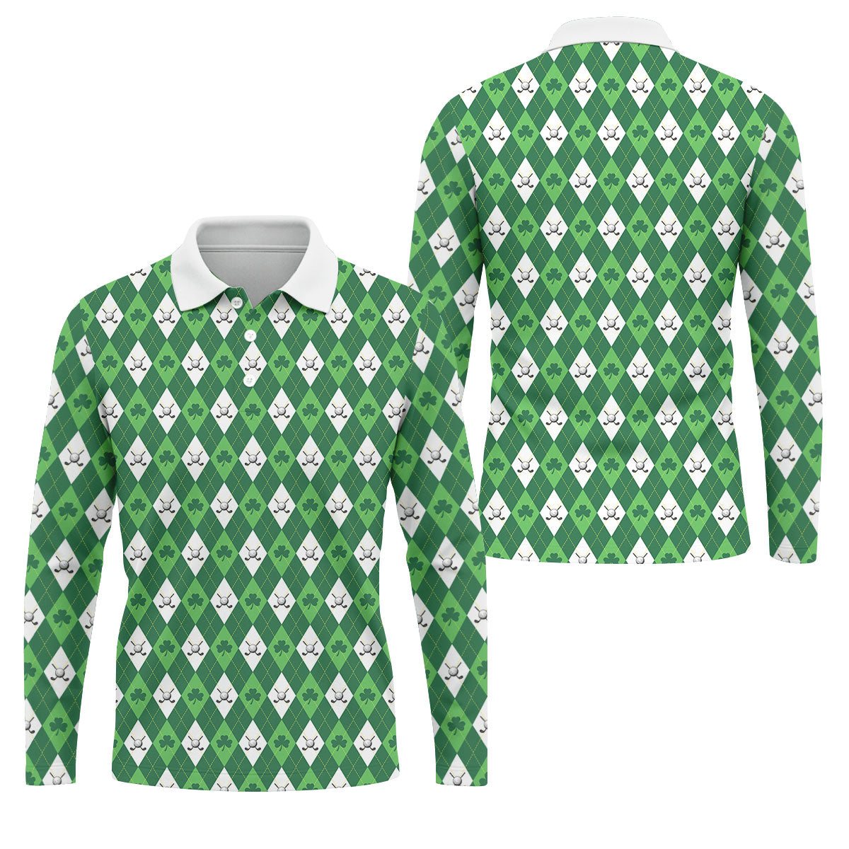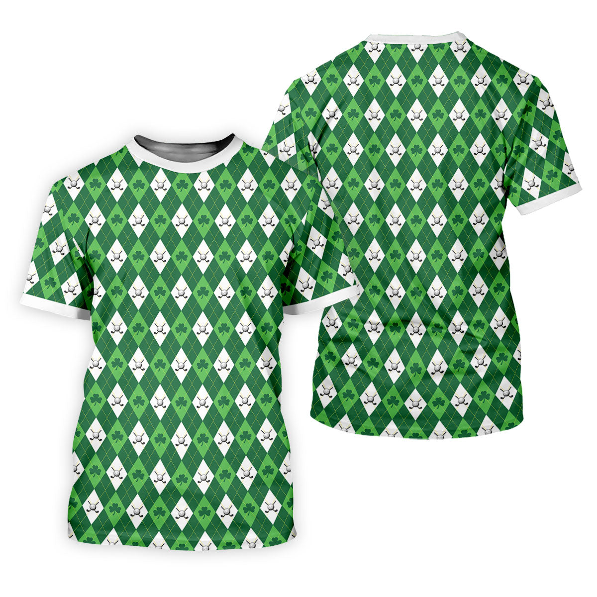 St Patrick's Day Shamrock Argyle Pattern Green And White Argyle Golf Shirt, Polo Shirts For Men, Golf Shirts For Men