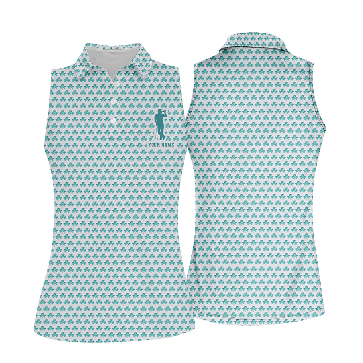 St Patrick's Day Shamrock Golf And Beer Blue And White Golf Shirt, Women's Golf Tops, Ladies Golf Polos