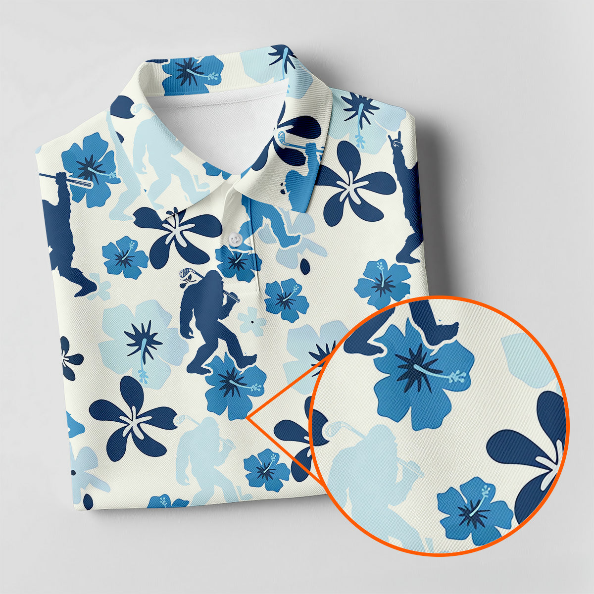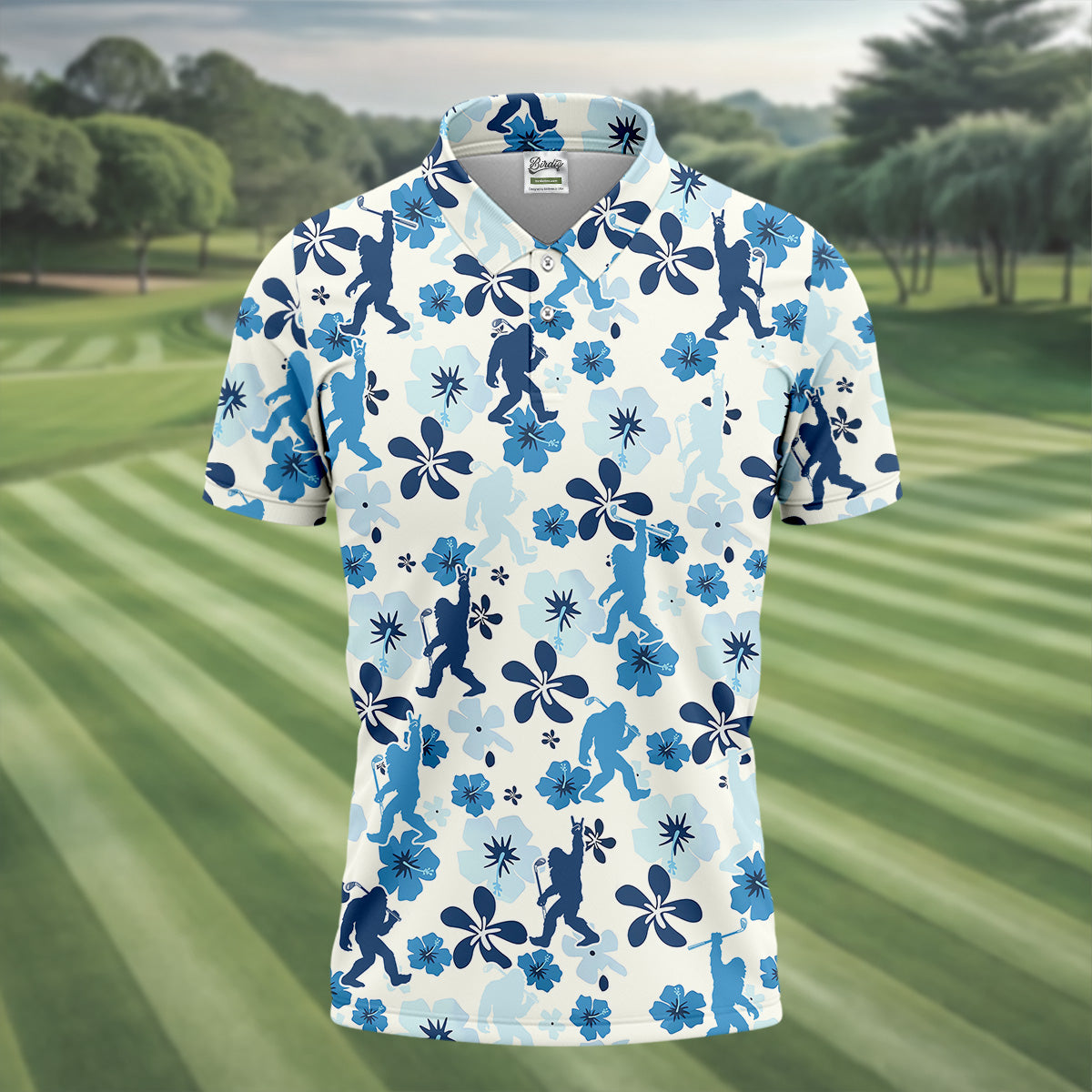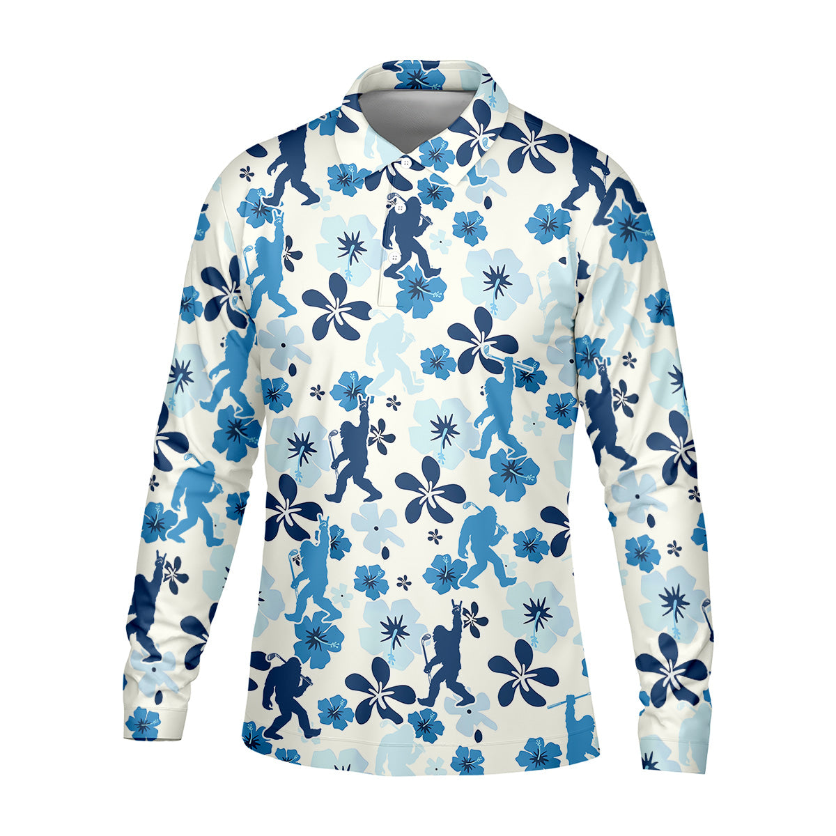 Bigfoot Golf Shirt, Mens Floral Shirt, Hawaiian Golf Shirts, Long Sleeve Polo