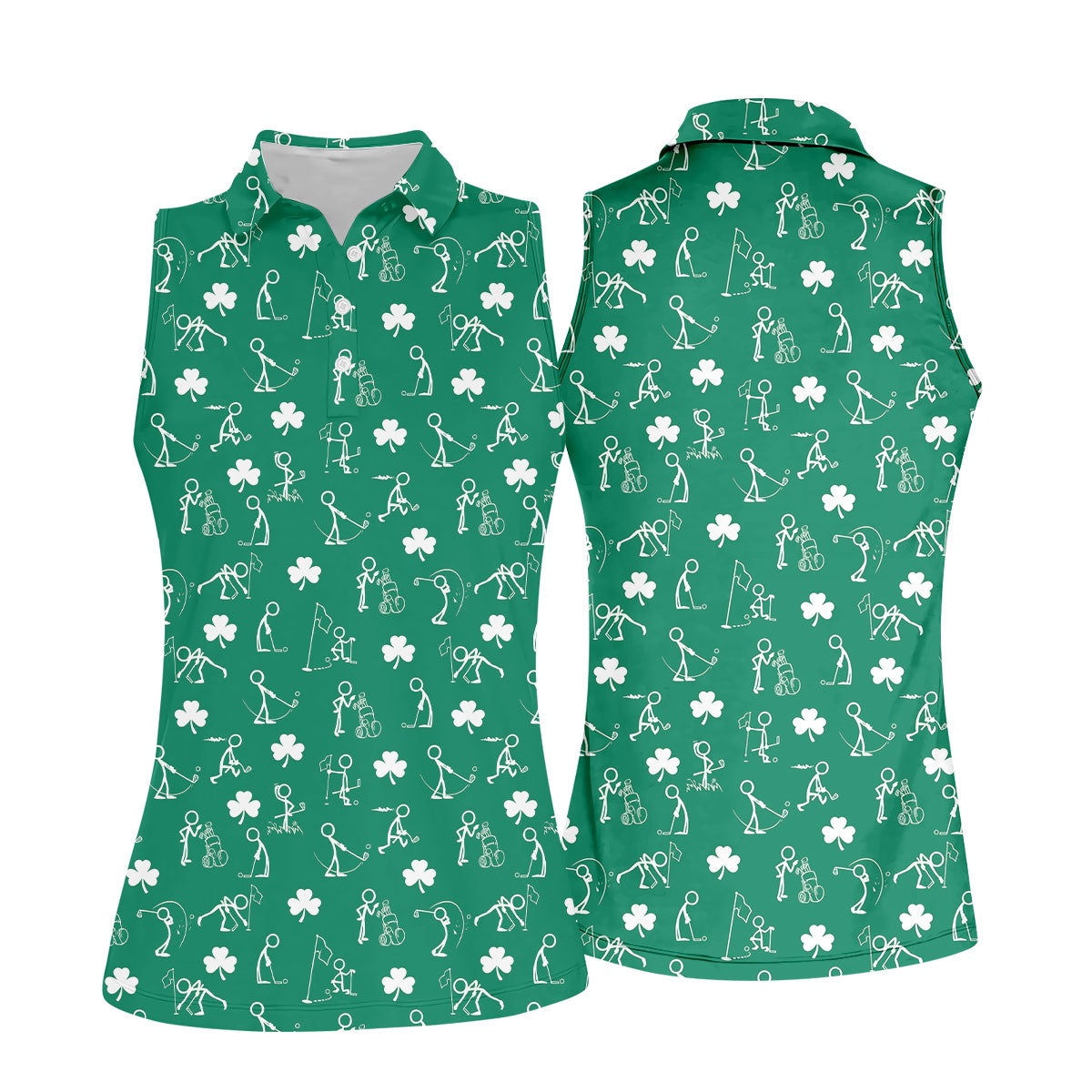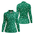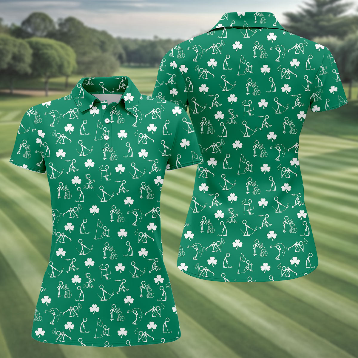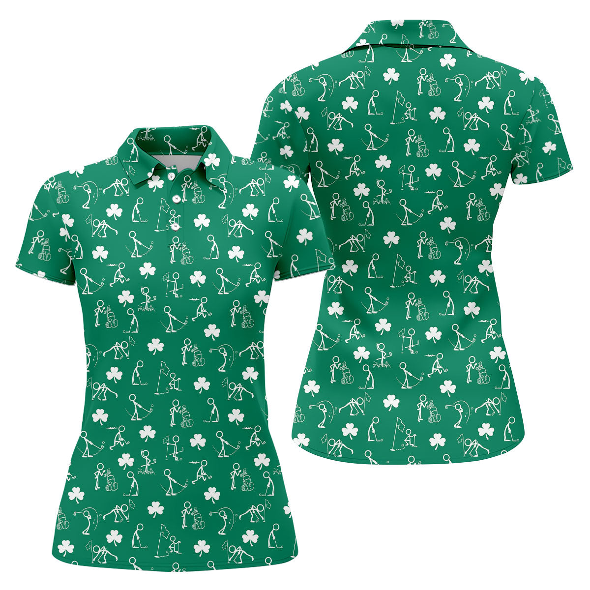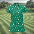 Stick Figure Golf Pose St Patrick's Day Shamrock Green Golf Shirt, Women's Golf Tops, Ladies Golf Polos