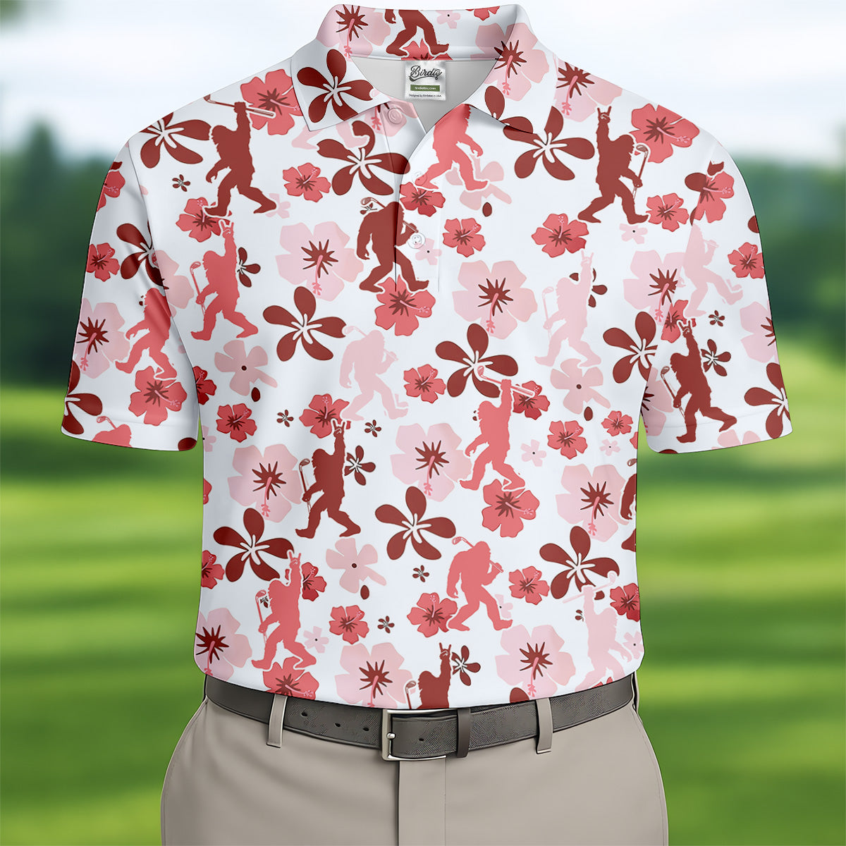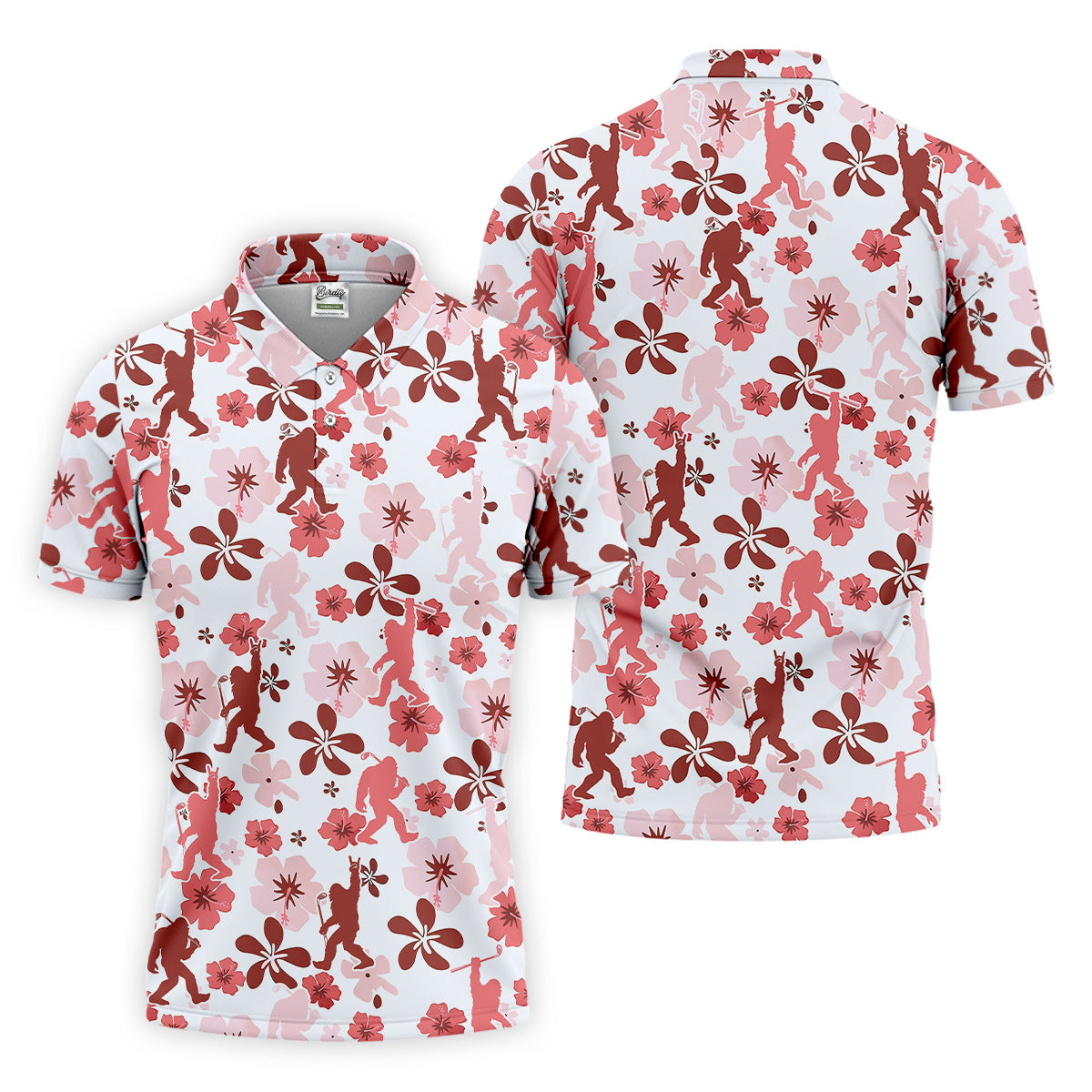 Sasquatch Golf Shirt, Mens Floral Shirt, Hawaiian Golf Shirts, Long Sleeve Polo