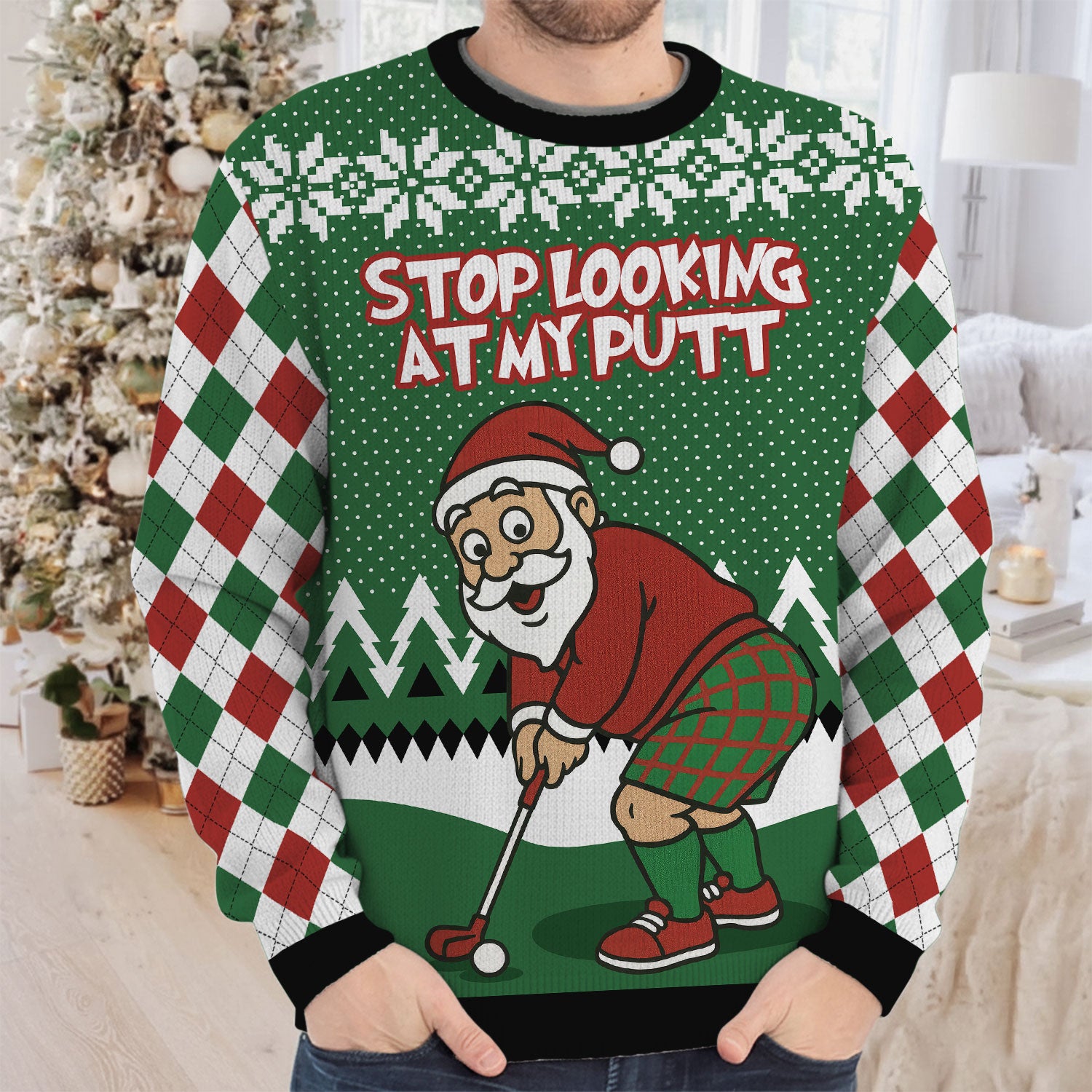 Stop Looking At My Putt Funny Santa Christmas Ugly Sweater, Golf Ugly Christmas Sweater, Christmas Golf Shirt