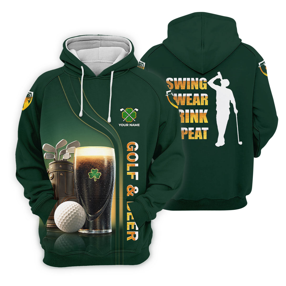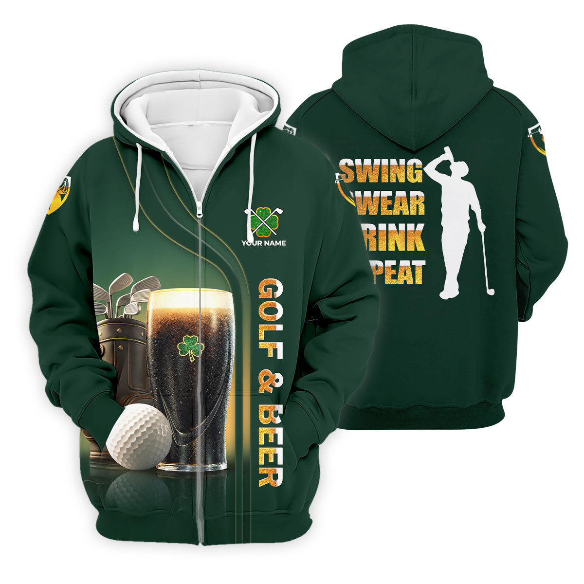 Swing Swear Drink Repeat Golf And Beer St Patrick's Day Green Golf Tops For Men, Golf Shirts For Men