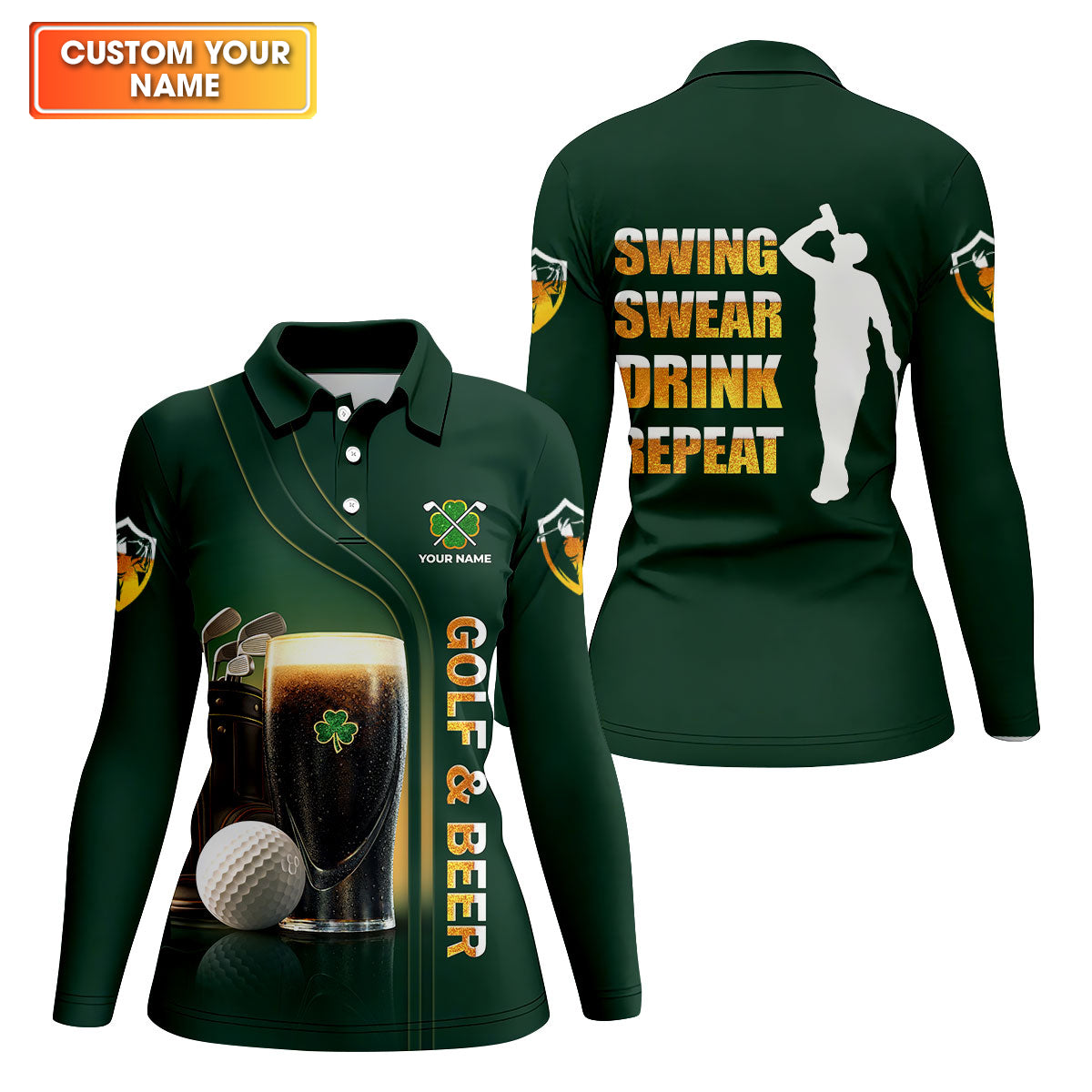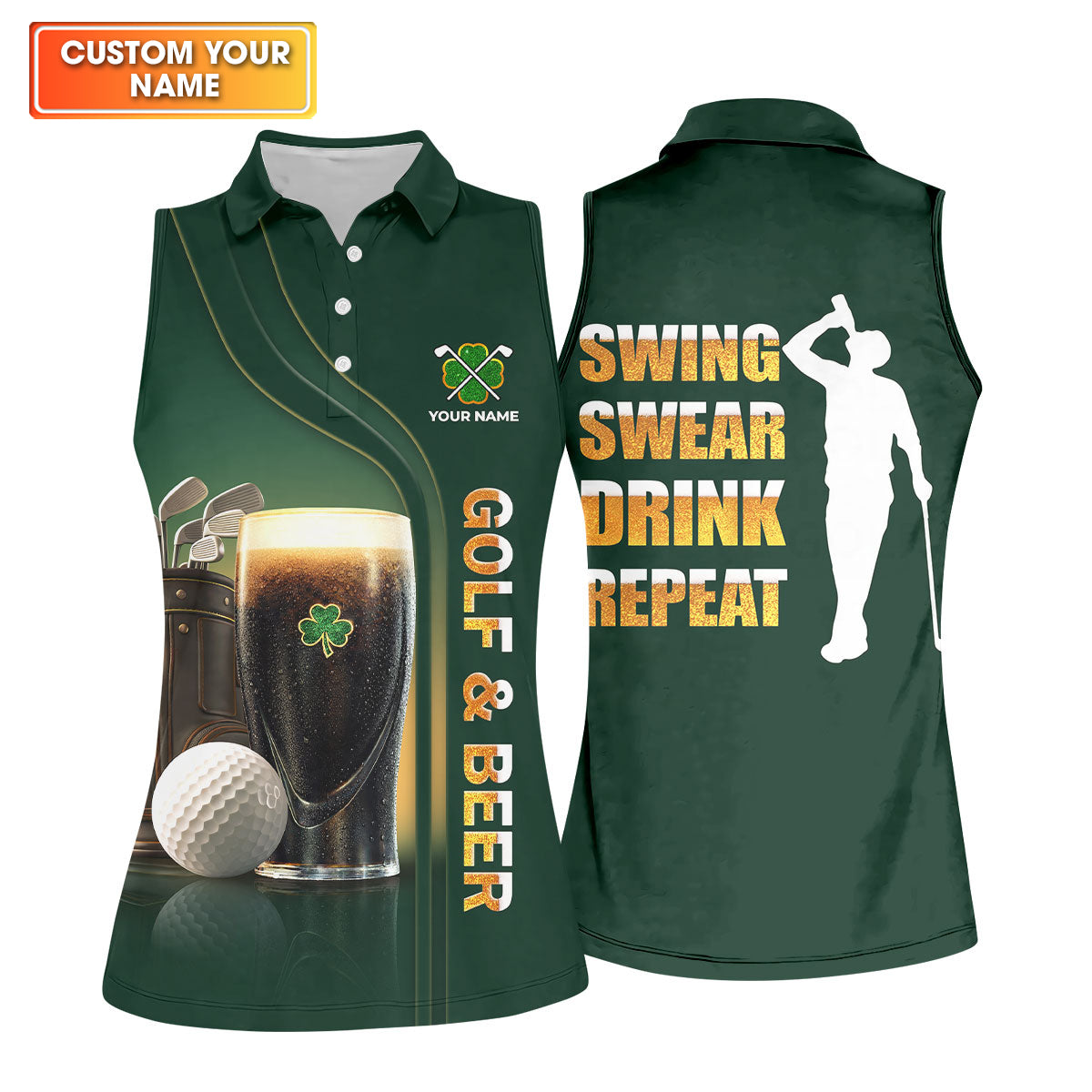 Swing Swear Drink Repeat Golf And Beer St Patrick's Day Green Women's Golf Tops, Ladies Golf Polos