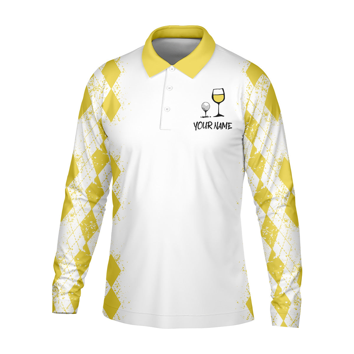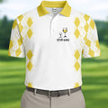 Meet the Swing Swear Drink Repeat Lemon Yellow Argyle Golf Shirt, Fun Golf Shirts For Men, Men's White Polo – a shirt so bold it makes argyle cry in the corner. Designed for golfers who'd rather make a fashion statement than follow dress codes, this polo is your ticket to turning heads, raising eyebrows, and maybe distracting your buddies just enough to win a few holes. (We’re not saying it’s cheating... we’re saying it’s strategy.)