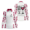 Meet the Swing Swear Drink Repeat Pink Argyle Golf Shirt, Fun Womens Golf Shirts, White Polo Women, Ladies Golf Shirts – a shirt so bold it makes argyle cry in the corner. Designed for golfers who'd rather make a fashion statement than follow dress codes, this polo is your ticket to turning heads, raising eyebrows, and maybe distracting your buddies just enough to win a few holes. (We’re not saying it’s cheating... we’re saying it’s strategy.)