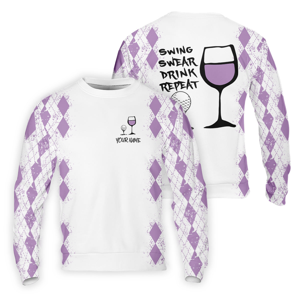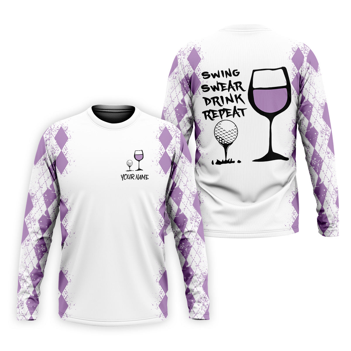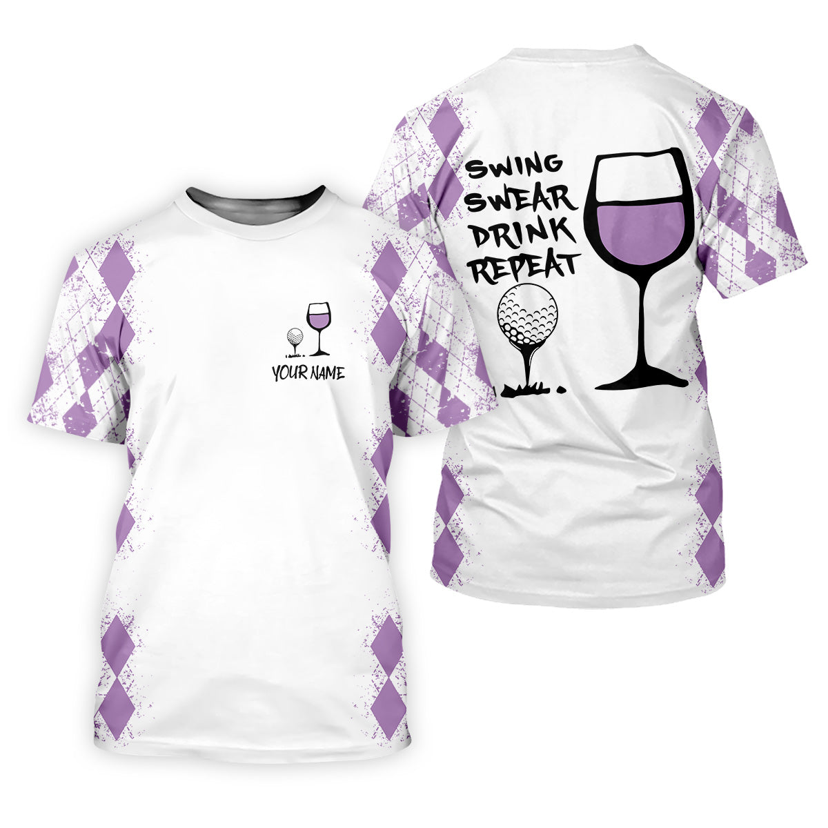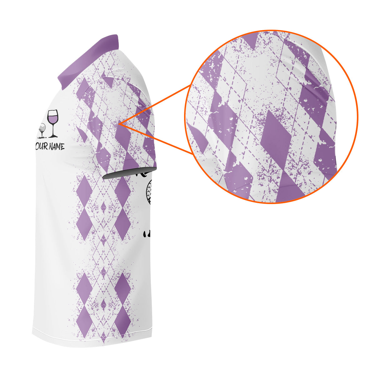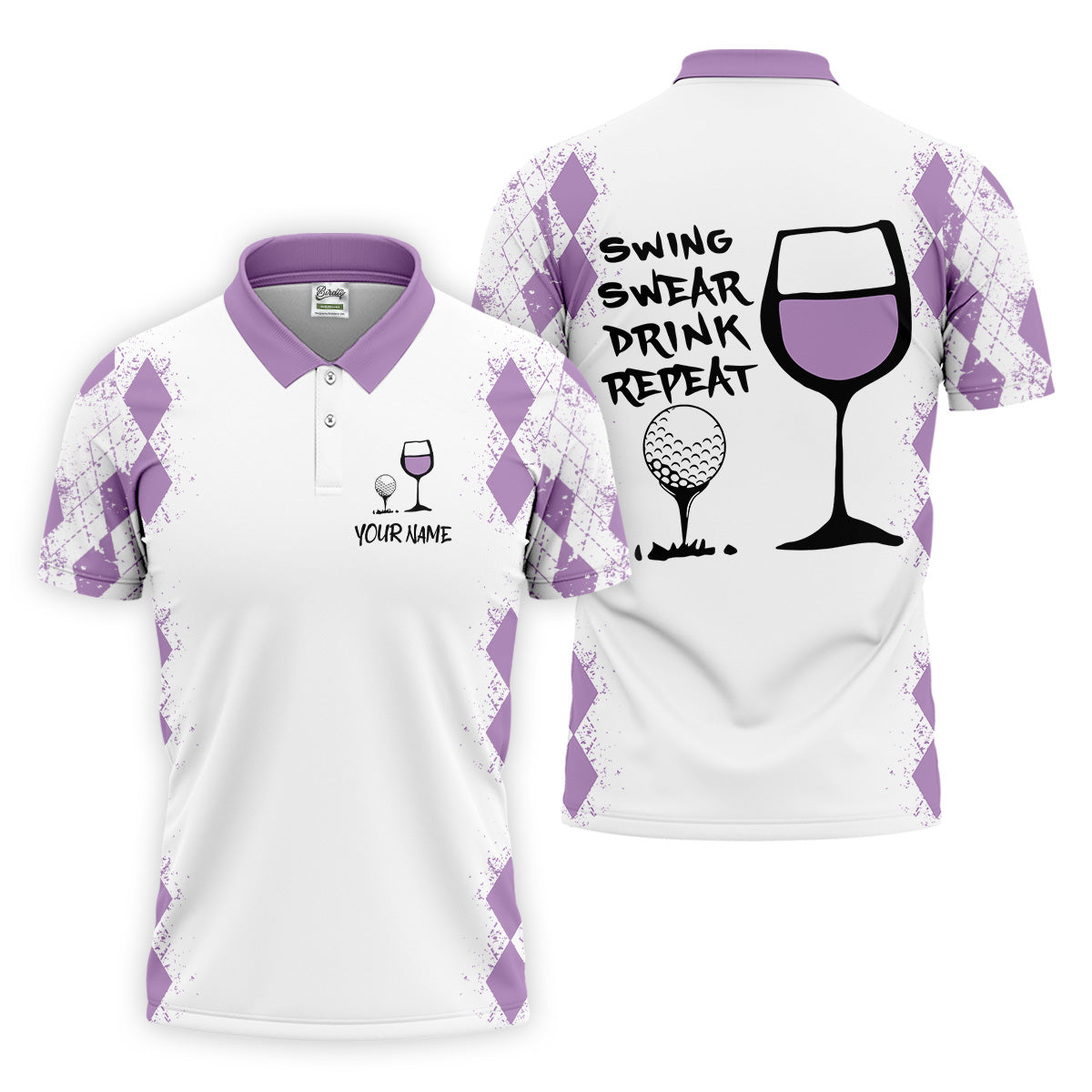 Swing Swear Drink Repeat Purple Argyle Golf Shirt, Fun Golf Shirts For Men, Men's White Polo