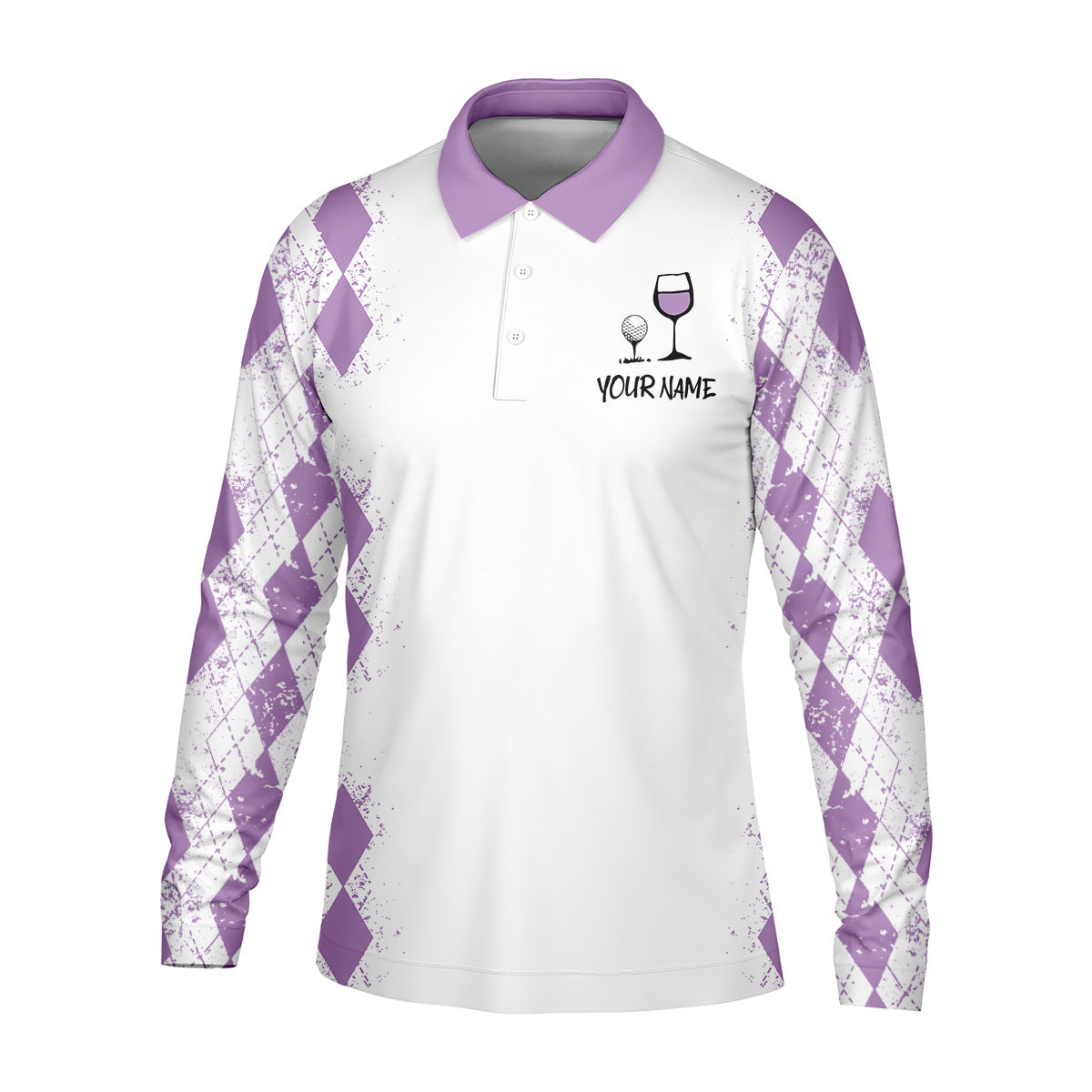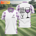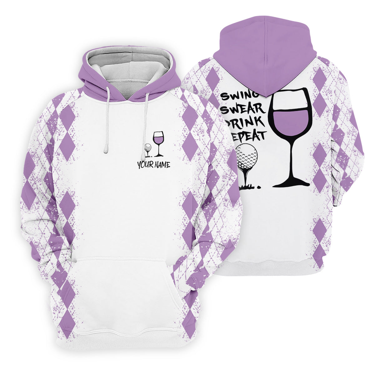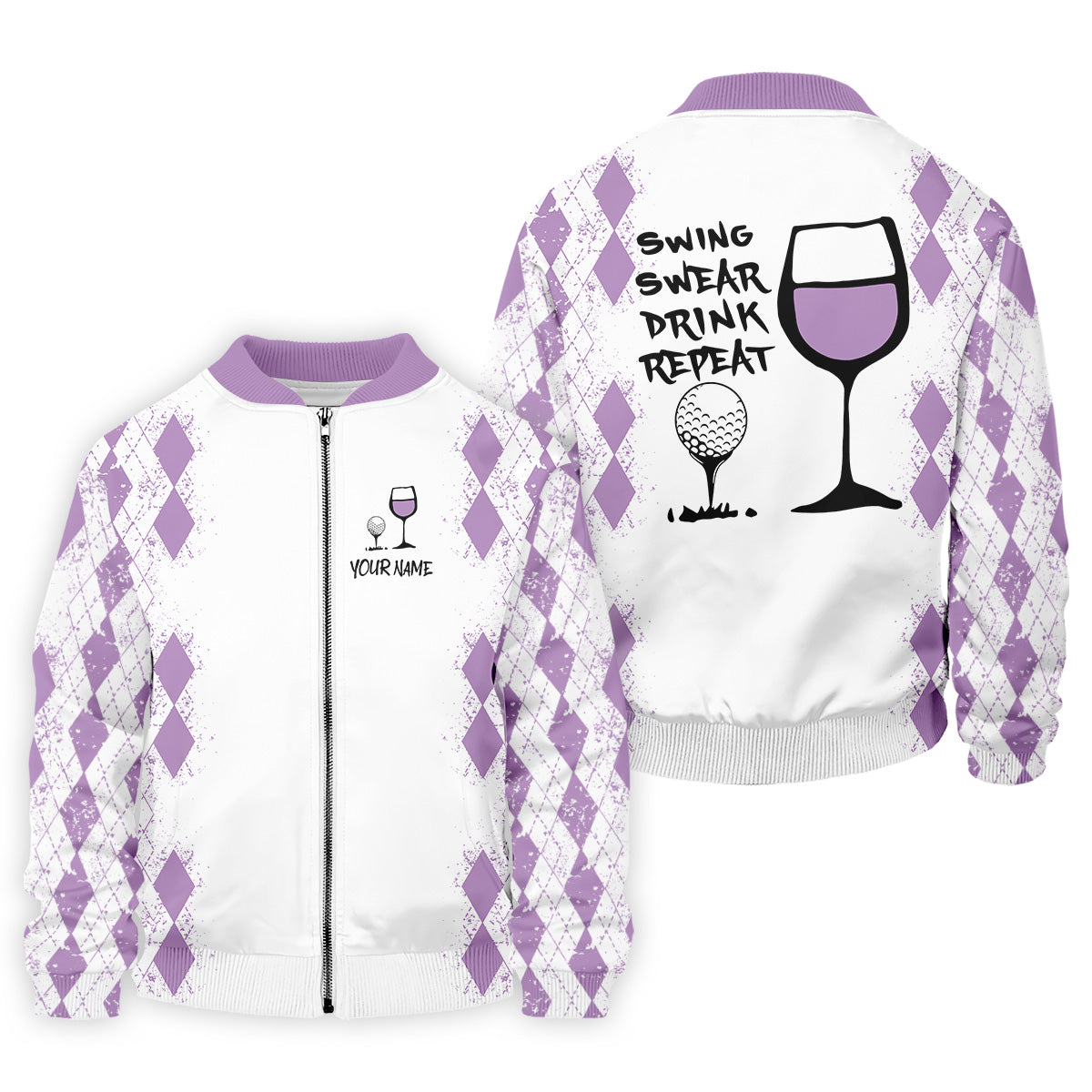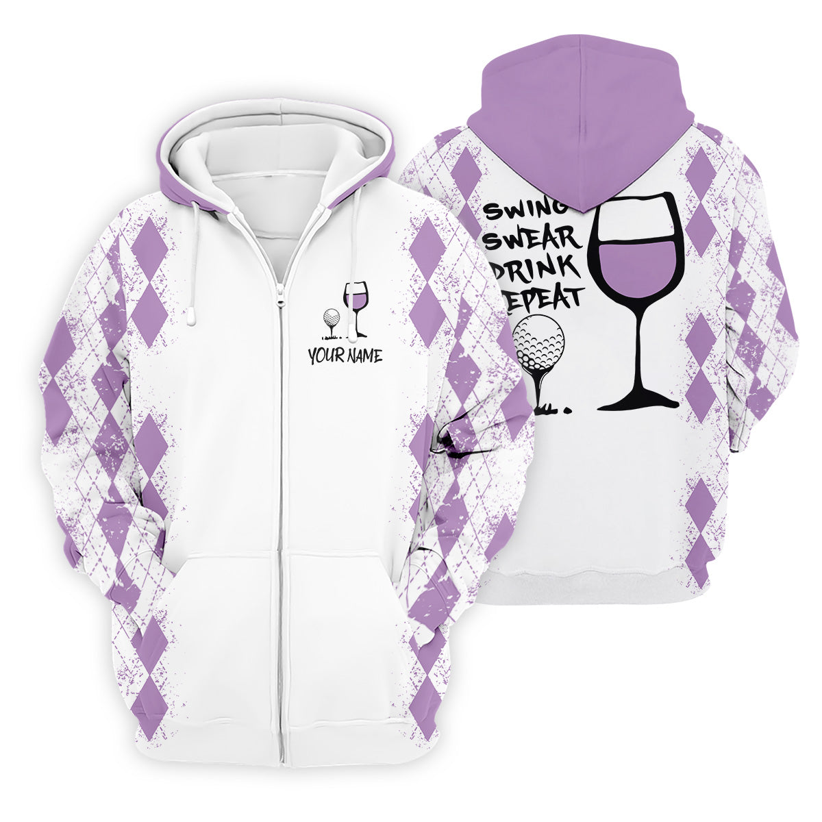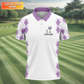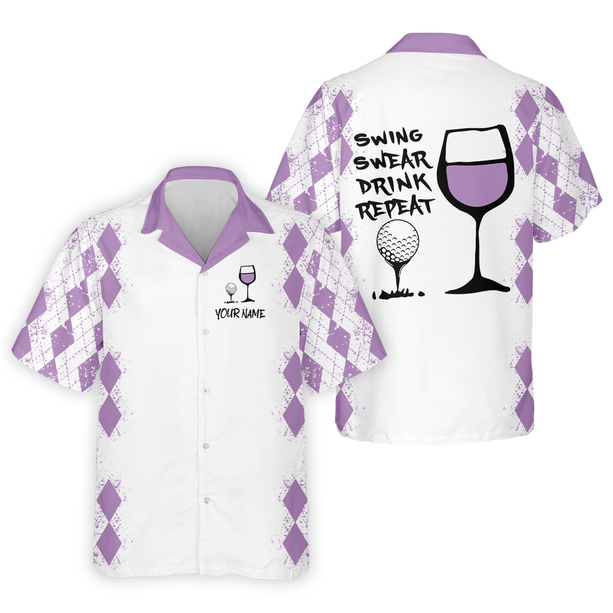 Swing Swear Drink Repeat Purple Argyle Golf Shirt, Fun Golf Shirts For Men, Men's White Polo