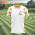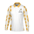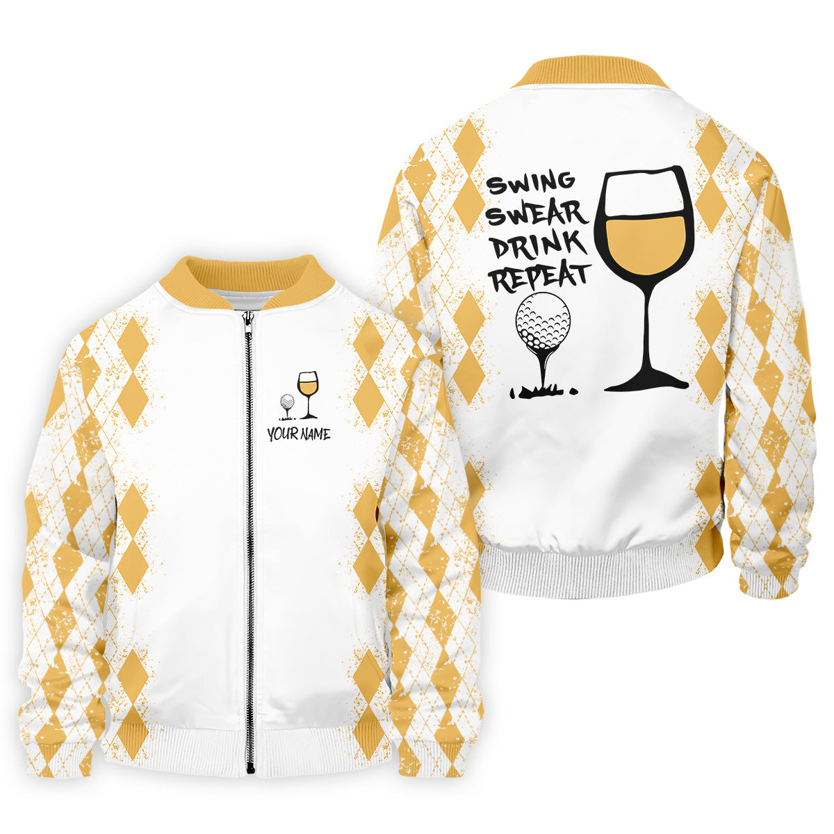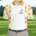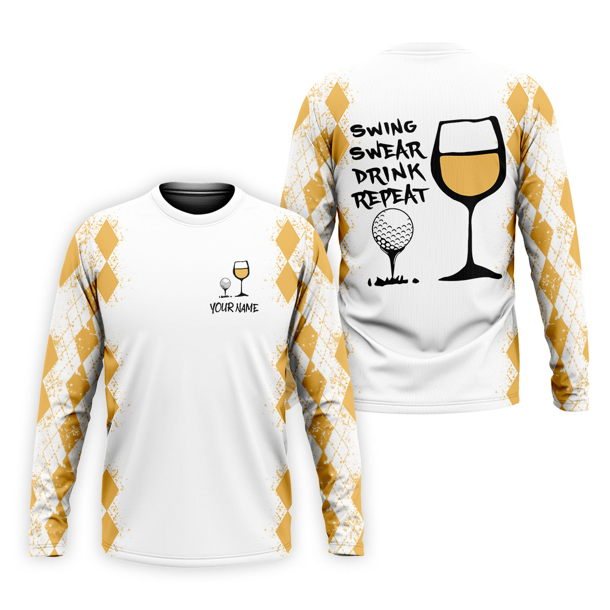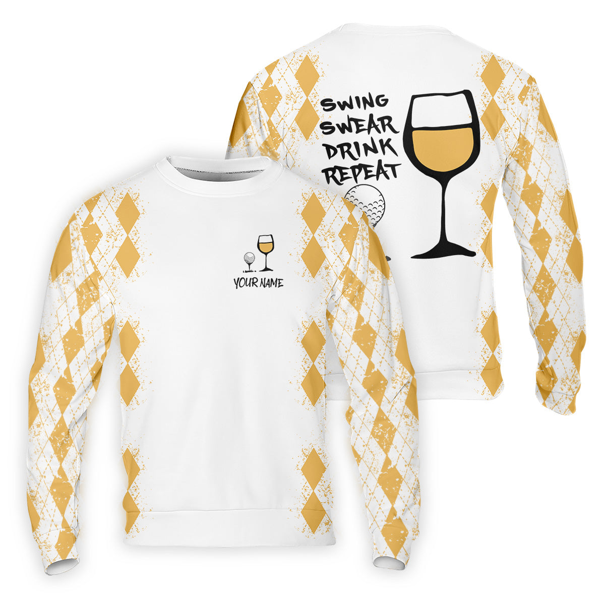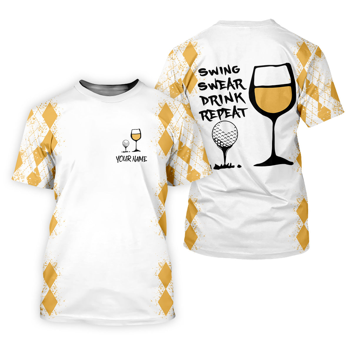 Swing Swear Drink Repeat Yellow Argyle Golf Shirt, Fun Golf Shirts For Men, Men's White Polo