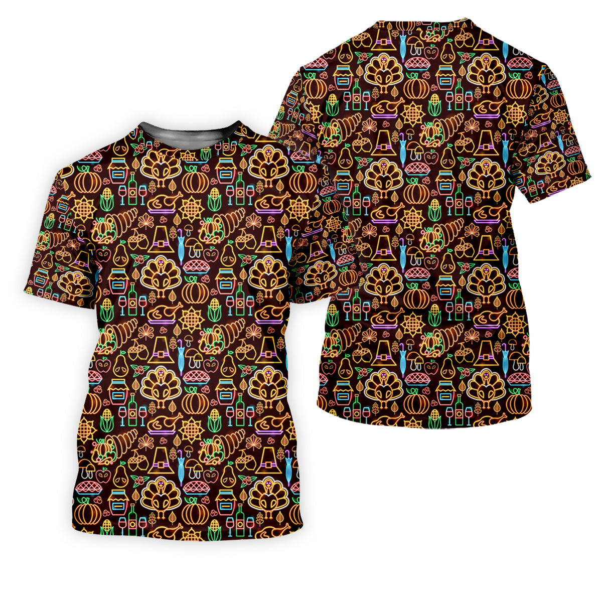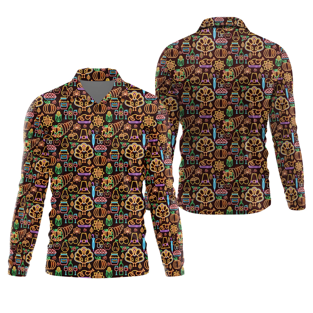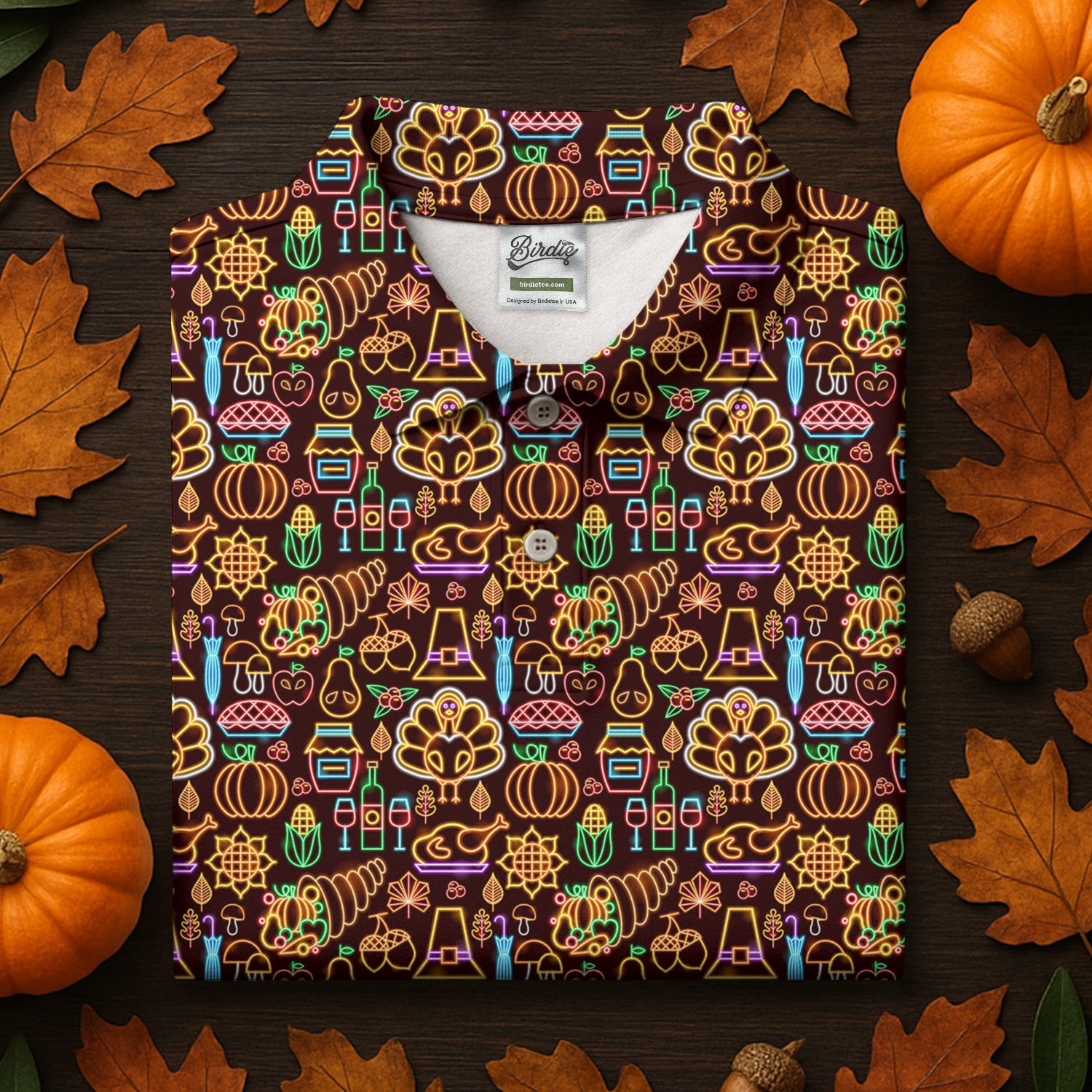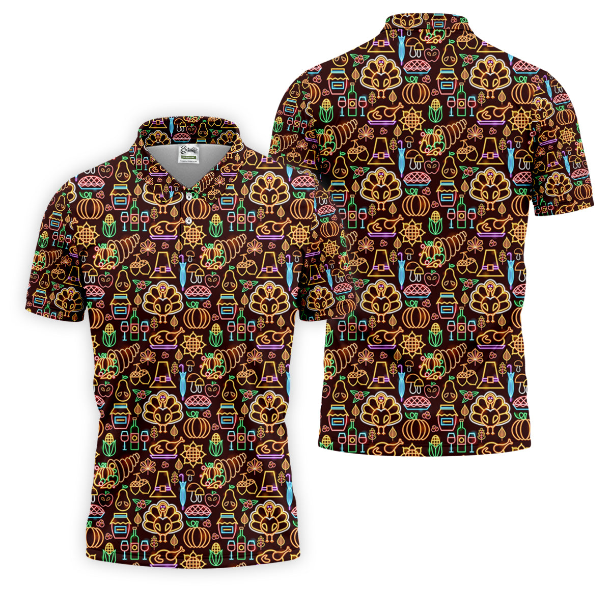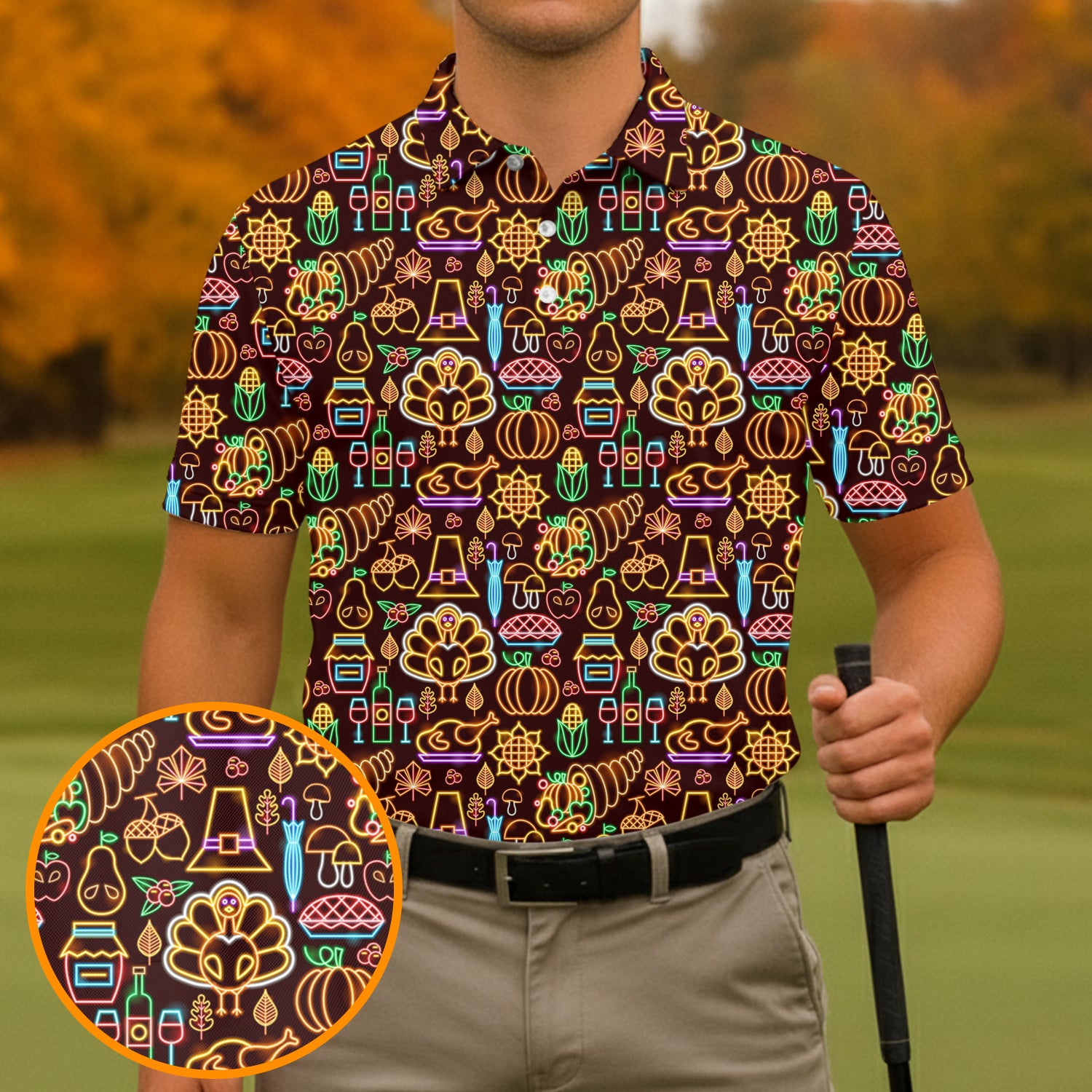Thanksgiving Party Neon Print Golf Tops For Men, Polo Shirts For Men, Golf Gift For Men