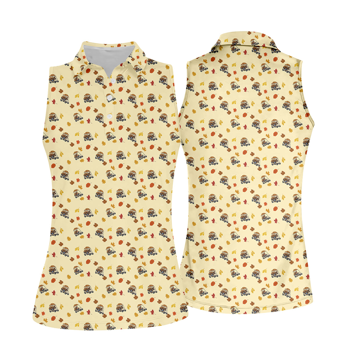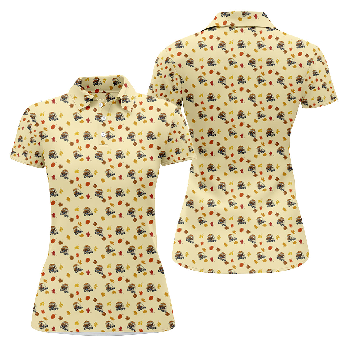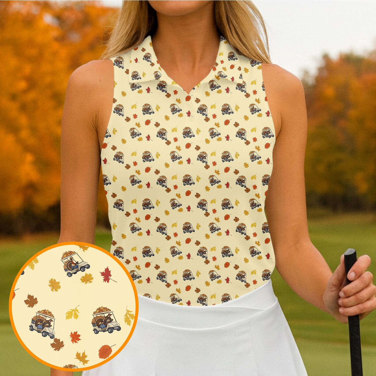 Thanksgiving Turkey Golf Cart Golf Polo Shirts, Women's Golf Tops, Ladies Golf Shirts, Golfing Apparel