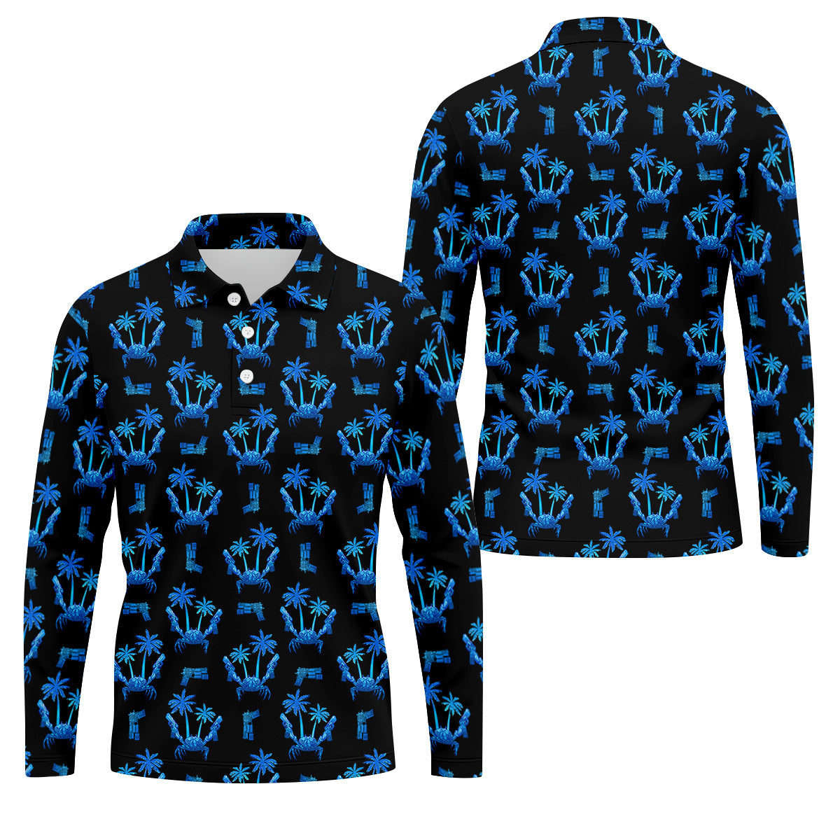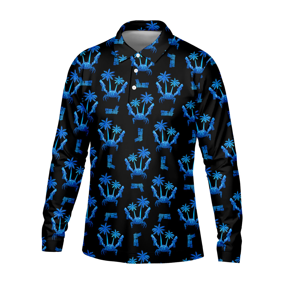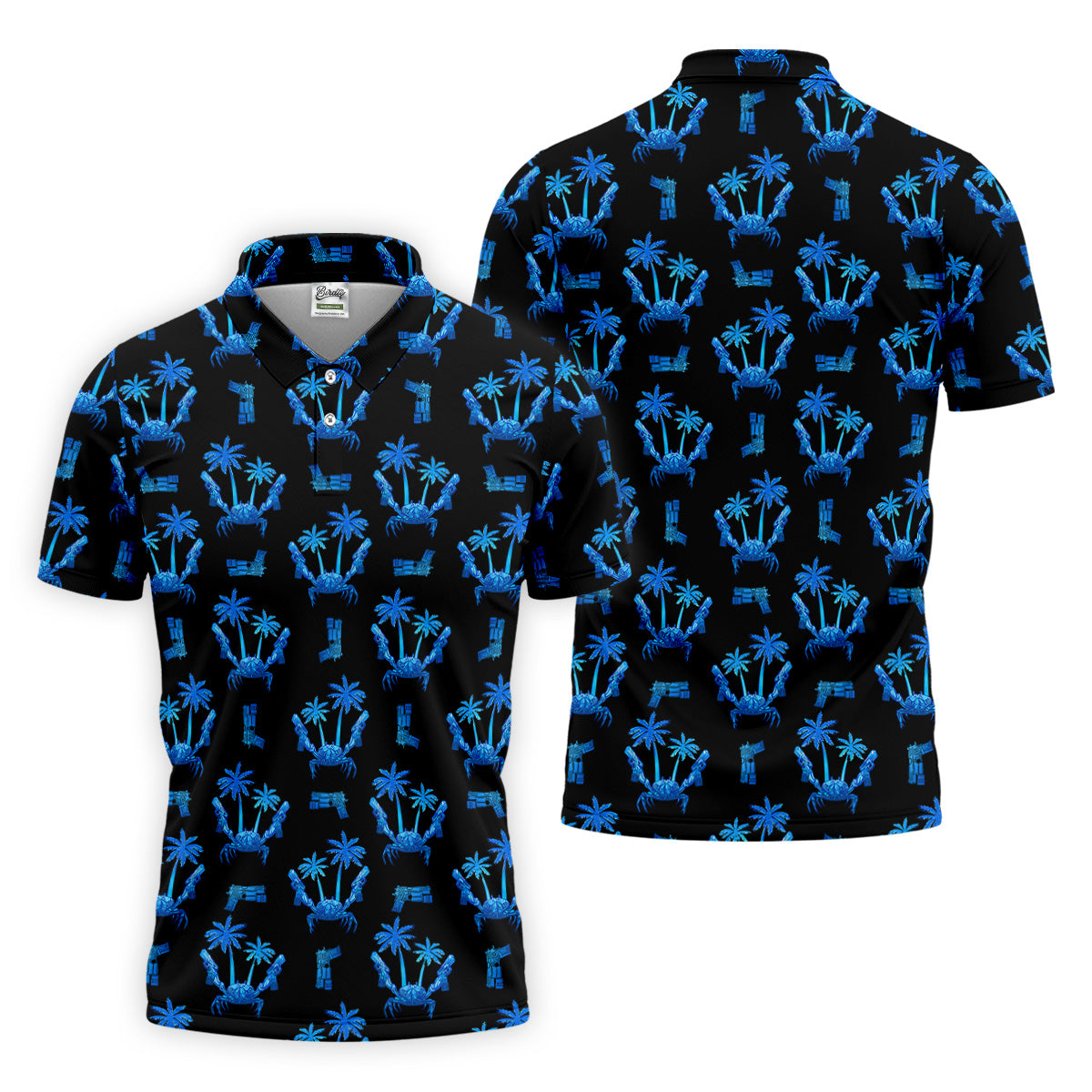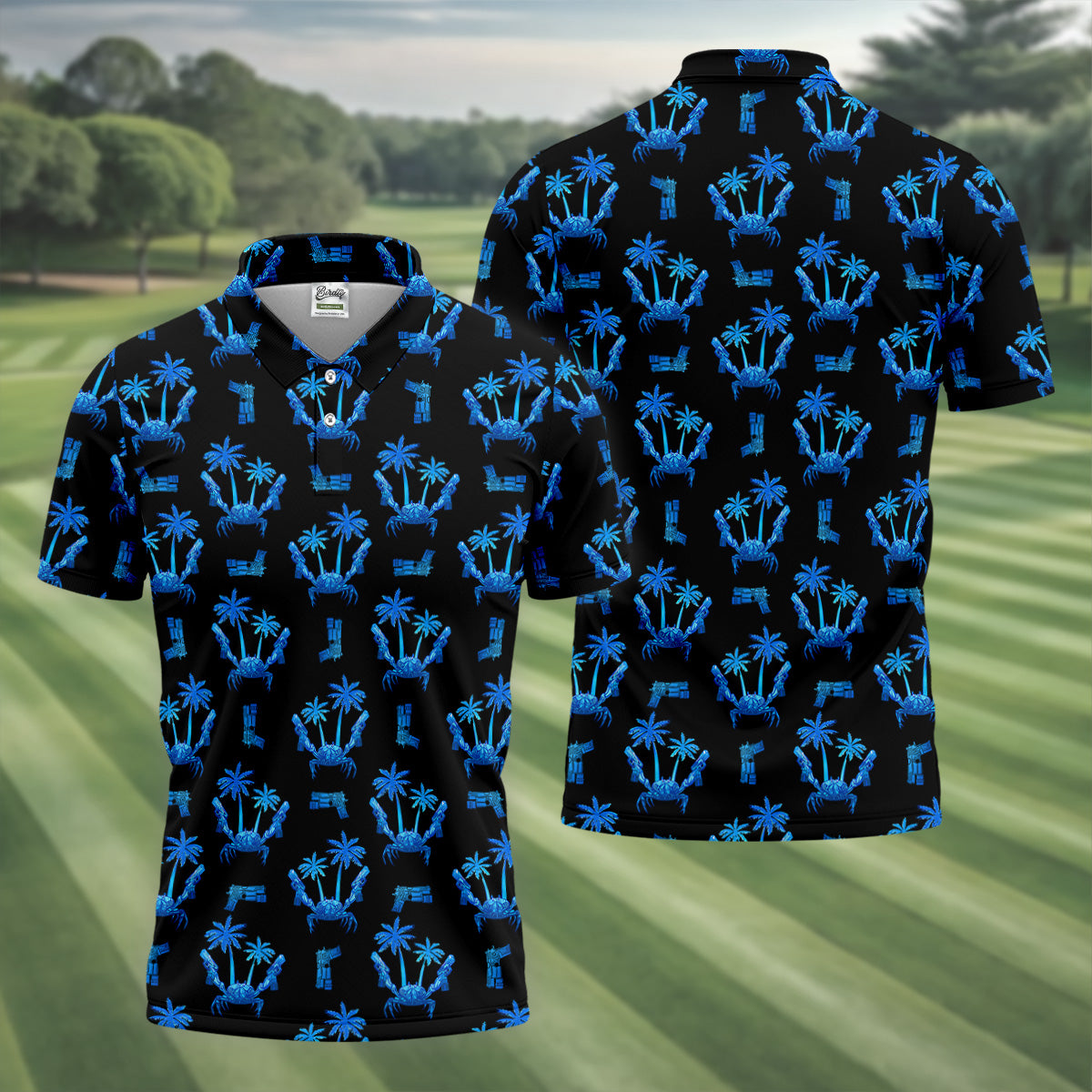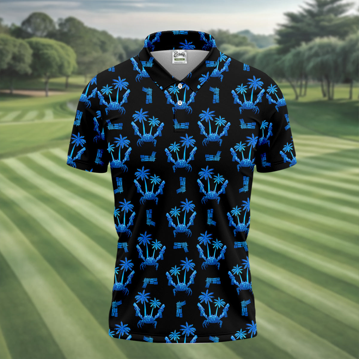 The Blue Crab Tropical Golf Shirts, Black Golf Shirt, Golf Gift For Men, Golf Shirts For Men